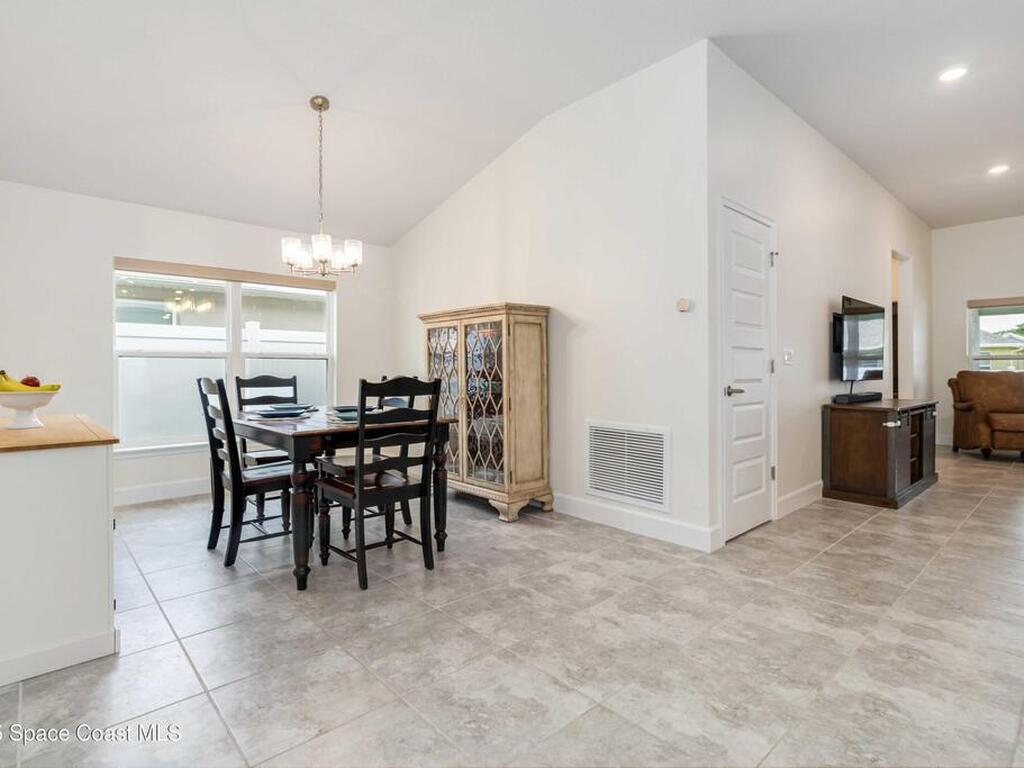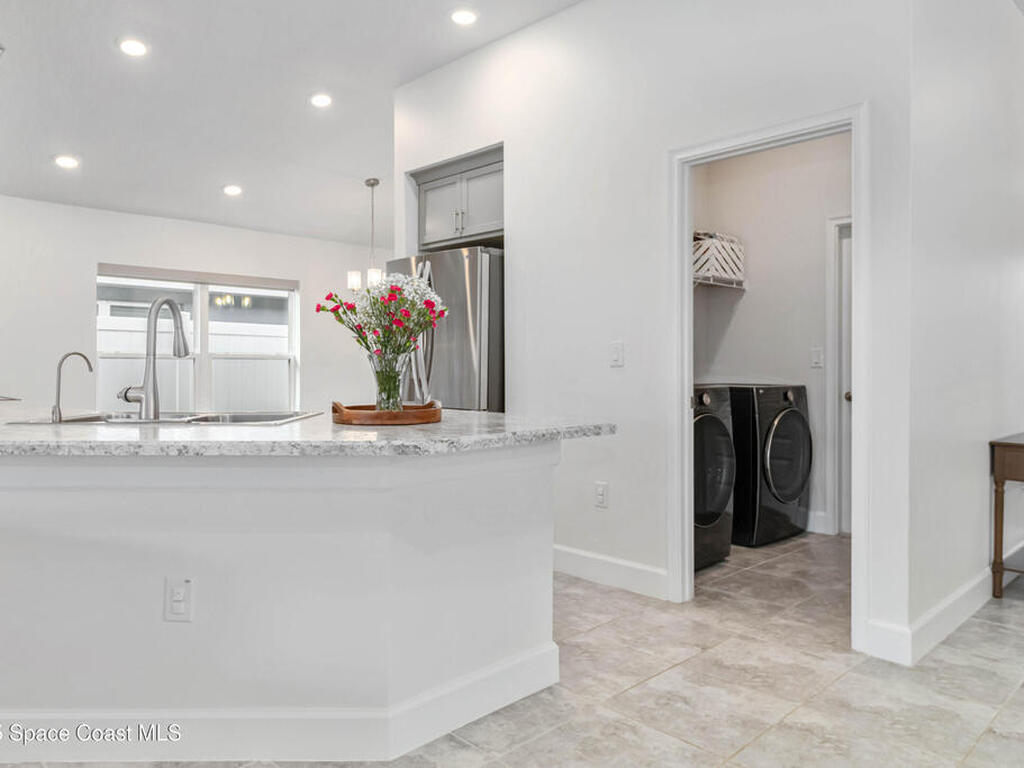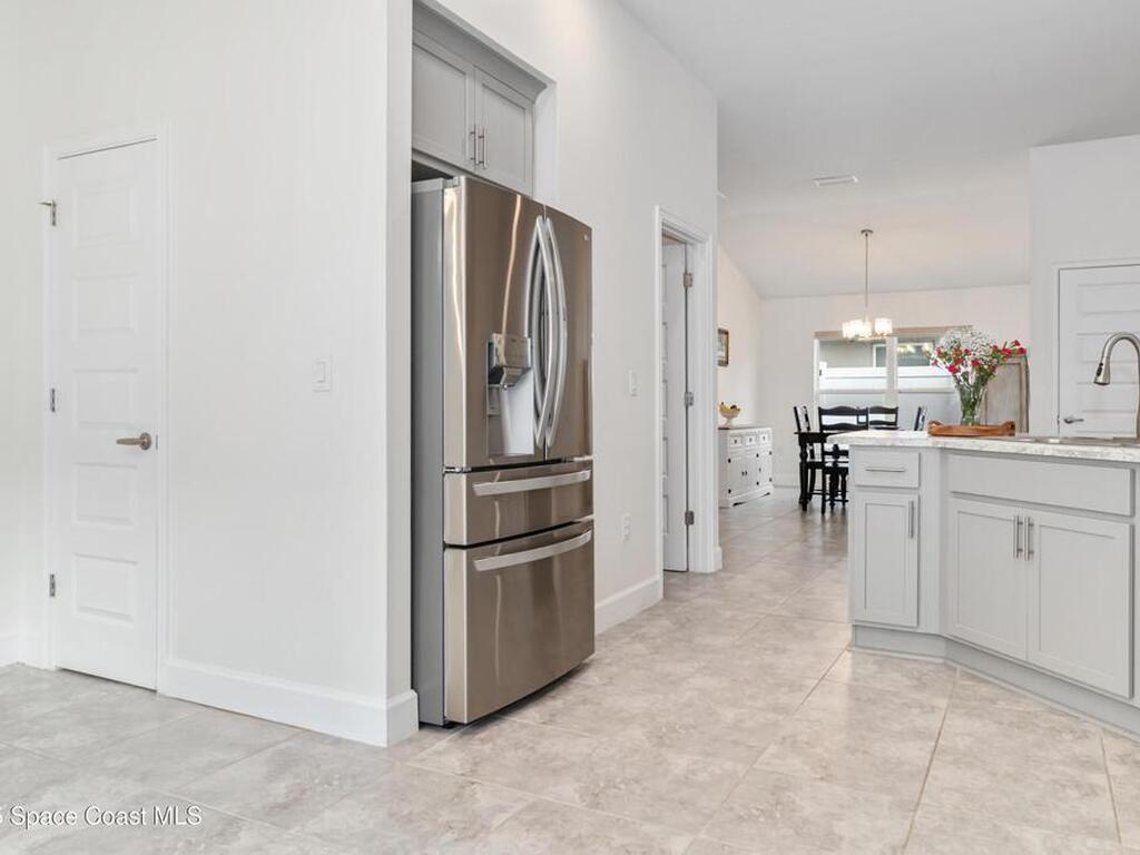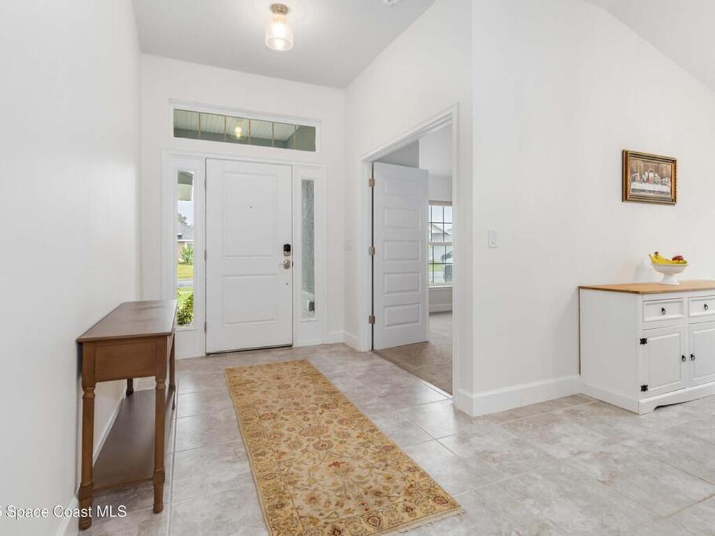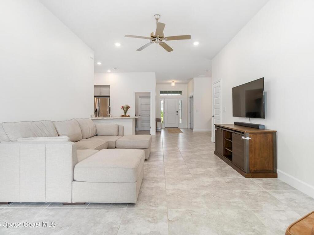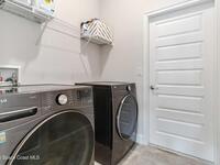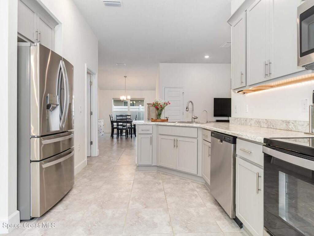 Why wait to build when you can enjoy this like-new, move-in ready home today? Every detail has been carefully maintained, offering the perfect blend of modern design & everyday comfort. The bright, open floor plan creates an inviting atmosphere, ideal for both entertaining & easy daily living. A stunning kitchen with modern finishes & stainless appliances opens to the spacious living room, while generously sized bedrooms provide room to unwind. Owner's suite boasts a large walk-in closet, and private bath with double sinks & walk-in shower. Guest bedrooms are adorned with board & batten & shiplap walls for that custom feel. Indoor laundry room with washer and dryer included. Irrigation system. Hurricane shutters for peace of mind. Backyard features a new paver outlined, turf play area. 2 car garage. Low HOA fee! Conveniently located near shopping, dining, less than 10 min to EFSC, 20 min to KSC, NASA, SpaceX, & Blue Origin, 20 min to beach, 40 min to Orlando airport & area attractions