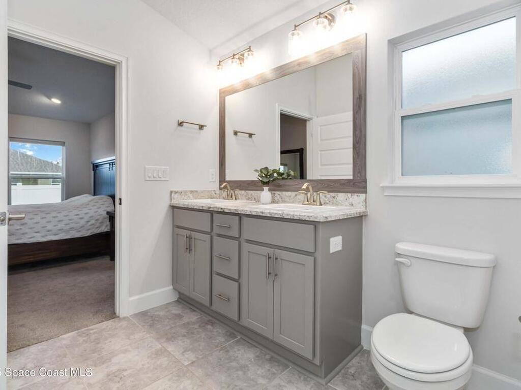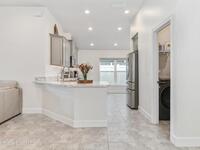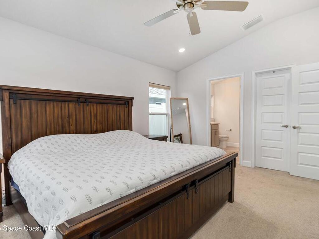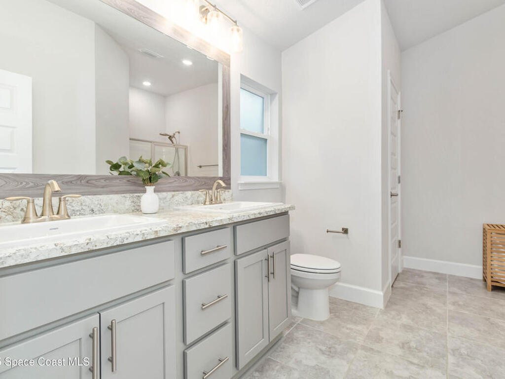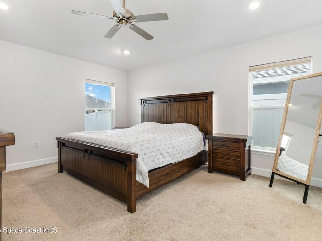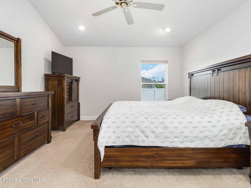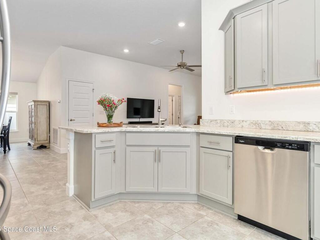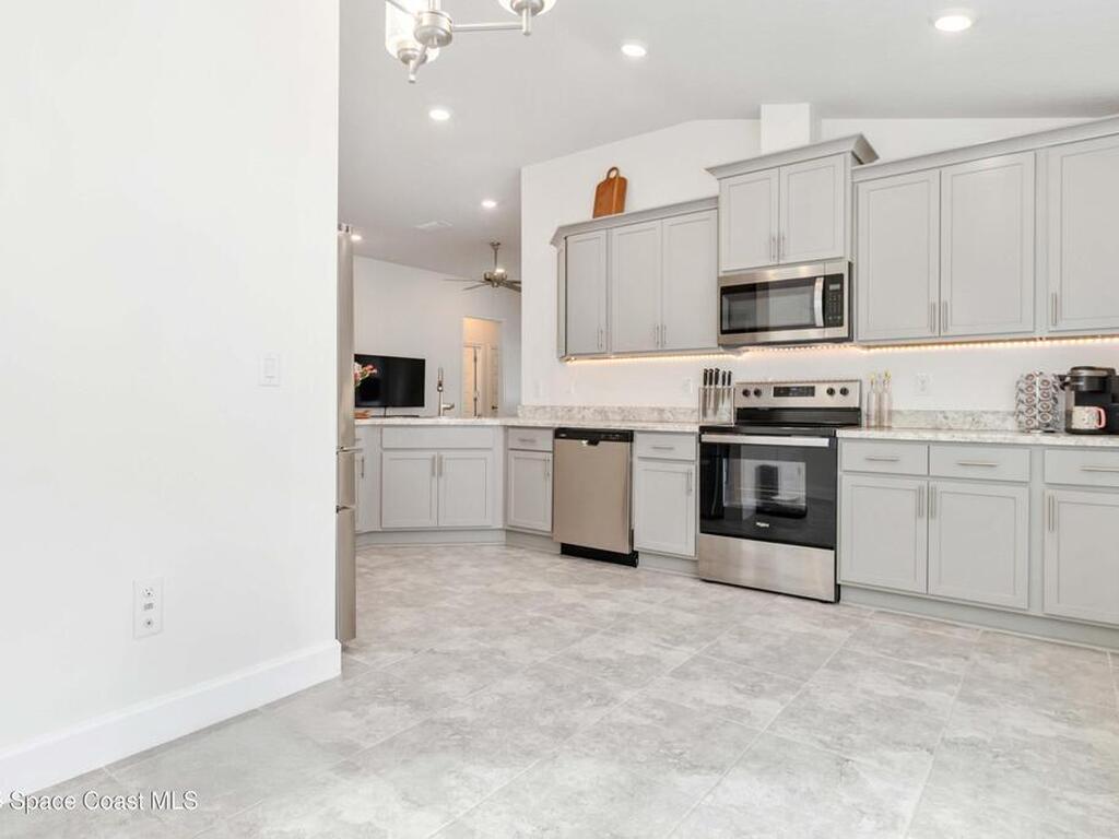 Why wait to build when you can enjoy this like-new, move-in ready home today? Every detail has been carefully maintained, offering the perfect blend of modern design & everyday comfort. The bright, open floor plan creates an inviting atmosphere, ideal for both entertaining & easy daily living. A stunning kitchen with modern finishes & stainless appliances opens to the spacious living room, while generously sized bedrooms provide room to unwind. Owner's suite boasts a large walk-in closet, and private bath with double sinks & walk-in shower. Guest bedrooms are adorned with board & batten & shiplap walls for that custom feel. Indoor laundry room with washer and dryer included. Irrigation system. Hurricane shutters for peace of mind. Backyard features a new paver outlined, turf play area. 2 car garage. Low HOA fee! Conveniently located near shopping, dining, less than 10 min to EFSC, 20 min to KSC, NASA, SpaceX, & Blue Origin, 20 min to beach, 40 min to Orlando airport & area attractions