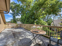 Lovely chalet style townhome in Quail Village! Prime corner lot & end unit for extra sqft, land and privacy. Many updates throughout including all new water lines, newer kitchen & bathrooms, freshly painted, & generator hook up ready. All hard wood floors in living areas & tile baths. Features a large downstairs primary bedroom with additional study/lounge room, dual sinks, walk in closet & shower. Upstairs features a full bath w/ jacuzzi tub, bedroom, office nook, and a huge loft with built in bookcases overlooking the downstairs with beautiful cathedral style ceilings & large deck out back for sunbathing. The loft could even be enclosed into a large 3rd bedroom suite if needed. The association has a nice community pool around the corner and takes care of the lawn mowing. Excellent location, very close to Wickham Park and all major amenities. Much to see on this one, come by today!
