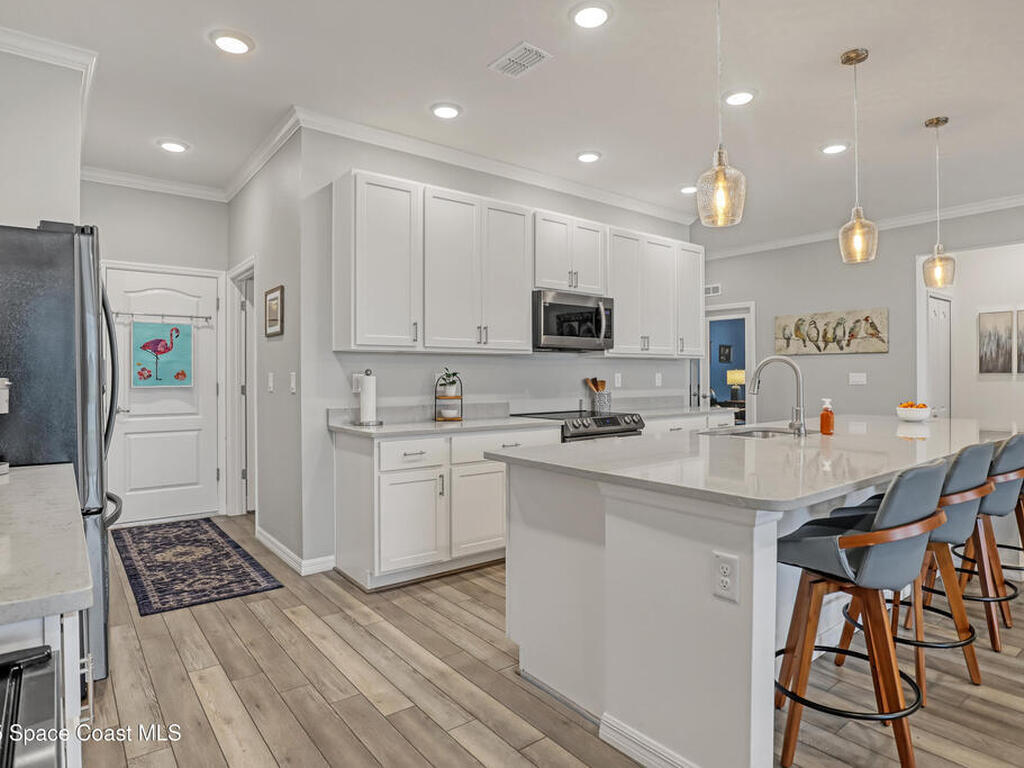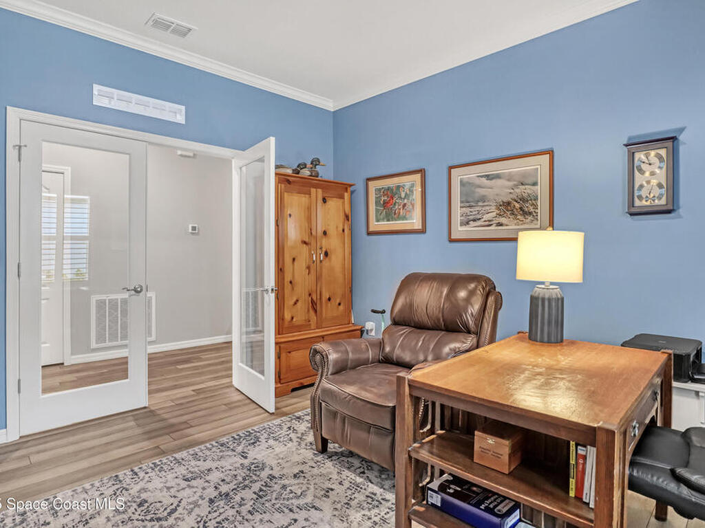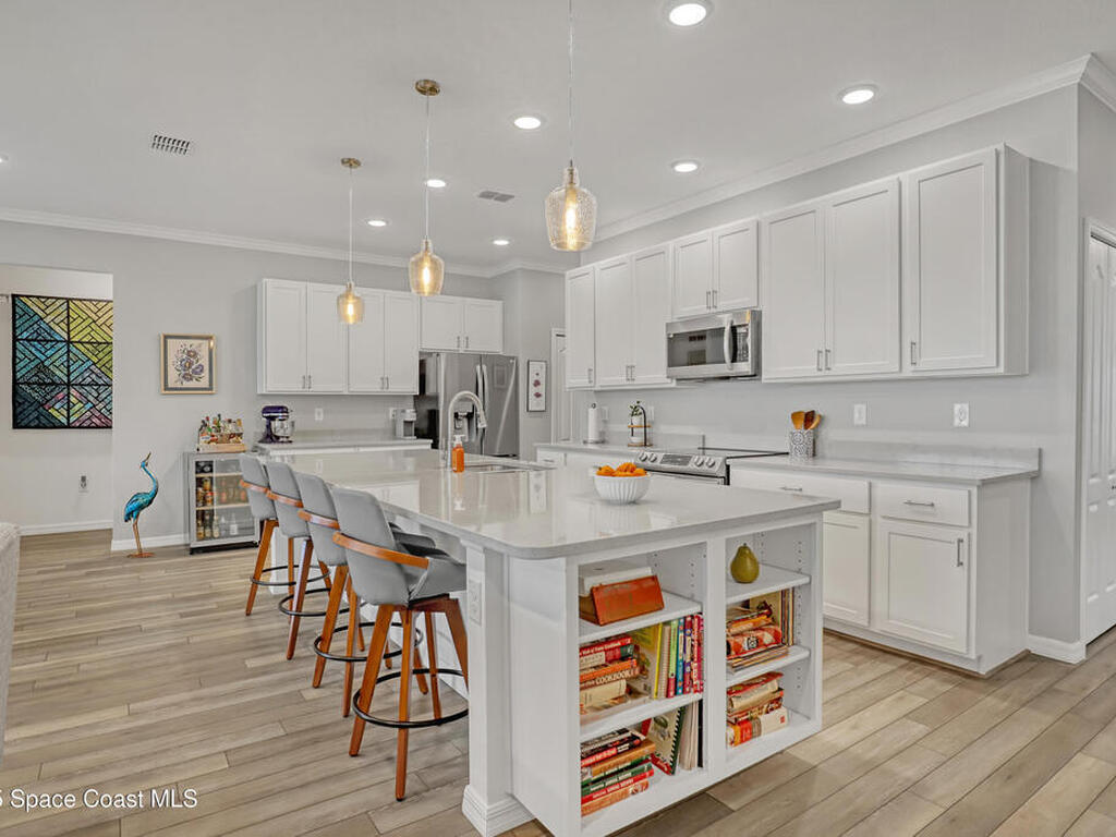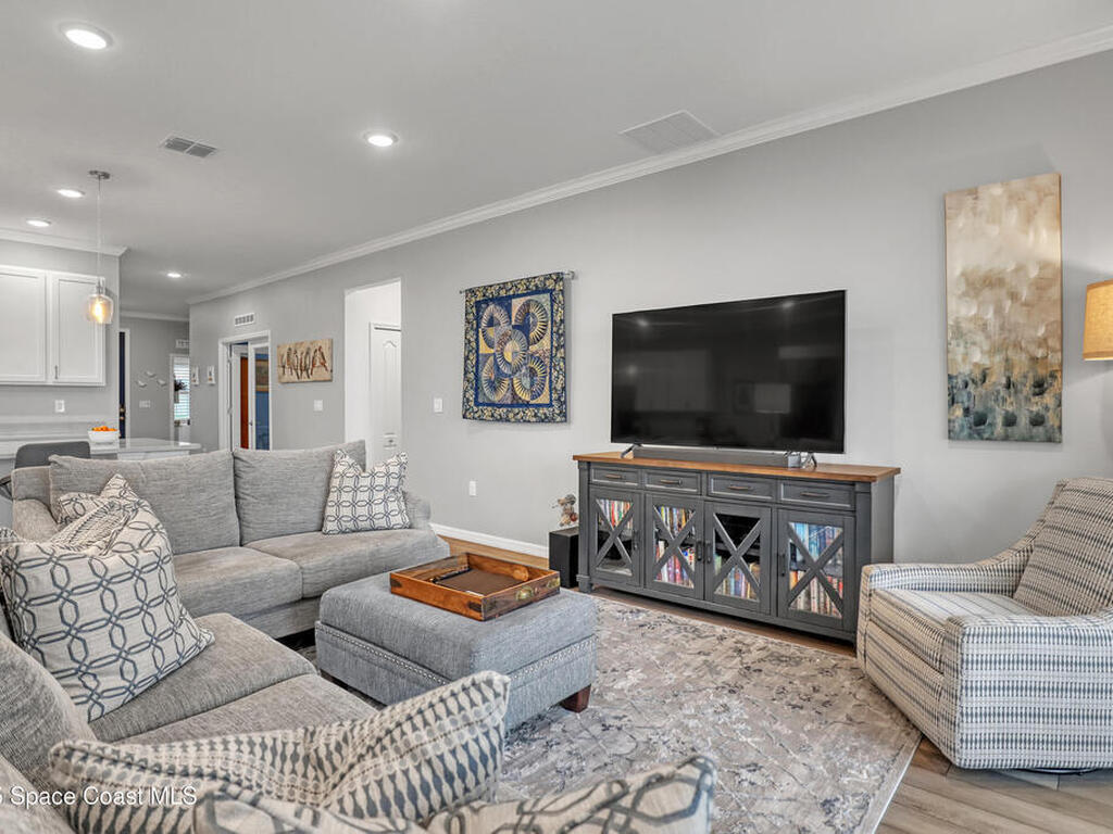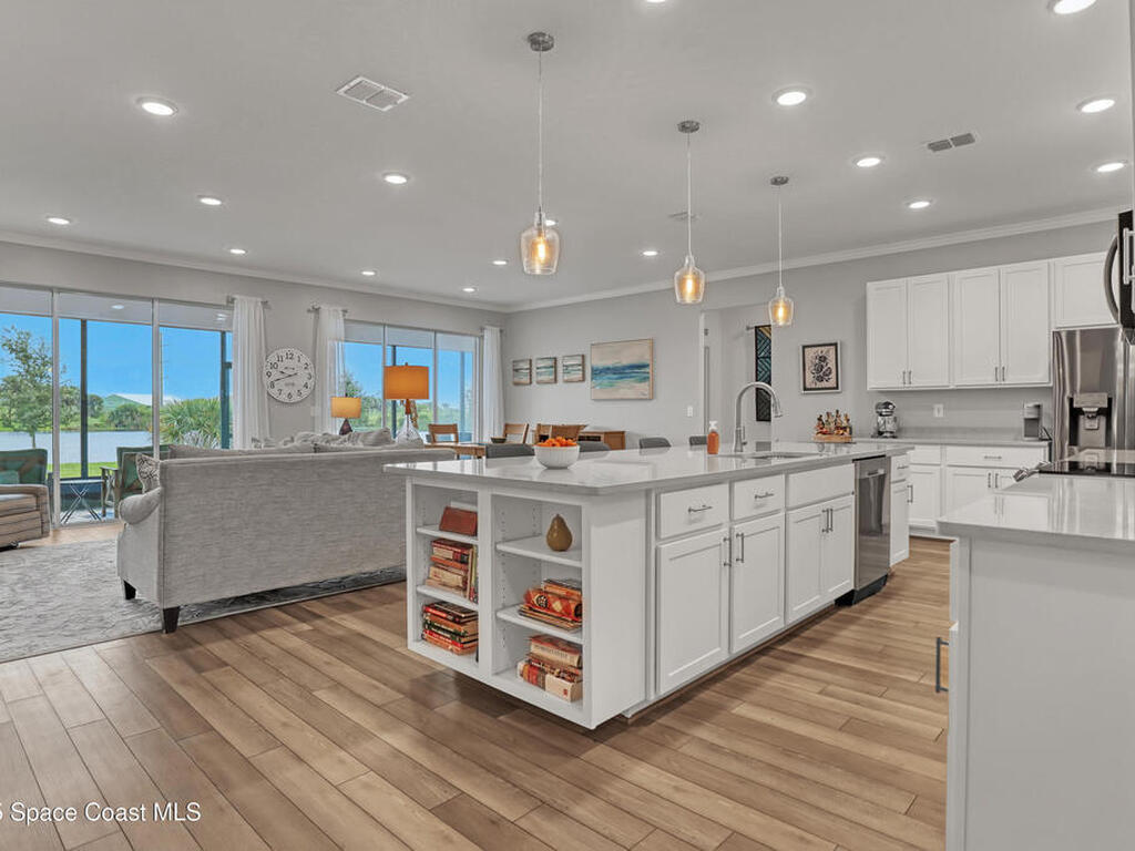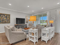 Discover the perfect blend of space, serenity, and flexibility in this 2022-built waterfront home in Micco, Florida -- ideal for multigenerational living or pursuing your favorite hobbies. With 4 bedrooms, there's room for extended family or visiting friends. Plus, an office/den with French doors makes a peaceful retreat or creative studio. The open great room and 34 foot screened-in porch invite connection and relaxation with stunning water vistas. High ceilings, upgraded features, and a 2-car garage with epoxy flooring & workshop area offer both style and function -- perfect for storing paddleboards, craft supplies, or a golf cart. Nestled in the Lakes at St. Sebastian Preserve, you're minutes from boating, beaches, and nature, yet close to conveniences. Live, work, and play in a home designed for every chapter of life. This backyard beckons for a pool - plenty of room to create a tropical oasis!