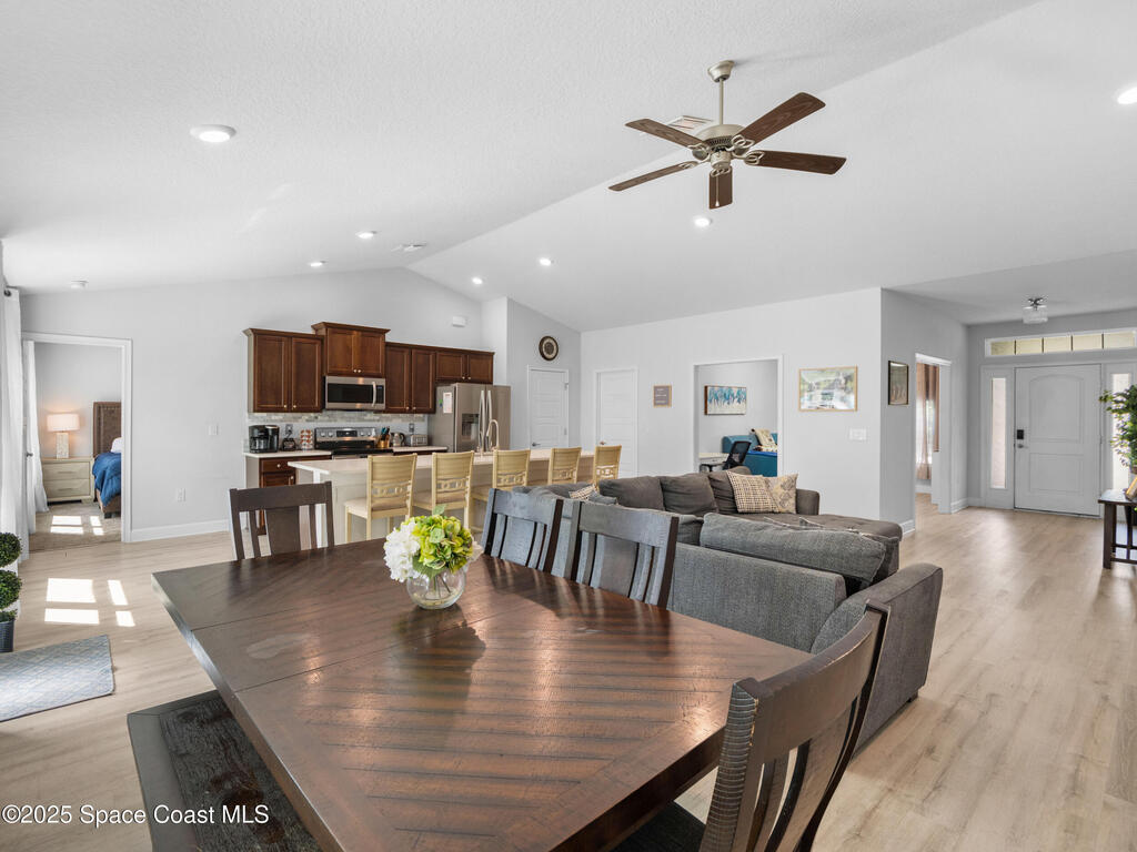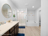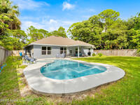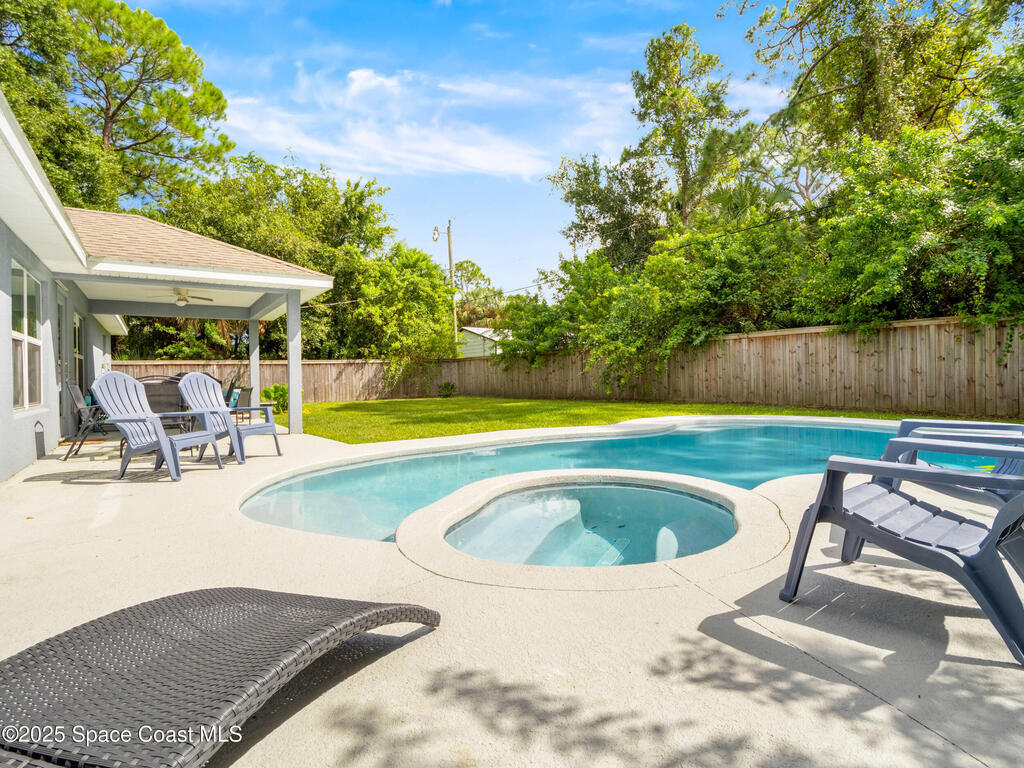 Welcome to your very own slice of paradise in Palm Bay! Step inside and you're greeted by a bright, airy floor plan featuring high ceilings, neutral tones, and luxury vinyl floors that flow seamlessly throughout. The kitchen is the heart of the home complete with rich wood cabinetry, stainless steel appliances, and a massive island perfect for hosting family gatherings or enjoying your morning coffee.The primary suite feels like a spa retreat, featuring a dual-sink vanity, soaking tub, and walk-in shower the perfect place to unwind after a long day.But the real showstopper? Your private fully fenced backyard oasis. A sparkling custom pool sits surrounded by lush greenery and total privacy ideal for barbecues, pool parties, or relaxing under the covered patio. Located just minutes from shopping, dining, and I-95, this home gives you the best of both worlds peaceful living with easy access to everything the Space Coast has to offer.Check it out before it's gone!