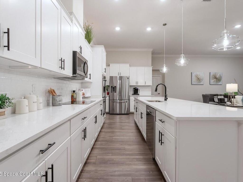 Ever wish you could live in the model home? Now is your chance! Never lived in with all the upgrades & ready for you to call it home!This contemporary & stunning Livorno model is a must-see home featuring timeless white cabinets & quartz countertops throughout an entertainers dream with huge dining room , wet bar & gourmet kitchen all seamlessly connected while still providing their own space. The Impressive 11-foot ceilings in this home exudes a spacious & open ambiance with wooded views looking out from great room & lanai.Among the many features , this property includes a massive primary bedroom that is a MUST SEE in person, two flex spaces a front den or 5th bedroom & a larger flex room perfect for a game room, additional entertaining area or formal dining room as shown in photos. The exterior features a stone veneer, inviting front porch & 3 car garage. The interior & exterior was updated with new paint, new flooring with new wood LVP & new upgraded carpet in 2022.