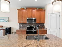 Meticulously maintained 3-bedroom, 2-bath, 2-car garage home, perfectly positioned on a premium lakefront lot with no rear neighbors and breathtaking sunset views. Built in 2016 and owned by only one proud homeowner, this home radiates tremendous pride of ownership. Impeccable landscaping and striking curb appeal. Step inside to find a modern open-concept design with a split-bedroom floor plan. The gourmet kitchen is complete with maple shaker-style cabinetry, granite countertops, and a beautifully coordinated mosaic-tile backsplash. A center island with seating makes it perfect for casual gatherings, while stainless steel appliances complement the overall design. You'll also find a cozy breakfast nook overlooking the lake and a separate dining room currently used as an office--offering flexibility for your lifestyle. The spacious primary suite is a retreat of its own with luxury vinyl plank flooring, a tray ceiling extending the full length of the room, and sliding glass doors that