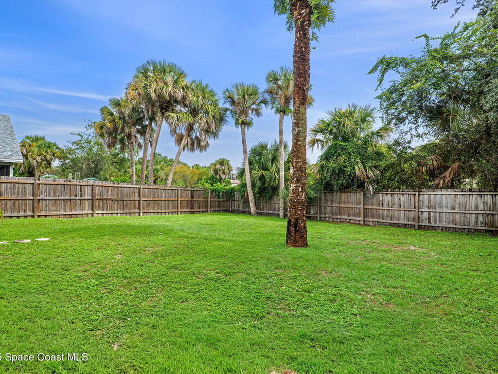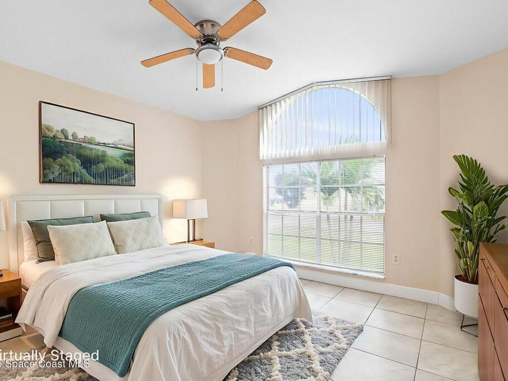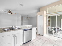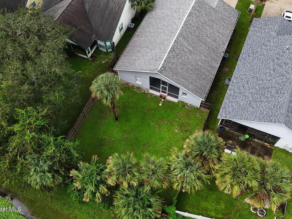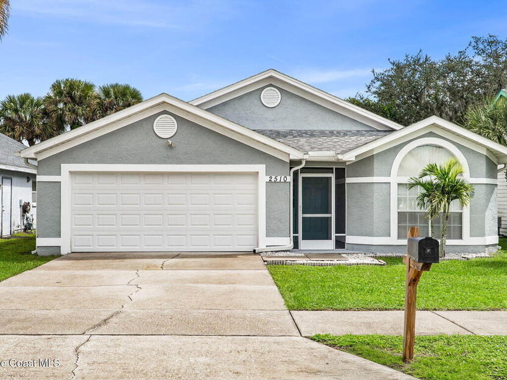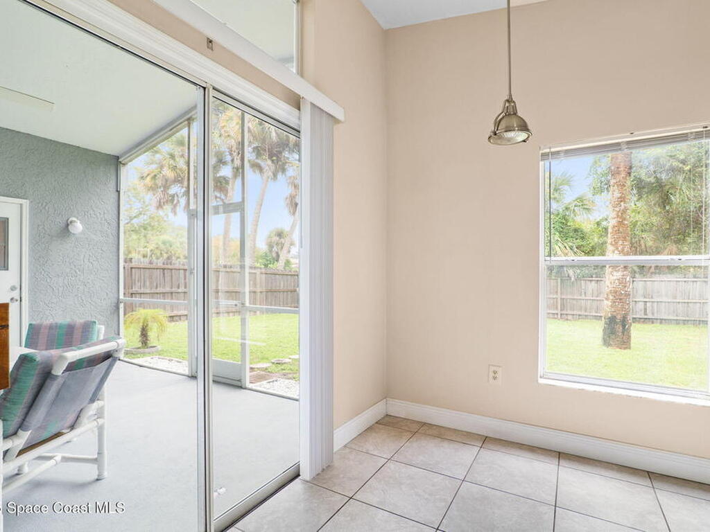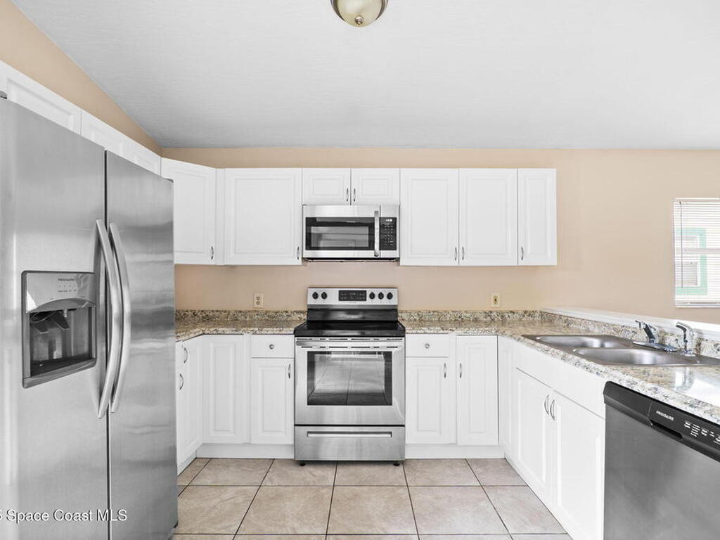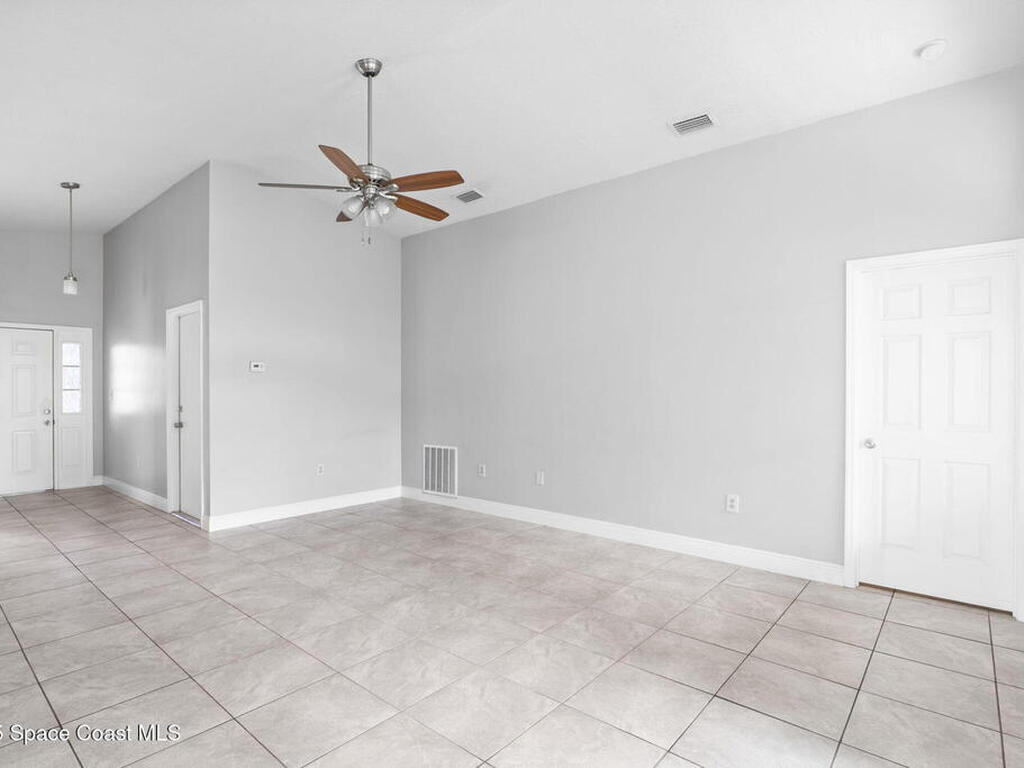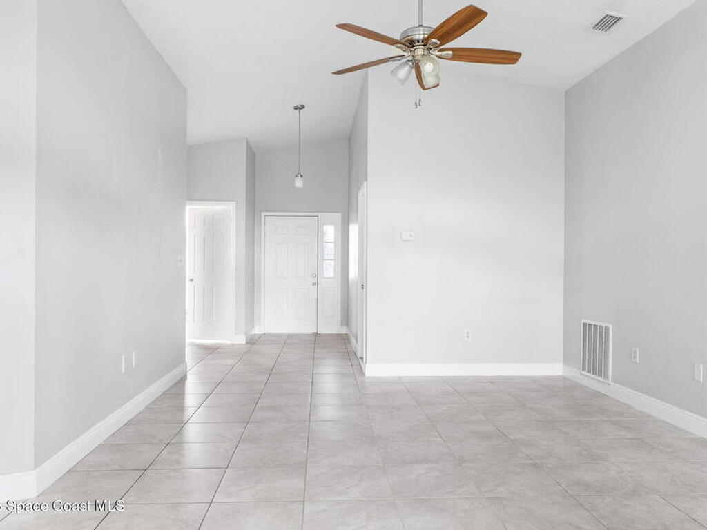 Welcome to this beautifully maintained 3-bedroom, 2-bath home nestled in a quiet, well-kept neighborhood in Titusville. Perfectly situated near shopping, restaurants, and quick access to Interstate 95, this property combines everyday convenience with the peaceful feel of a private retreat. Step inside to find a bright, open floor plan highlighted by soaring ceilings and large windows that flood the home with natural light. The spacious living area offers plenty of room for entertaining and flows effortlessly into a defined dining space and an inviting kitchen. With crisp white cabinetry, stainless-steel appliances and a breakfast bar overlooking the family room, this kitchen is designed for both style and functionality. This home has an open concept with a split floor plan. The large primary suite features an ensuite bath with recently remodeled walk-in shower. Two additional bedrooms and a full guest bath with tub offer flexible space for family, guests, or a home office. No carpet.