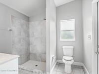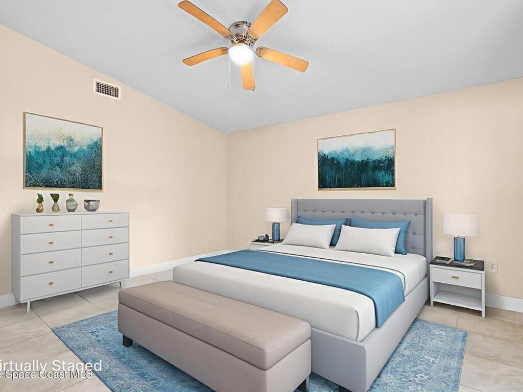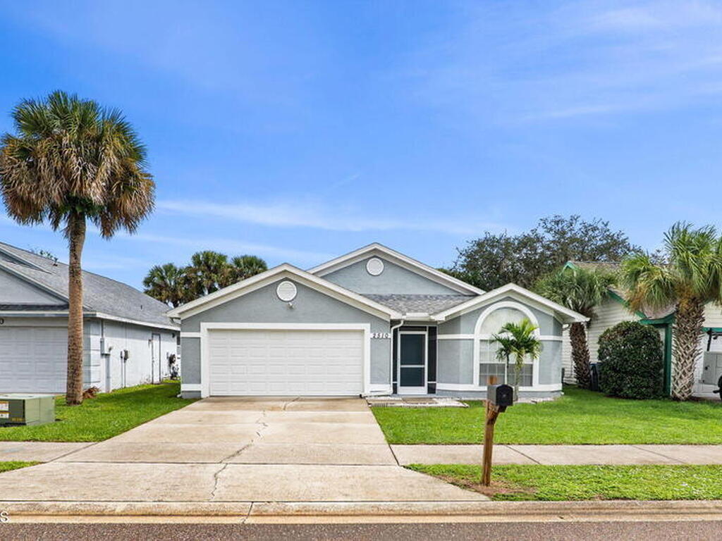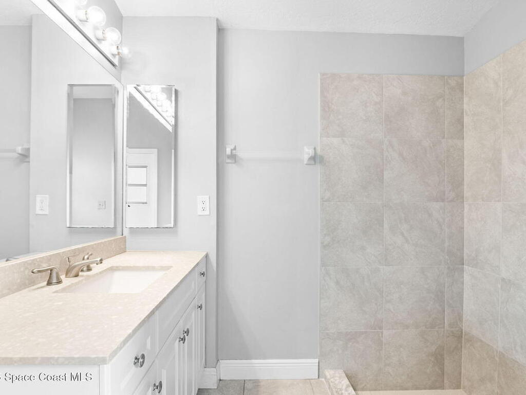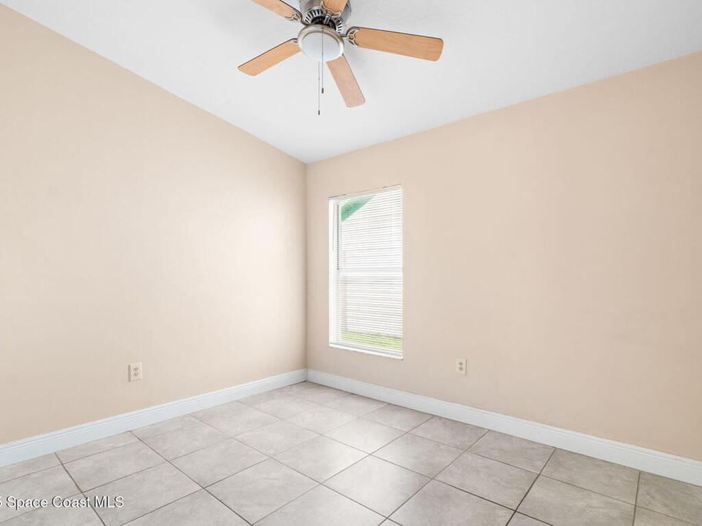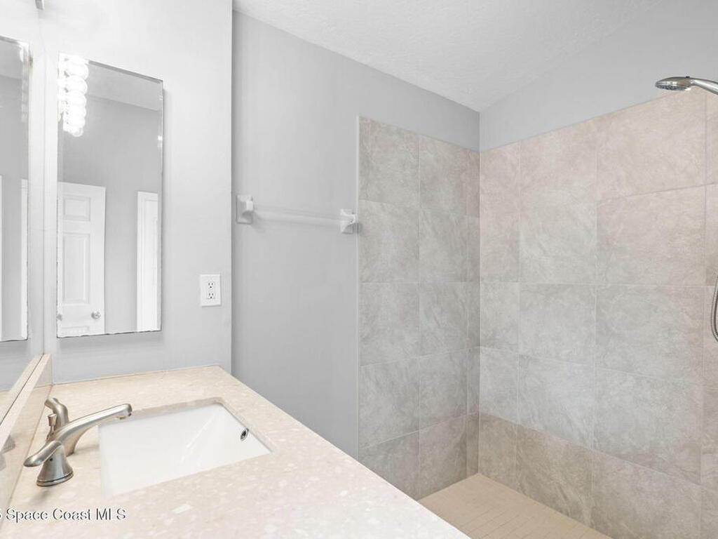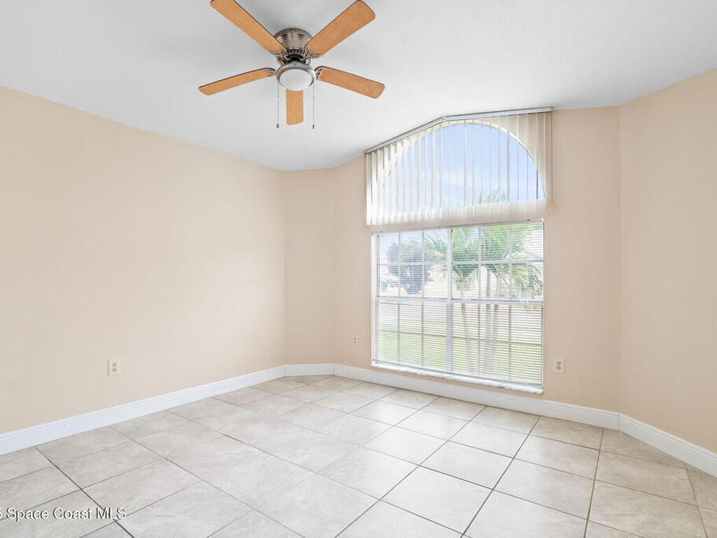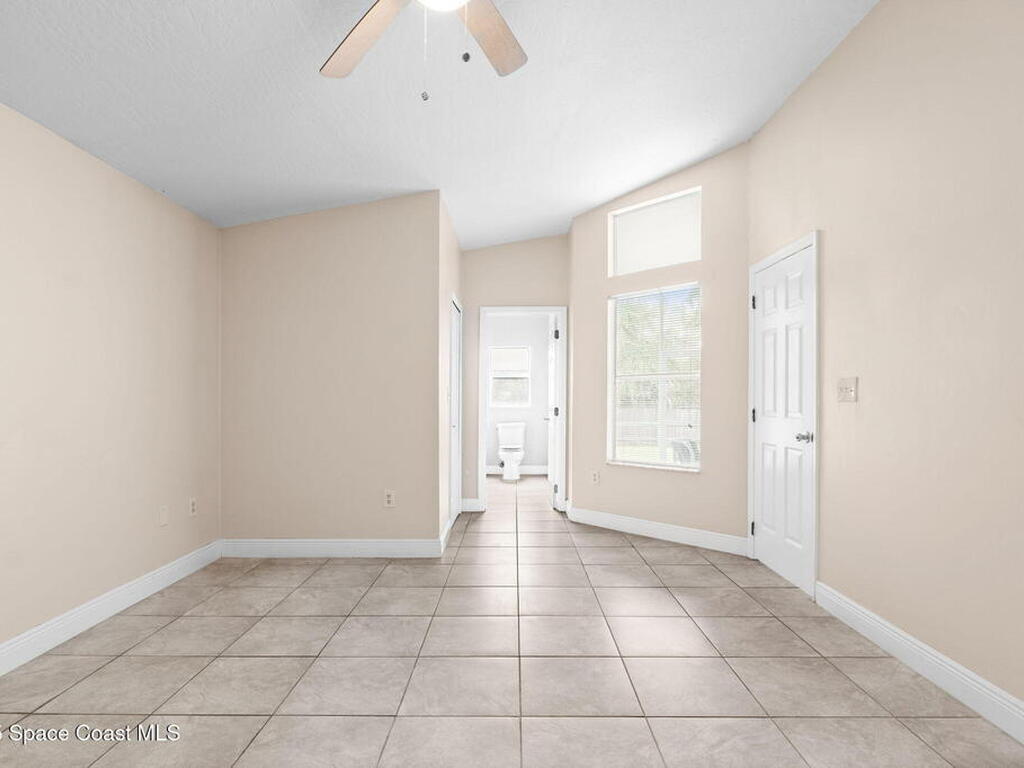 Welcome to this beautifully maintained 3-bedroom, 2-bath home nestled in a quiet, well-kept neighborhood in Titusville. Perfectly situated near shopping, restaurants, and quick access to Interstate 95, this property combines everyday convenience with the peaceful feel of a private retreat. Step inside to find a bright, open floor plan highlighted by soaring ceilings and large windows that flood the home with natural light. The spacious living area offers plenty of room for entertaining and flows effortlessly into a defined dining space and an inviting kitchen. With crisp white cabinetry, stainless-steel appliances and a breakfast bar overlooking the family room, this kitchen is designed for both style and functionality. This home has an open concept with a split floor plan. The large primary suite features an ensuite bath with recently remodeled walk-in shower. Two additional bedrooms and a full guest bath with tub offer flexible space for family, guests, or a home office. No carpet.