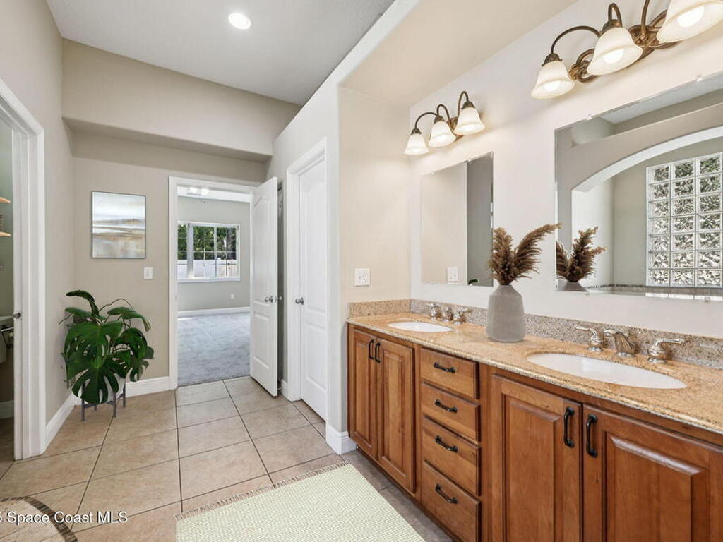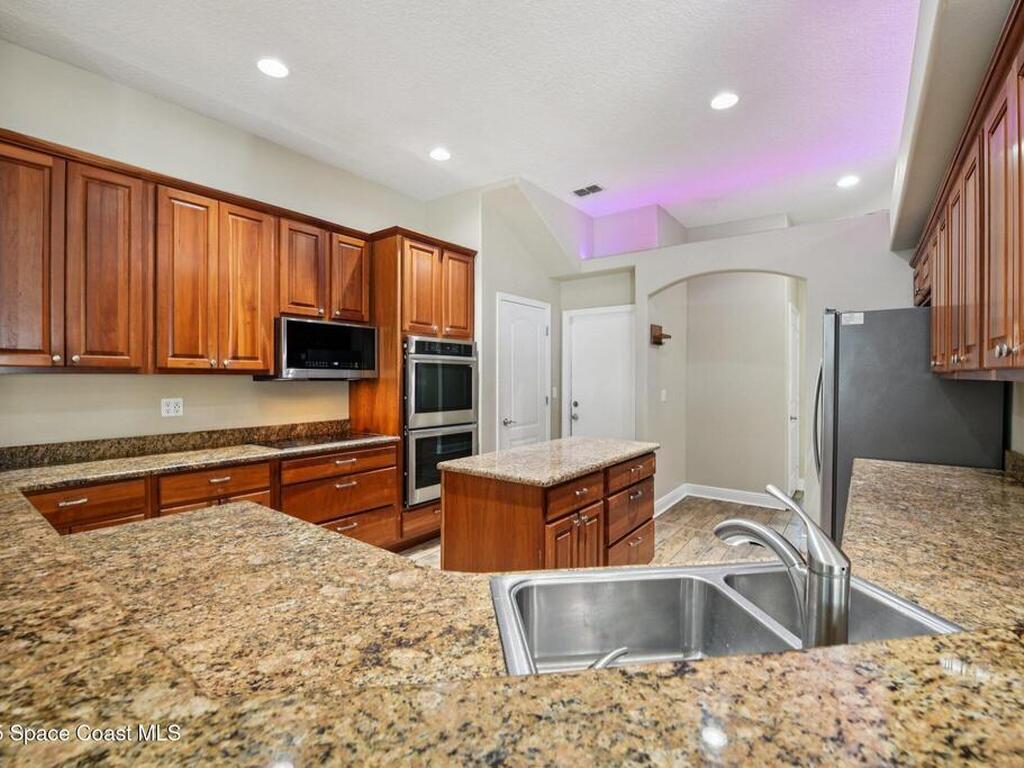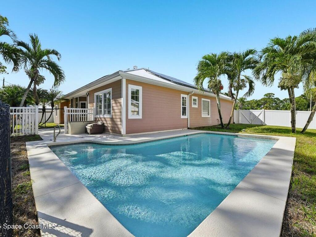 Freedom living with NO HOA! In an A-rated school district and just 15 minutes to the beach, this 5 BR / 3 BA / 2-car garage pool home is ideal for multi-generational living. Open plan with high ceilings, wood-grain tile in main areas & laminate in bedrooms. Kitchen features granite, maple cabinets, SS appliances, built-in double oven & breakfast nook. Downstairs master with walk-in closets, jetted tub & shower; plus 2 guest rooms & bath. Upstairs offers a 2nd master, large bath & bonus living area. Updates: 2 NEW AC units, new ducting, pool pump with heater/chiller, vinyl fence, appliances, nearly all new carpet & TWO solar systems that slash your power bill (battery-ready). Fenced yard & sparkling pool complete this home!