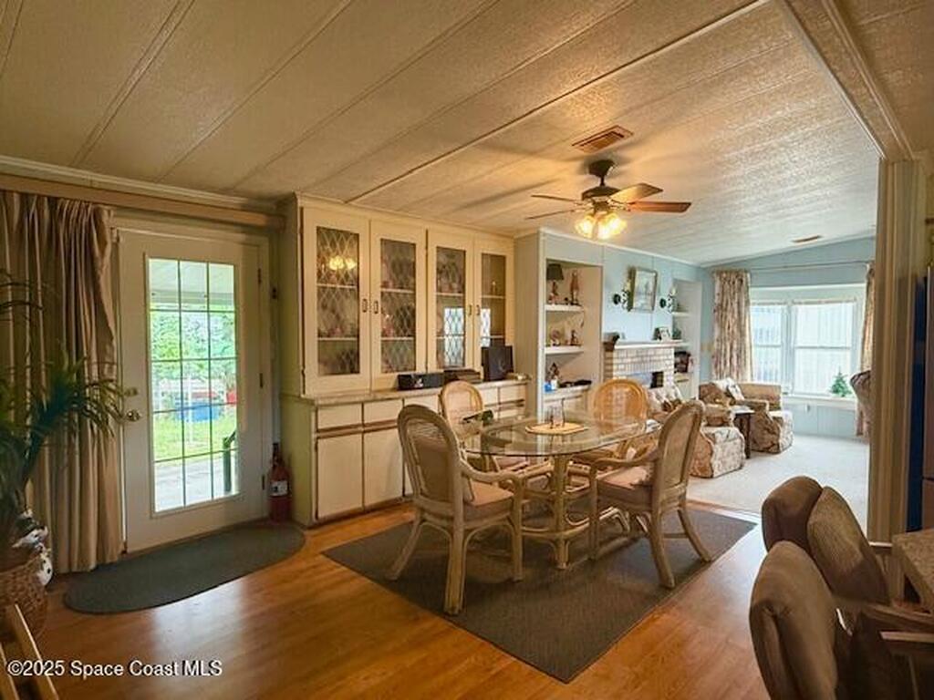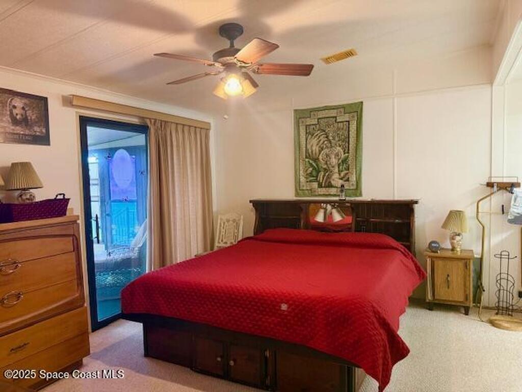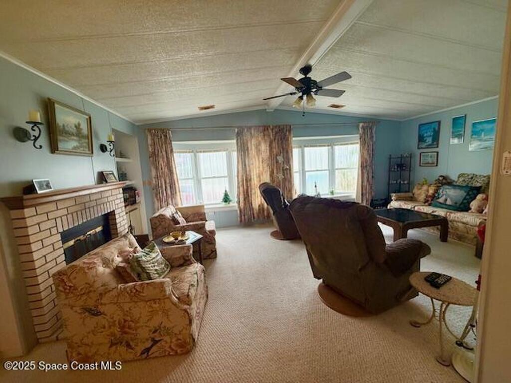 BACKUP OFFERS WELCOME: This home offers so much potential! Bedrooms are spacious & the kitchen is a nice size. Tub & showers are in great condition. Newer taller toilet in the owner's suite with a soaking tub. Fireplace in the living room makes for cozy cool Floriday nights. There is a golf cart garage and plenty of room for all your tools and fishing and beach gear. There is a Enclosed sunroom and a small back patio overlooking a pond.Enjoy all the amenities that Barefoot Bay offers. There is also onsite parking available for boats & RVs nearby at an additional cost. A dog walk is just east of the home. Make this one yours! THERE ARE SECURITY CAMERAS LOCATED AROUND THE PROPERTY.