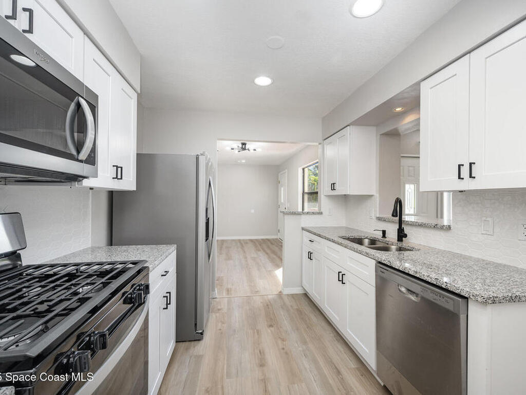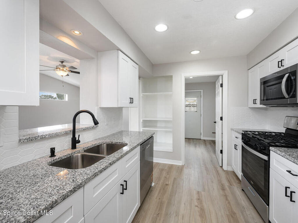 Welcome to 980 Miracle Way -- a spacious 4 bedroom, 2 bath home offering exceptional value for its size, neighborhood, and upgrades. This property features a versatile flex room that can easily be converted into an efficiency or in-law suite, providing excellent potential for extra income or extended family living. Enjoy peace of mind with no cast iron plumbing and appreciate the recent updates that make this home move-in ready. The covered porch and large fenced backyard with a shed offer great outdoor living and storage space. Conveniently located near Kennedy Space Center, SpaceX, Blue Origin, and major employers along Florida's Space Coast. Just minutes from shopping, dining, and easy access to I-95. Perfect for families, professionals, or investors looking for a well-maintained home in a high-demand area.