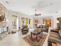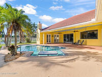 An exceptional opportunity to live in one of Merritt Island's most beloved neighborhoods.Originally built and owned by the developer of River Grove, this stunning single story lakefront home boasts quality and prime location. Featuring durable tile roof and a true master suite with private sitting area, wood floors, and charming fireplace, this residence exudes warmth, elegance and spaciousness. The large kitchen offers solid oak cabinets, granite countertops, built-in wine bar, and island perfect for entertaining. Set on an oversized fully fenced lot adjoining the serene neighborhood lake, the property includes multiple fruit trees. Enjoy outdoor living with grilling area, shower and swim-up table in the pool, resurfaced in 2019. A light filled family room with a second wood-burning fireplace completes this spacious home. Storm Shutters on premise. Yard is irrigated by well. Community Dock on the Indian River with Fishing Rights. Don't miss out on this exceptionally priced home!