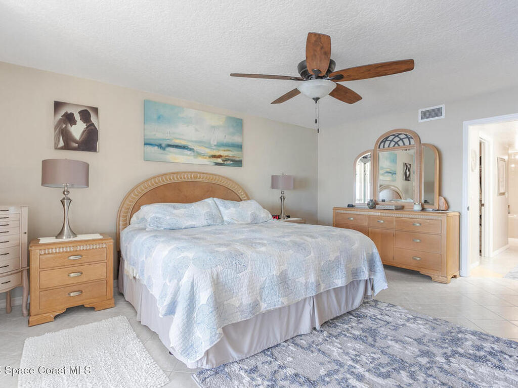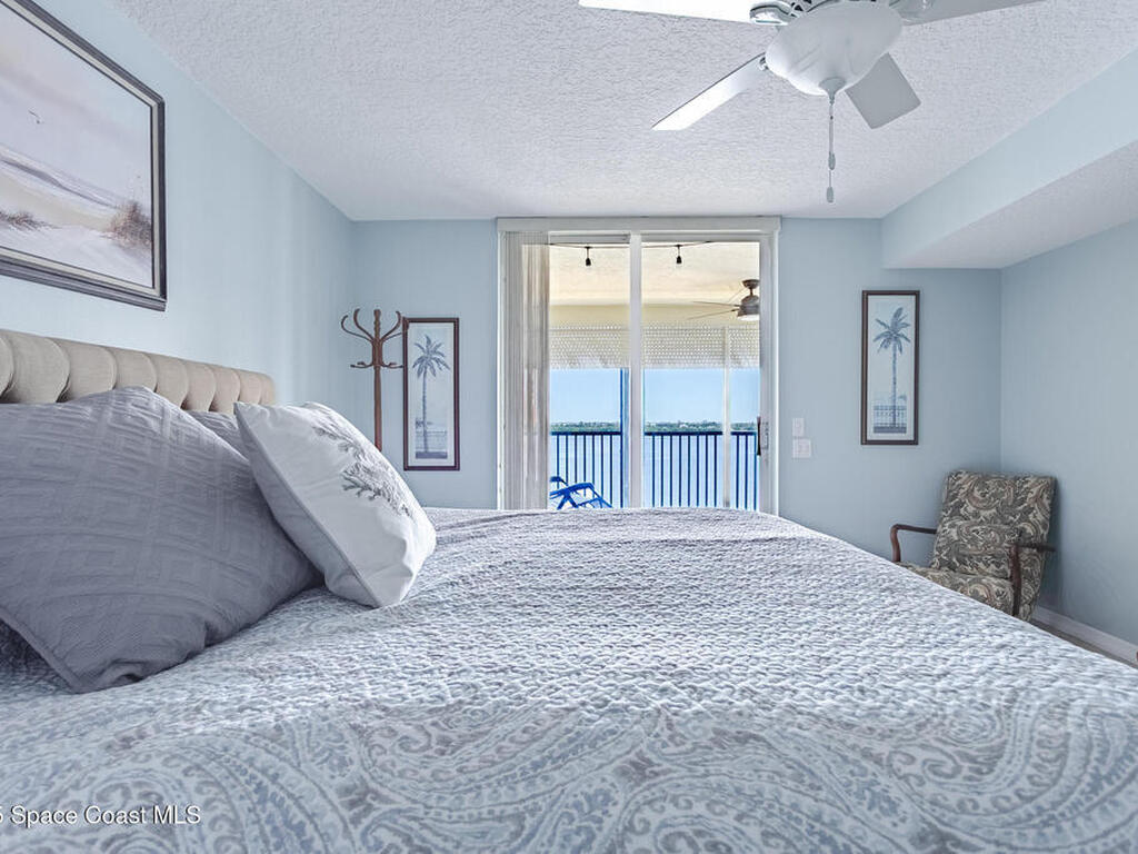 This 7th floor gated community offers breathtaking river views. Step inside this spacious 3-bedroom, 2- bath residence which is over 1900 sq feet. The remodeled kitchen features new cabinets, granite counter tops, stainless steel appliances, breakfast bar, led lighting and plenty of storage. Each bedroom offers ample space. Primary bedroom boasts walk-in closet, garden tub with separate shower, along with granite countertop. The 2 guest bedrooms are spacious with one featuring a walk-in closet. Step out onto your private screened in balcony - to enjoy a front row seat to watch dolphins, manatees and boats cruise by. Merritt Towers boasts 2 sparkling pools with hot tub, clubhouse with a full kitchen, library and sauna. Residents can reserve the south pool along with a propane grill and kitchen for special events. Community also offers a dog park, pickle ball courts and dock along the river. Enjoy the Veterans Park with walking trail. Convenient location, minutes from Cocoa Beach.