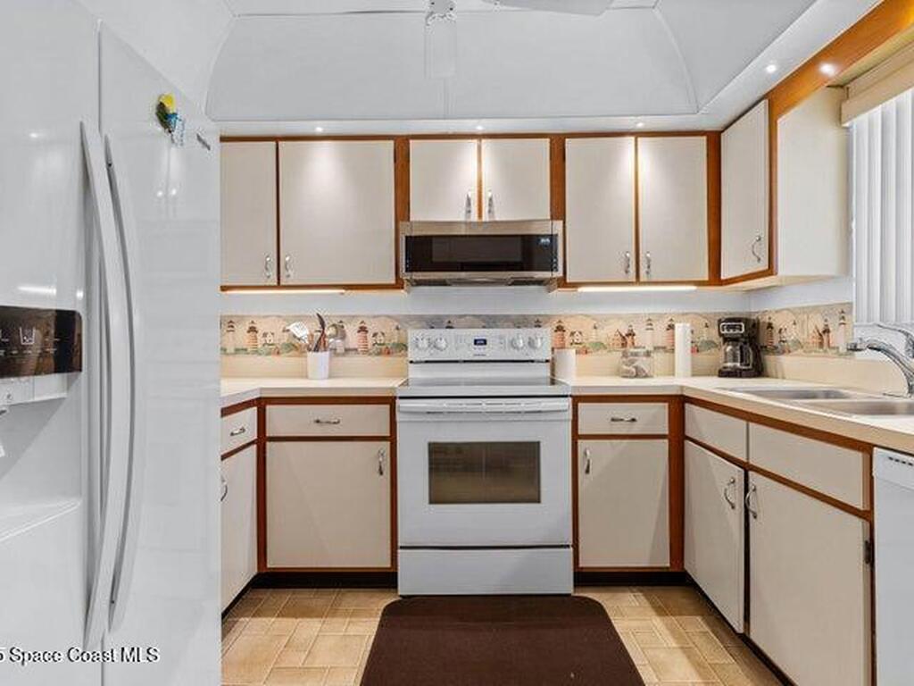 In the heart of Cocoa Beach! This 2BR/2BA second-floor corner unit offers 1, 058 sq. ft. plus a screened-in patio. Sold fully furnished and currently rented with excellent tenants who can stay or go. Features include a spacious living area, functional kitchen, and full-size washer/dryer. The all-ages, pet-friendly community boasts 2 pools (1 heated), clubhouse, boat ramp, dock, and on-site manager. Just minutes to the beach, dining, and shopping--ideal as a home, getaway, or investment!