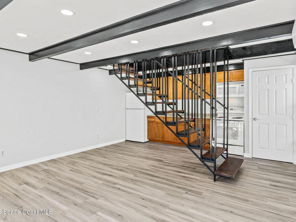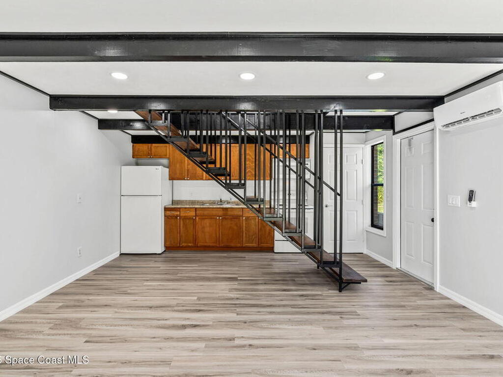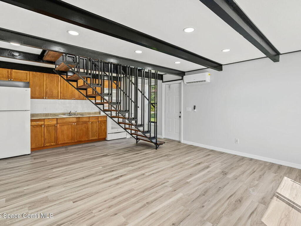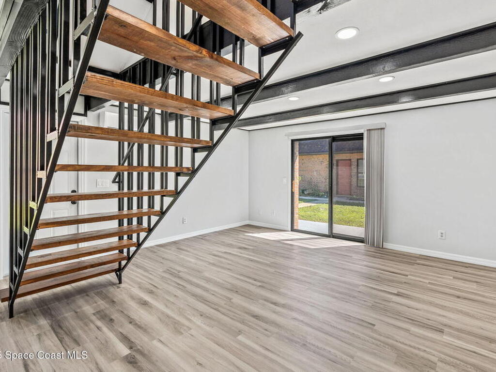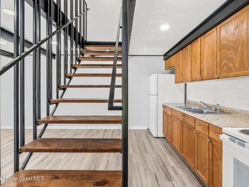 Discover the fully renovated 1-bedroom, 1-bathroom condo in the back of the quiet Bluffs community of Palm Bay off of US1.This move-in ready home was renovated and cabinets and baths replaced 3 years ago as well as luxury vinyl plank flooring, LED lighting, and ceiling fan upstairs. Enjoy the open-concept living space and an energy-efficient tankless water heater. The two-story loft-style layout offers privacy with the spacious bedroom, bathroom & enclosed laundry room located on the second floor. Low association dues make this an affordable home! A detached one-car garage provides additional storage and convenience.Updated units in this complex are renting for $1, 375+ per month, making this a great investment opportunity. Located in a prime area, just minutes from downtown Melbourne and 15 minutes to the beach, this condo offers both comfort and affordability.. Don't miss the opportunity to make this yours - schedule your showing today!