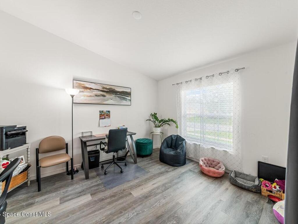 This extremely functional Capri floor plan by Avtec Homes is basically NEW. City water and sewer which is a HUGE BONUS in Palm Bay. Barely lived in and built at the end of 2021, this 3 bedroom PLUS an office is the perfect layout. This move in ready home is spacious, open, and has a big enough yard to accommodate a pool. Less than 10 minutes to Hammock Landing where you'll find tons of shopping and dining. No carpet.