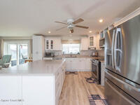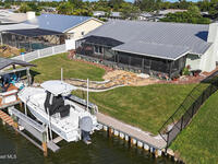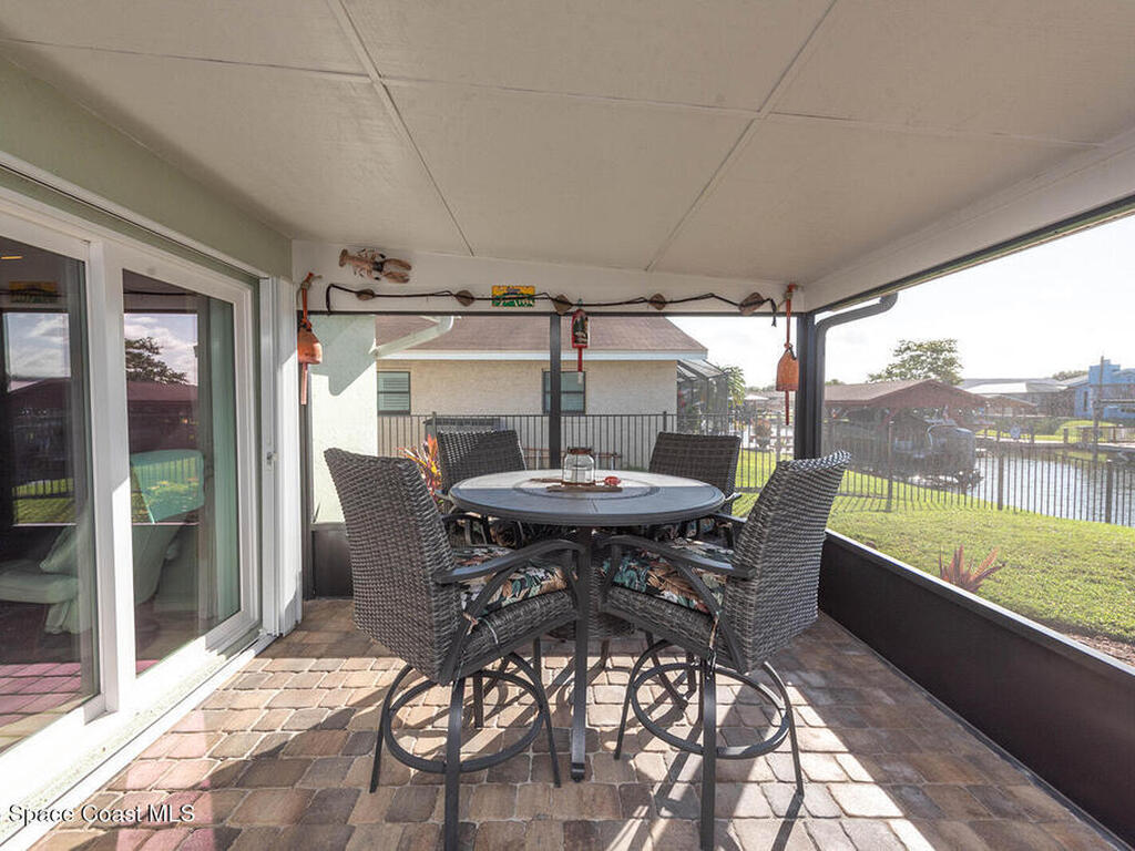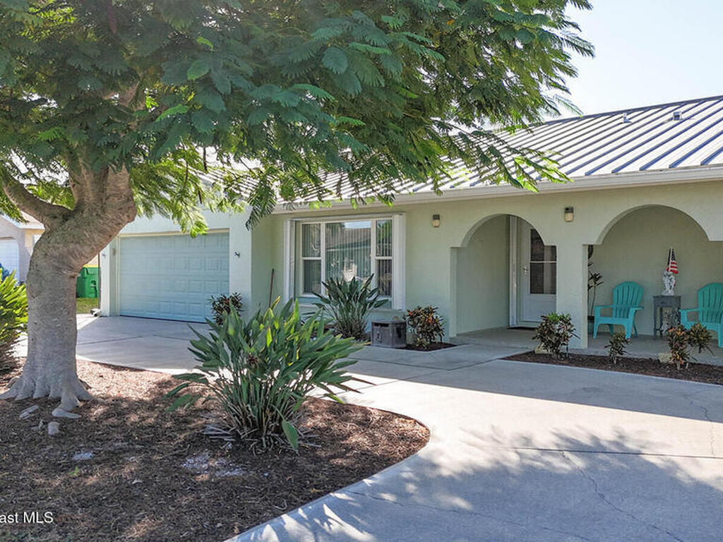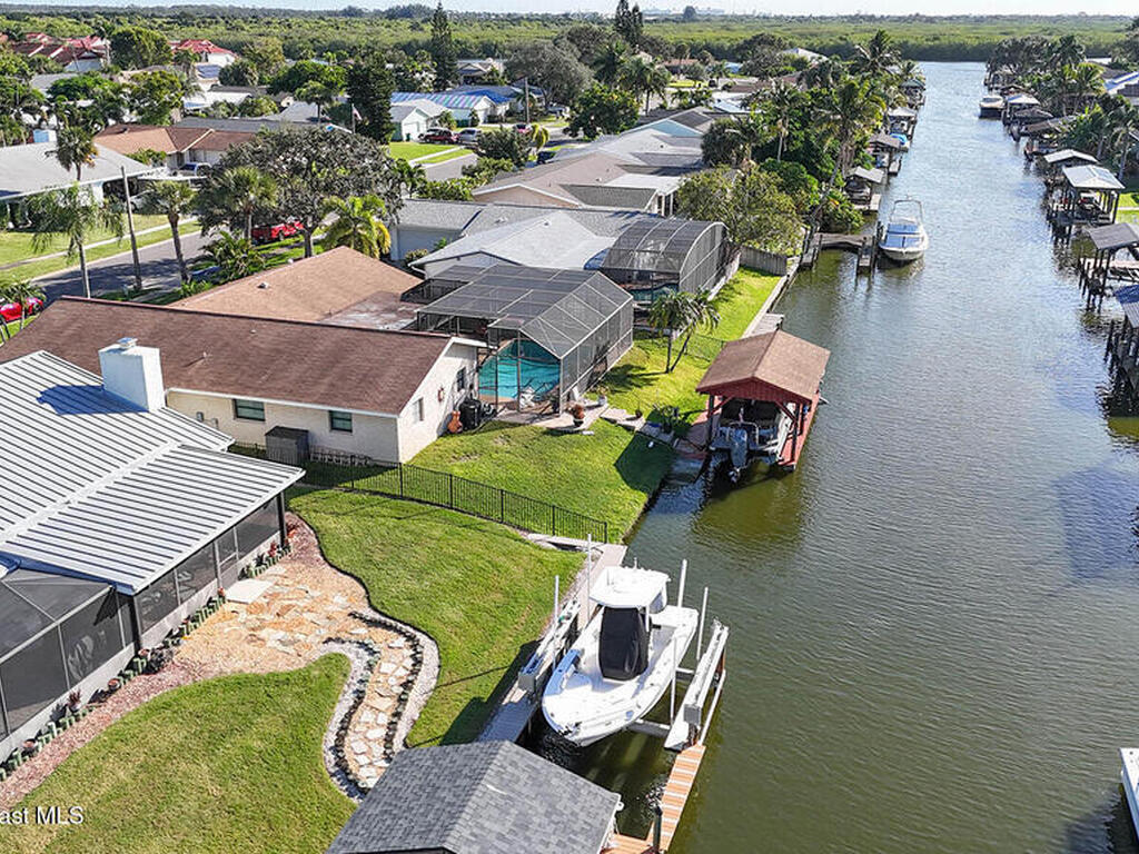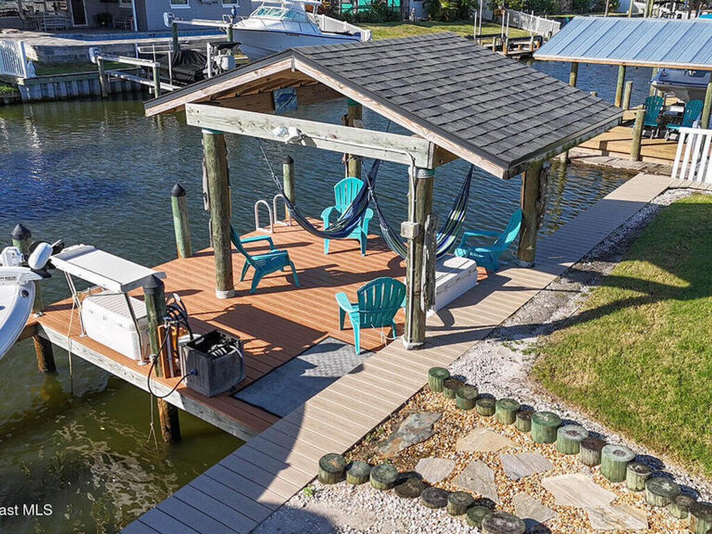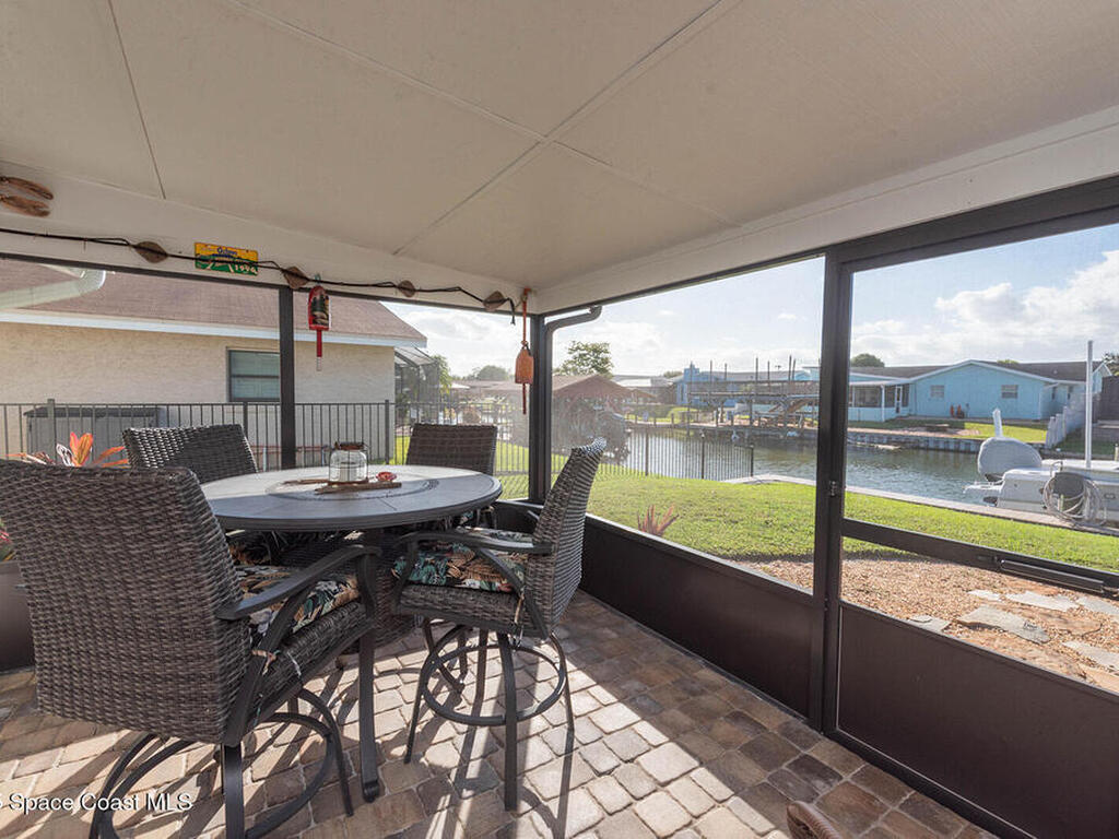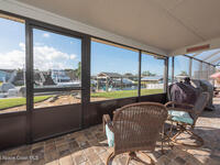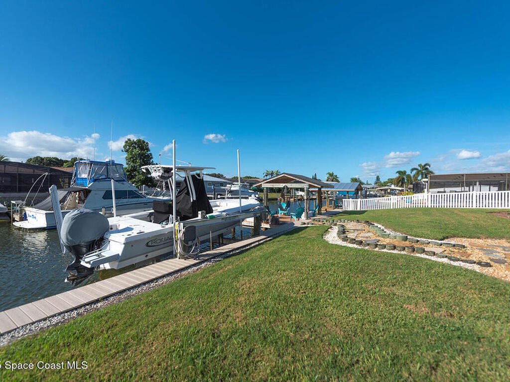 Relax in paradise with this updated 3/2 open floor plan. 1 canal away from the barge canal & close to open water! This well-maintained home has a new seawall, dock & 16, 000 lb boat lift! A large open kitchen with island is the center of the home with solid surface countertops & stainless steel appliances. Both bathrooms have new tile. Accordion hurricane shutters give you peace of mind along with double insulated vinyl impact windows. The standing seam metal roof offers years of durability. Pavers & a new screened cage are provided on the back porch where you can sit & watch the manatees (pic #5) & porpoises play. A spacious 2-car garage gives you ample room for your toys. The large attic storage area with truss stairs provides tremendous storage. The home boasts a fireplace with an electric insert (can be used as a wood-burning fireplace). Custom trim work has been completed throughout the home. Electric has been updated & a tankless hot water heater installed.
