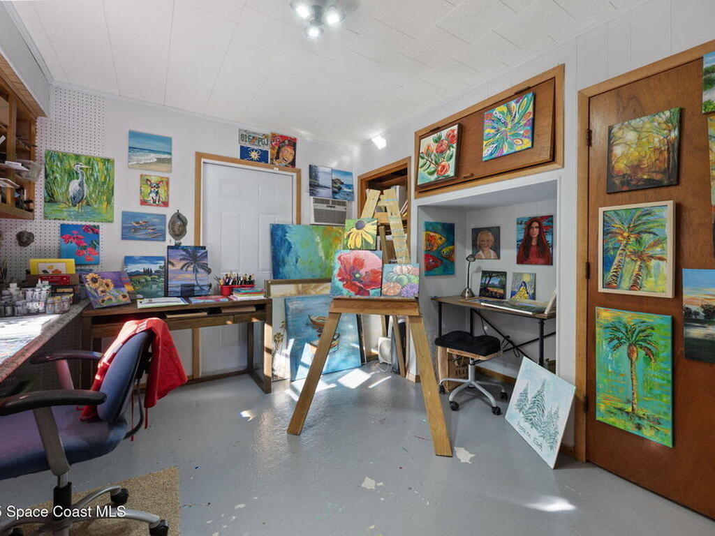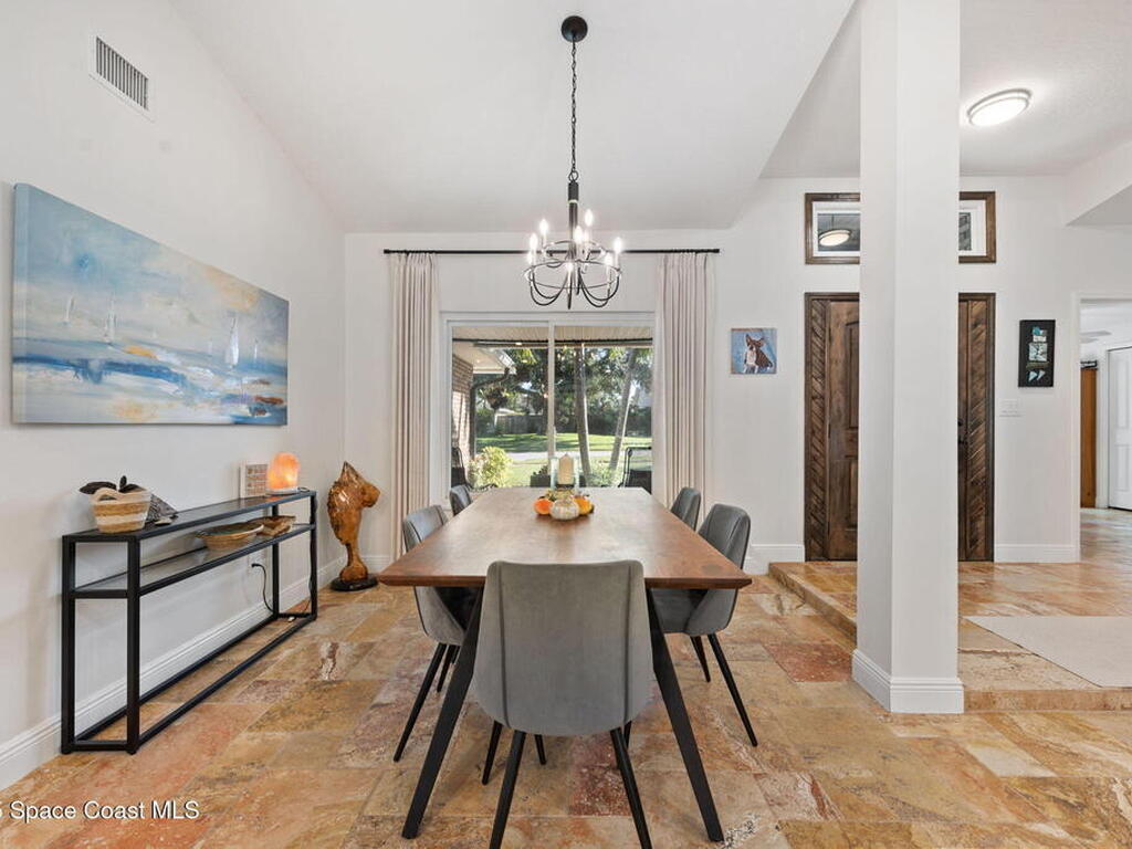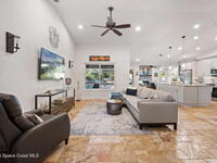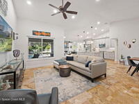 Beautifully renovated 4 bedroom pool home in the charming New Georgianna Settlement community. New roof in 2019. New pool pump, new impact rated windows and garage door. Kitchen recently fully redesigned with massive center island, shaker style cabinets, quartz countertops and all new stainless steel appliances. All tile floors. This impressive open floor plan, wood-burning fireplace, covered brick paver patio & sparkling screened pool makes this home perfect for entertaining friends and family. Very private fully fenced yard backs up to a mango orchard. You'll love the abundance of parking space which includes RV or boat parking, plus an attached 2 car garage, and a detached 1 car garage which currently serves as a workshop/art studio. This desirable community includes private access to the Banana River for fishing or launching your kayak, canoe or paddle boards. Don't delay, come take a look in person and secure this dream home for yourself today!