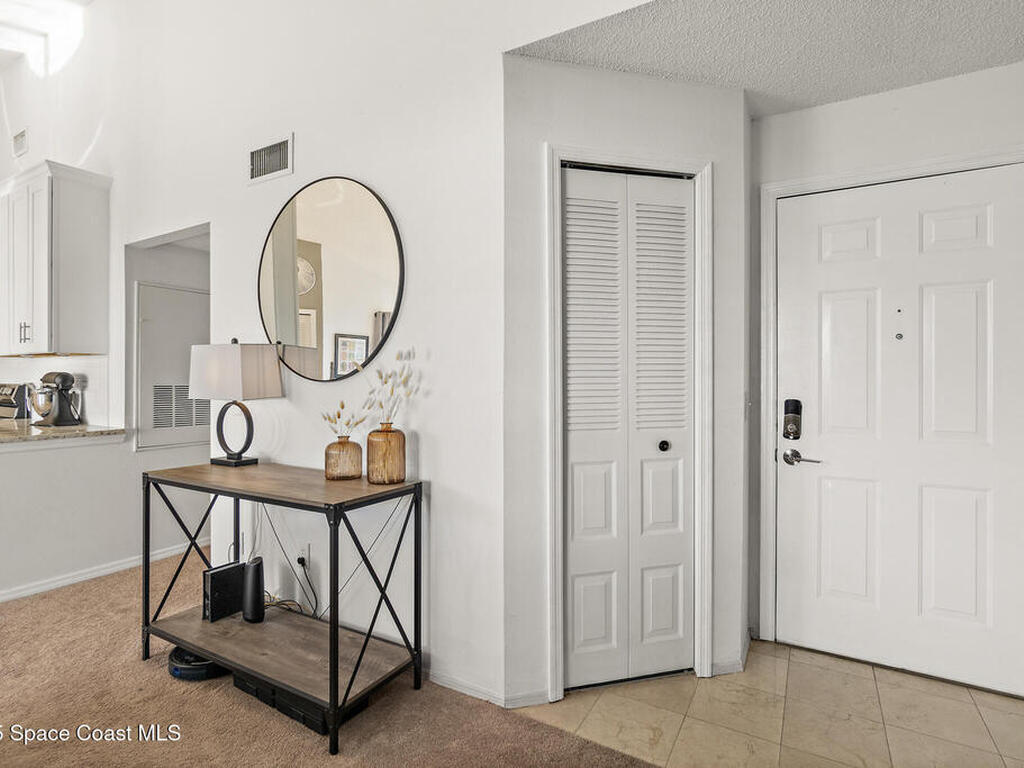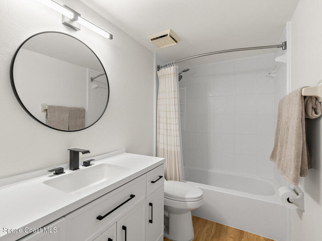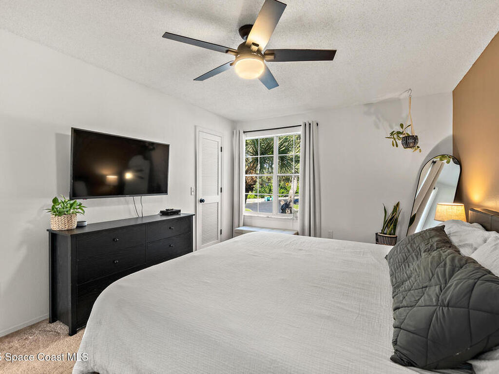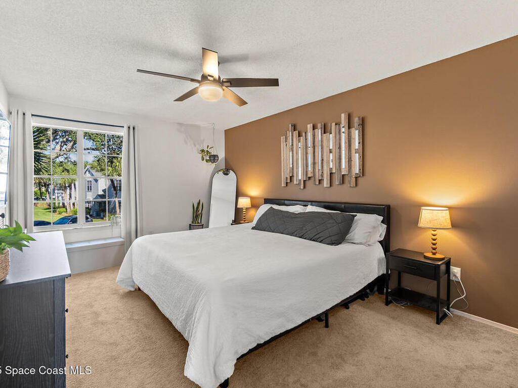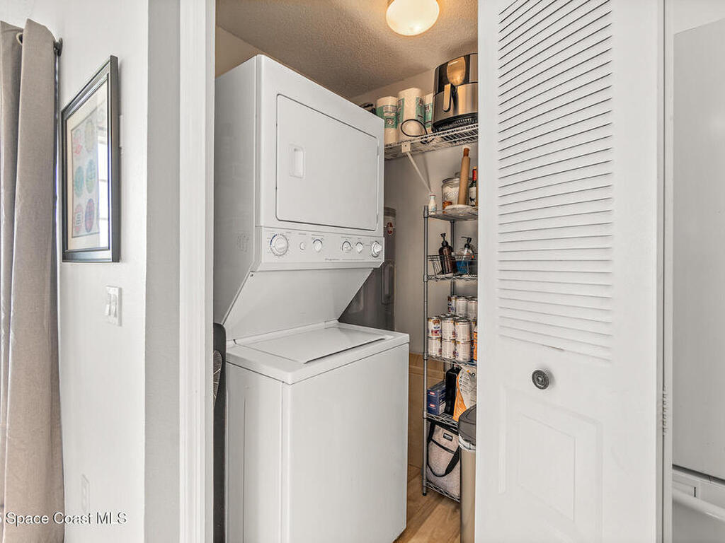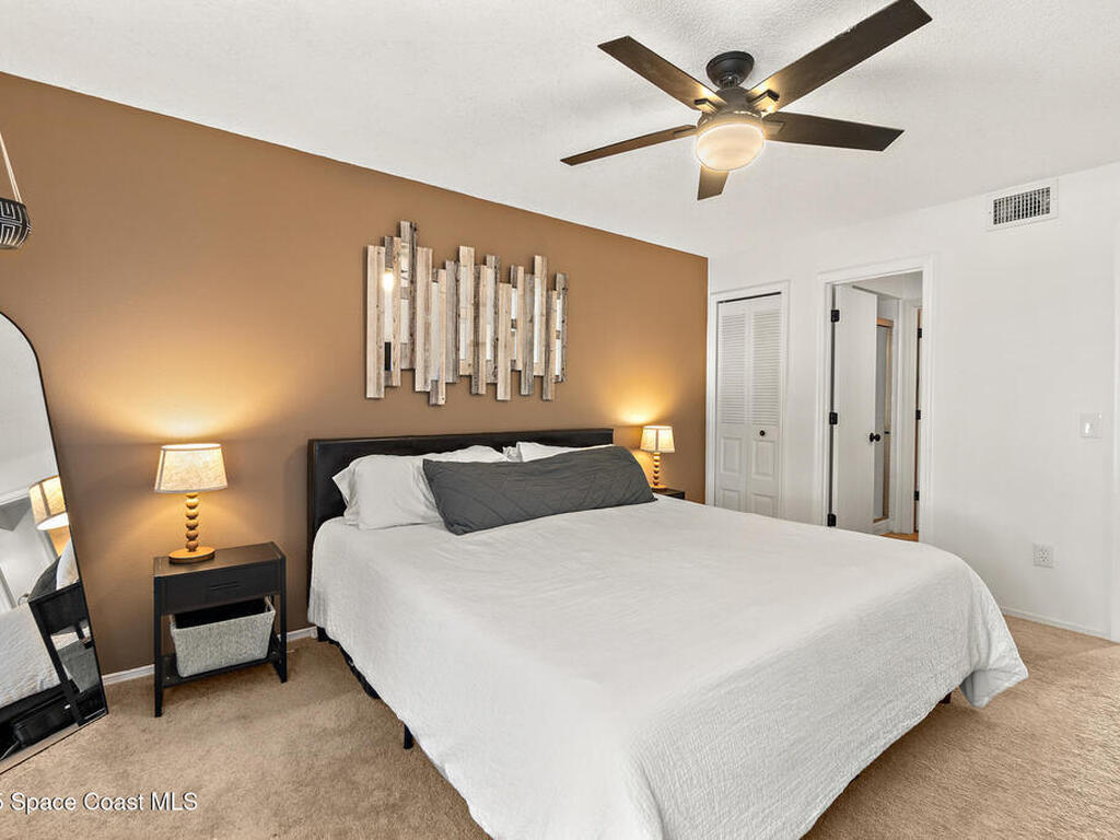 Experience breathtaking Indian River views from this beautifully maintained 2-bed, 2-bath condo in the highly desirable Sunrise Landing community. Soak in the sunshine and watch rocket launches right from your south-facing private screened balcony. Inside, this light-filled unit features an updated kitchen complete with wood-like laminate flooring, newer stainless appliances, bright white cabinetry and sleek granite countertops. The modern open layout flows seamlessly into the dining and living areas, all with spectacular river views. The spacious primary suite includes an ensuite bath with a dual-sink vanity and updated fixtures. Step outside and enjoy the well-manicured grounds and resort-style amenities including a private dock, 2 pools, 2 hot tubs, 2 saunas, 2 fishing piers, 2 clubhouses, 2 spas, tennis, pickleball & shuffleboard courts! Enjoy active community events and peaceful waterfront living all in one! Pet-friendly with low HOA fees. Assigned parking is right at your door!