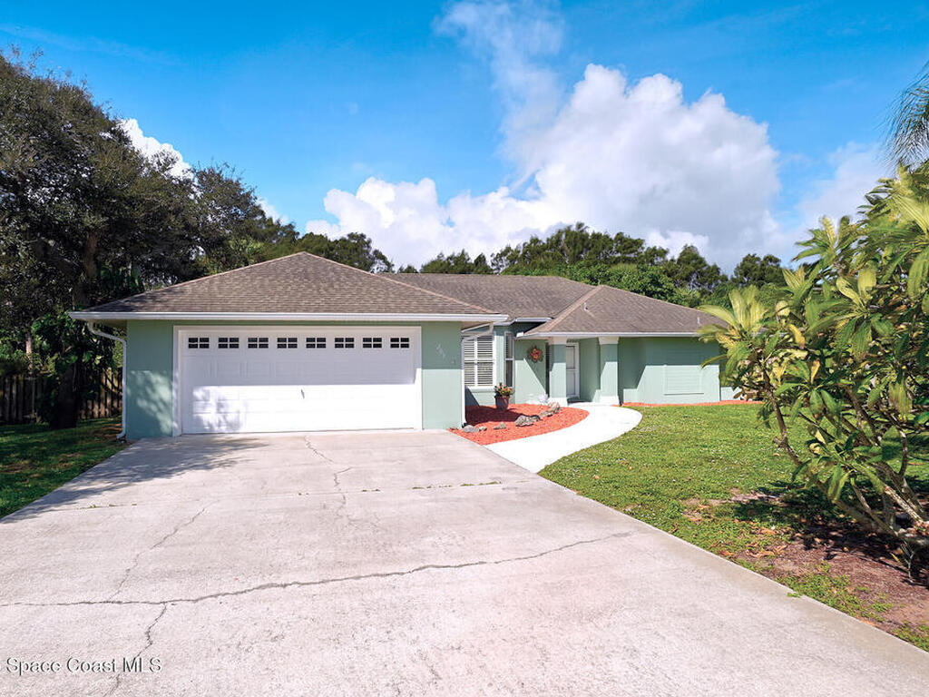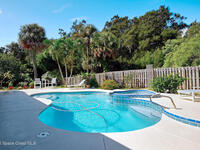 Nestled in the coveted community, Woodland Estates, this custom-built residence greets you with timeless curb appeal, meticulous craftsmanship and boasts lots of natural light inside. Open great room concept flows seamlessly from kitchen to large great room that has triple glass door slider that opens to large screened in lanai. The bright breakfast nook off of the kitchen has panoramic views of large fenced in backyard, sparkling heated pool with spa and lush landscape. The privacy here is hard to find being located at end of cul de sac and so much vacant land to the west. Plantation shutters frame each window w/ classic elegance. Inside, a new A/C system inside and out ensures year-round comfort. New gutters 2022. Heated, salt pool and spa gleam after 2025 resurfacing plus new tile and pool pump. Pool/spa is complemented by auto pool vacuums. Exterior freshly painted in 2020. Big fenced in yard. Walk to Woodlands gated beach access in minutes w/ sitting area right over ocean.