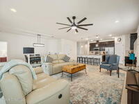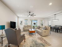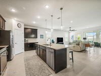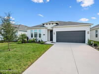 Move-in ready and better than new! This immaculate 4-bedroom, 2-bath LandSea-built home offers an open-concept split floor plan perfect for modern living. Lightly used as a second home, it features stylish tile in the main areas and plush carpet in the bedrooms. The bright, upgraded kitchen boasts stainless steel appliances, a large island, quartz countertops, and double pantries for exceptional storage. Enjoy premium upgrades including a screened back porch, custom landscaping, gutters, an epoxy-coated garage floor, laundry room cabinetry, and attic ladder access. Smart Home Technology enhances everyday convenience. Located in a desirable community with a sparkling pool, a new playground coming soon, low HOA, and no CDD. Ideally situated off St. John's Heritage Parkway near the new Publix, shopping, dining, and major highways. Skip the build time and move right into your dream home!