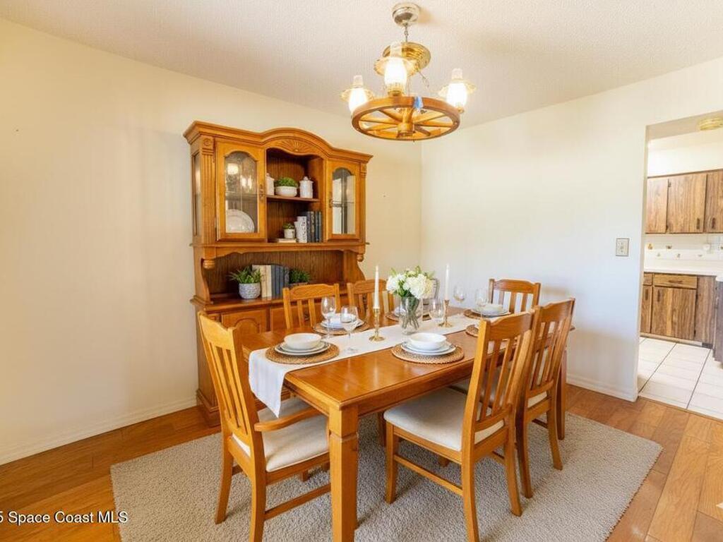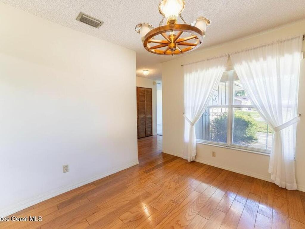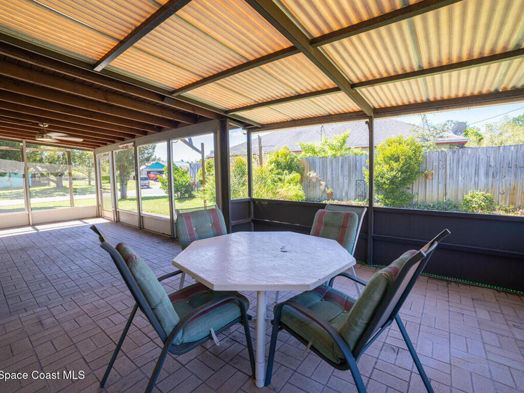 Welcome home to comfort and character in Titusville's Spring Valley. This well-kept 3-bed, 2-bath home features a bright, open layout with tile, wood, and carpet flooring adding warmth throughout. Living and dining areas connect to a screened patio overlooking the peaceful backyard--ideal for relaxing or entertaining. Updates include a roof under 3 years old, 2022 A/C, tankless water heater, and sprinkler system for easy maintenance and energy efficiency. Concrete-block construction with spacious attached garage on a corner lot. Located near parks, schools, and shopping--0.9 mi to Black Cat Coffee, 0.8 mi to Stuart Park, and 2.6 mi to downtown Titusville and the American Space Museum. Dining room chandelier does not convey.