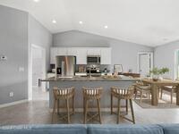 Breakfast Bar, Eat-in Kitchen, Entrance Foyer, His and Hers Closets, Kitchen Island, Open Floorplan, Pantry, Primary Bathroom - Shower No Tub, Primary Downstairs, Split Bedrooms, Vaulted Ceiling(s), Walk-In Closet(s)