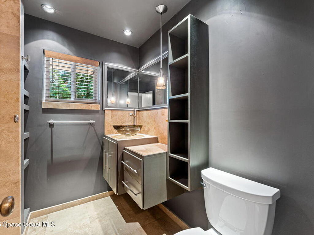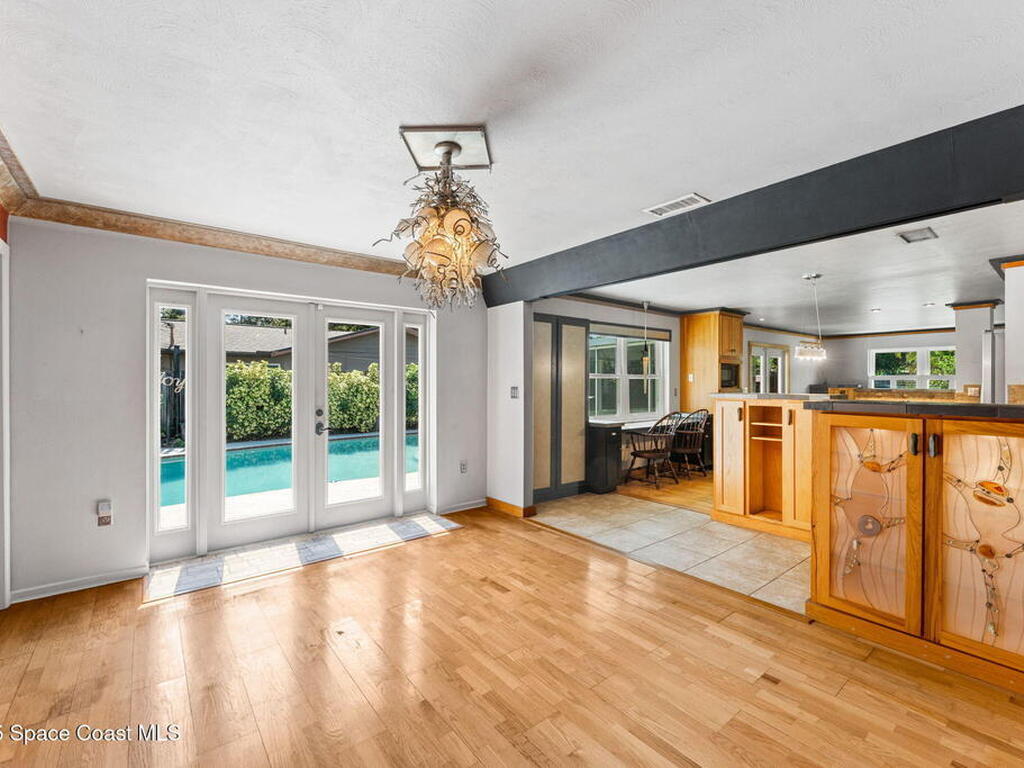Enjoy sensational sunrises over the Intracoastal Waterway/Indian River from your front river view patio. This home has a large custom pool in the backyard and expansive screened porch. Hardwood floors, one recently upgraded bathroom, hurricane windows and custom lighting. The home sits on a corner lot with mature plantings, a water feature, potting bench and a paver patio overlooking the river. All 3 bedrooms have a view of the water! This is a must see home.