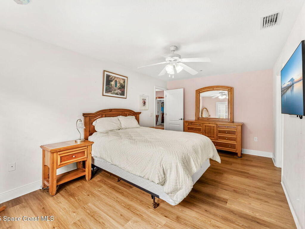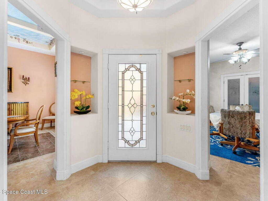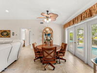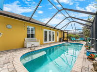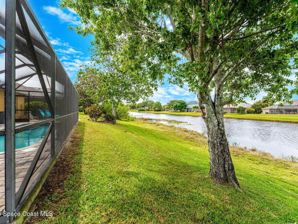 Lakefront Pool Home in Wingate Estates! This inviting 4BR/3BA courtyard-style home offers peaceful lake views and a rare 3-car garage with oversized RV bay. Updates include a new roof (2019), A/C (2020), sprinkler system (2025), luxury vinyl plank flooring in guest rooms (2024), and plantation shutters throughout (2021). Equipped with impact rated windows and doors. The home features a generous open living and dining area, kitchen with breakfast nook, and a screened pool ideal for relaxing or entertaining. Zoned for top-rated Viera schools and close to golf, shopping, dining, and beaches. Schedule your showing today!
