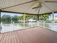 Welcome home to this beautiful 4-bedroom, 2-bath waterfront retreat on a quiet cul-de-sac. The open floor plan connects a spacious kitchen to bright living and dining areas, perfect for entertaining or relaxing with family. A second living room opens to a glass-enclosed Florida room with breathtaking water views.The primary suite features a modern bath with double vanities, a large walk-in shower, and a generous walk-in closet. of the three additional bedrooms one shares the lovely water views, while the second bath also offers double vanities.Step outside to your large covered dock, ideal for evening cocktails, fishing, or docking your boat. Enjoy the peaceful setting, stunning sunsets, and the best of Florida waterfront living.Full house generator and tankless water heater have been added for security and convenience..