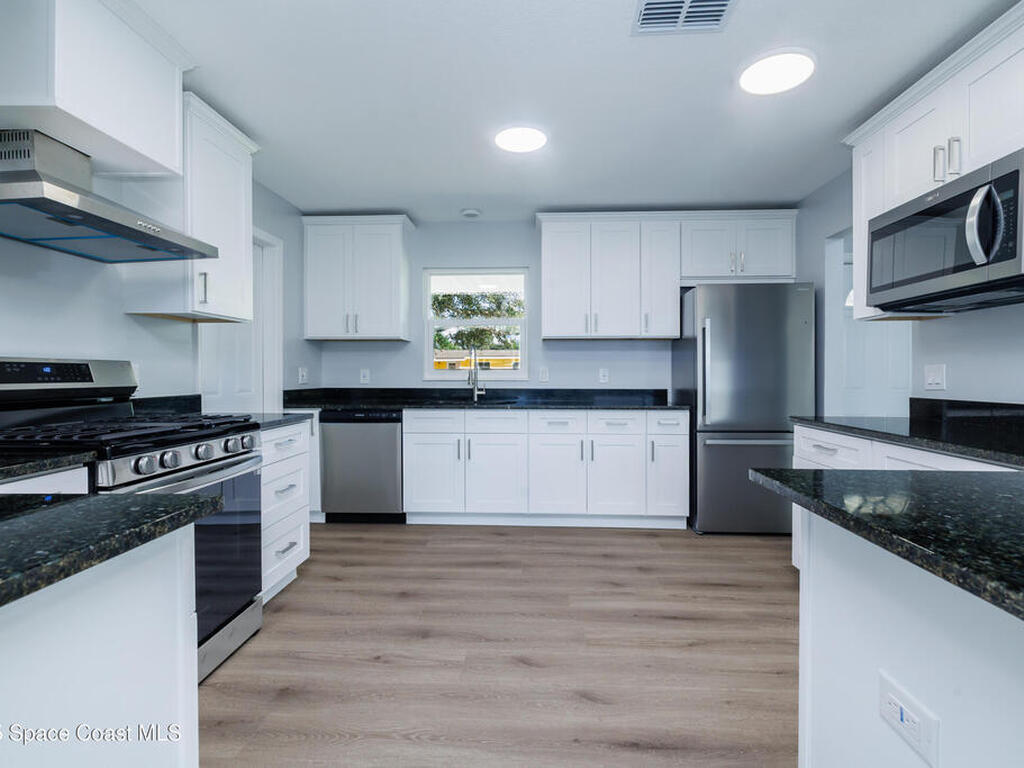 Experience modern living in this stunningly remodeled 3-bedroom, 2-full-bath home in Cocoa. The heart of the home is the kitchen, featuring granite countertops, all new appliances, including a natural gas range and stove, along with soft-close cabinets and drawers for a touch of elegance. Enjoy the seamless flow of new LVP flooring throughout the main living areas, while the bedrooms offer cozy, brand new carpeting.This home has been updated with brand new impact windows, ensuring energy efficiency and storm protection, plus all-new plumbing and doors! It's perfectly located within walking distance to schools, and just a 5-minute drive to a variety of shopping and dining options.Commuting and travel are a breeze with easy access to FL-528, providing a quick route to Orlando Int. Airport, area beaches, and the cruise port at Port Canaveral. A bonus feature is the 24x12 shed in the backyard, equipped with power, ideal for storage or hobbies. *One or more photos virtually staged.