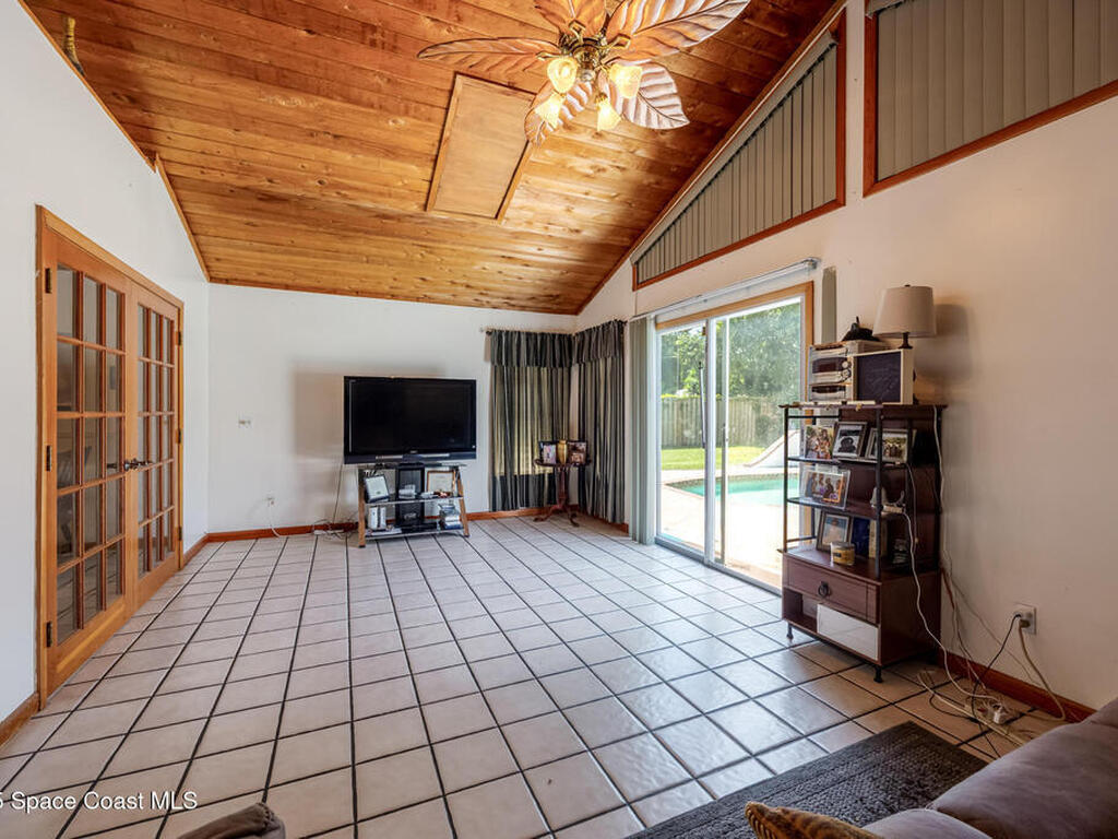 Charming 3 bedroom, 2 bathroom POOL home with an expansive, fully fenced-in backyard. This home offers a spacious and functional layout with split bedrooms and a huge sun room featuring French doors and vaulted ceilings. Sliding doors lead out to the backyard oasis where you'll find an oversized patio and sparkling, in-ground pool. Interior laundry room with large basin sink just off the 2 car garage. Newer roof and A/C. Home includes hurricane shutters.