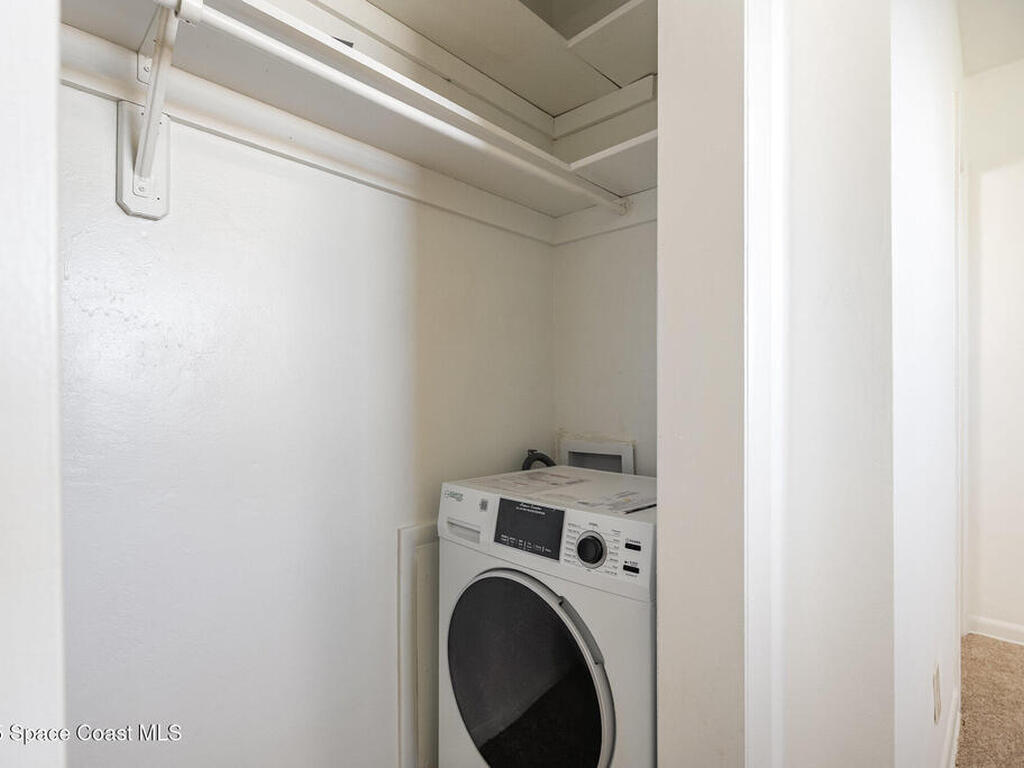 Rarely available 2-bedroom, 2-bath condo at Seacoast Gardens ideally located directly across from Millennium Beach Park! This light & bright second-floor residence offers the perfect blend of comfort and coastal convenience. Recent updates include a refreshed kitchen with new stove and refrigerator, new carpet, updated bathroom vanities, freshly painted interior and a space-saving all-in-one washer/dryer combo. Enjoy your morning coffee in the enclosed back porch or stroll across A1A to watch the sunrise over the Atlantic. Wind down in the sparkling community pool just steps from your front door. Additional features include assigned carport parking and a private storage closet to store your beach gear. Whether you're looking for a full-time residence or a seasonal getaway, this move-in-ready condo offers the best of beachside living! Close to grocery stores, shopping, dining, top rated schools, and just minutes from Eau Gallie Arts District.