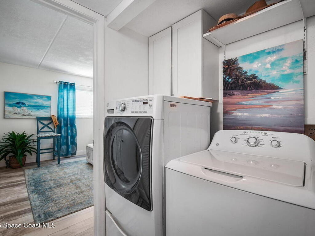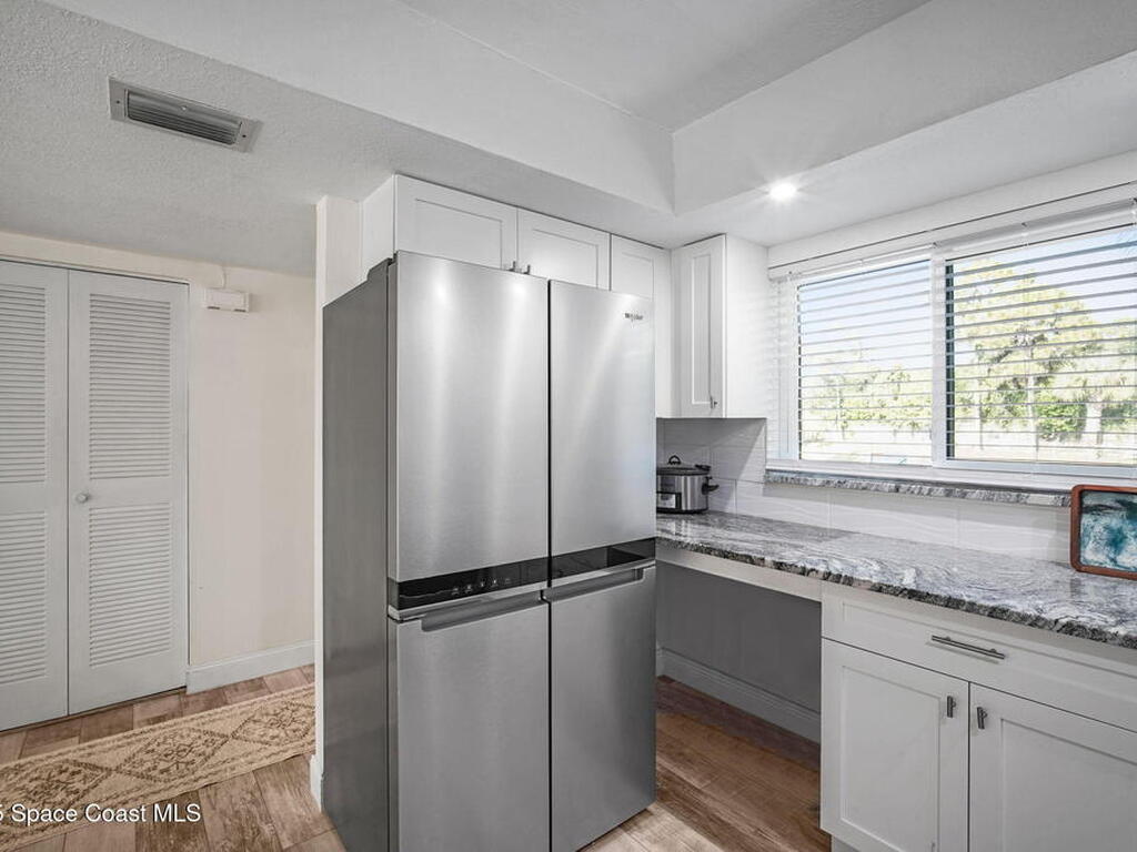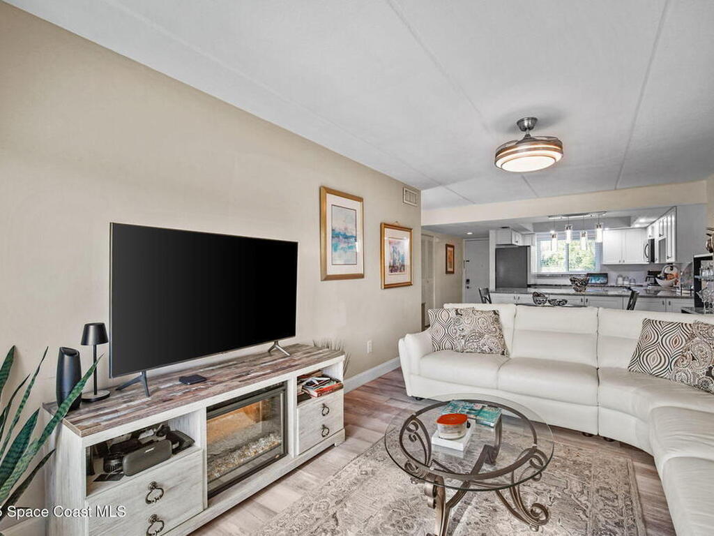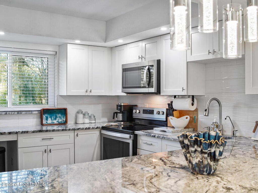 Welcome to 1001 W Eau Gallie Blvd, Unit 229--a bright, move-in-ready home in a canal-facing building steps from the Eau Gallie Arts District (EGAD) and just minutes across the causeway to Canova Beach. Start your day with coffee on the private balcony while boats drift by; stretch out on the property's expansive lawn to the river for sunset; then cool off at the community canal-facing pool. Weekends are effortless: stroll to murals, galleries, cafes, breweries, and markets, or launch a kayak/paddleboard from the community dock with boat access via the canal.Inside, modern comfort meets durability: impact windows (2024) and custom impact sliders, luxury plank flooring throughout, and a smart layout with a barn door that creates a private primary suite, plus in-unit laundry. The remodeled kitchen shines with quartz countertops, an oversized island with storage on both sides, soft-close cabinetry, a deep farmhouse sink, and in-sink water filtration. All major appliances included