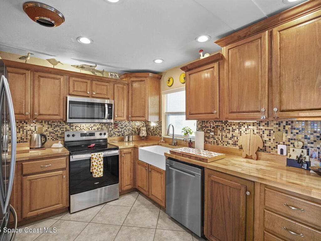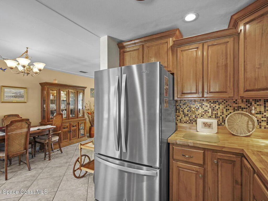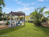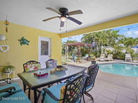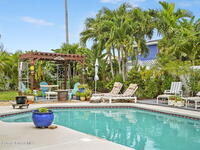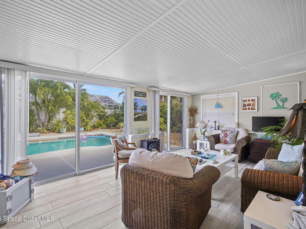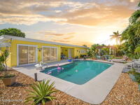 Live the Cocoa Beach lifestyle in this beautifully updated 3-bedroom, 2-bath pool home with a 1-car garage, perfectly situated in Cocoa Isles. Bright and inviting, the spacious living room flows into an updated kitchen featuring butcher block countertops, all-new stainless appliances, and plantation shutters throughout. A large Florida room overlooks the sparkling pool and tropical backyard oasis--offering the perfect space for entertaining and added square footage. The home boasts an extensive addition creating a generous primary suite with a walk-in closet and an updated ensuite. Stepping out into your tropical backyard with plenty of space to relax and unwind while enjoying the refreshing pool. Enjoy peace of mind with a newer roof and A/C (2020) and low-maintenance tile flooring throughout. Surrounded by lush landscaping and just minutes from the beach, river, shops, and dining, this Cocoa Beach gem offers the perfect blend of comfort, style, and island-inspired living.