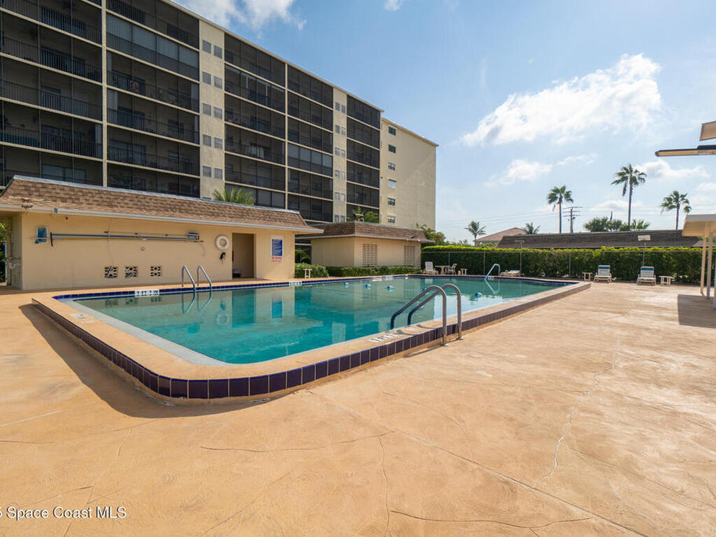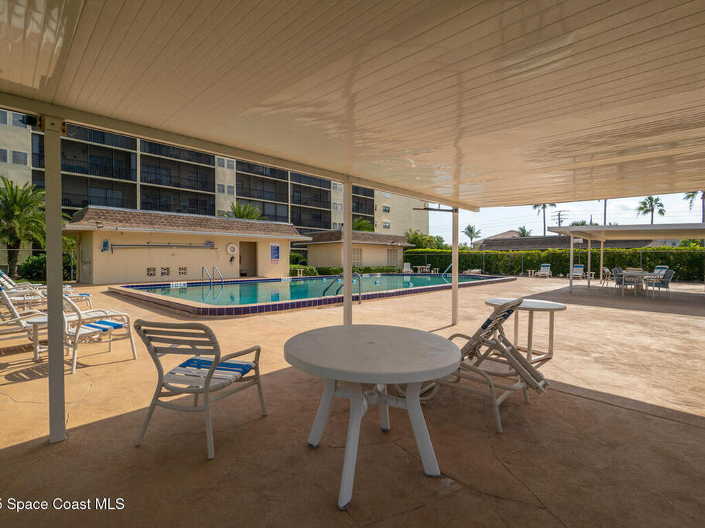 SHORT WALK TO THE BEACH! Spacious 3-BDRM, 2-bath end unit on the 5th floor with beautiful ocean views. Milestone inspection report complete, and there are no known assessments coming--move in with total confidence! NEW A/C(2024) & UPGRADED Electric Panel (2023)! This well-maintained unit features a spacious balcony, bright open living/dining area, breakfast nook, stackable washer/dryer, and a 3x5 storage closet on the same floor. Enjoy a solar-heated pool and cabana, clubhouse with kitchen, library, pool table, Wi-Fi, tennis & pickle ball courts, shuffleboard, and assign covered parking. Walk or bike to beach access, shops, restaurants, and parks. Monthly fees include water, sewer, cable, Wi-Fi, trash, pest control, and reserves. One small pet (25 lbs max) allowed. Well run association with tons of activities!