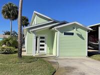 A newly constructed custom home with a detached garage awaits you! Brand new decor with new appliances, vaulted ceilings with skylights and fans throughout. A large paved patio extends from the house to the detached garage. The garage has a vaulted ceiling with great light and a garage door to accomodate your small car, golf cart, motorcycle or other toys. Willow Lakes is a 55+ commiumity. The location is near airports, beaches and theme parks. There is an executive golf course on the property. There is a gated entry, clubhouse, heated pool, pickleball, tennis and more. Rocket launches can be seen from your yard.