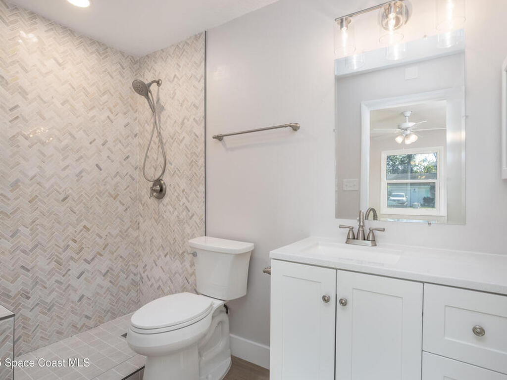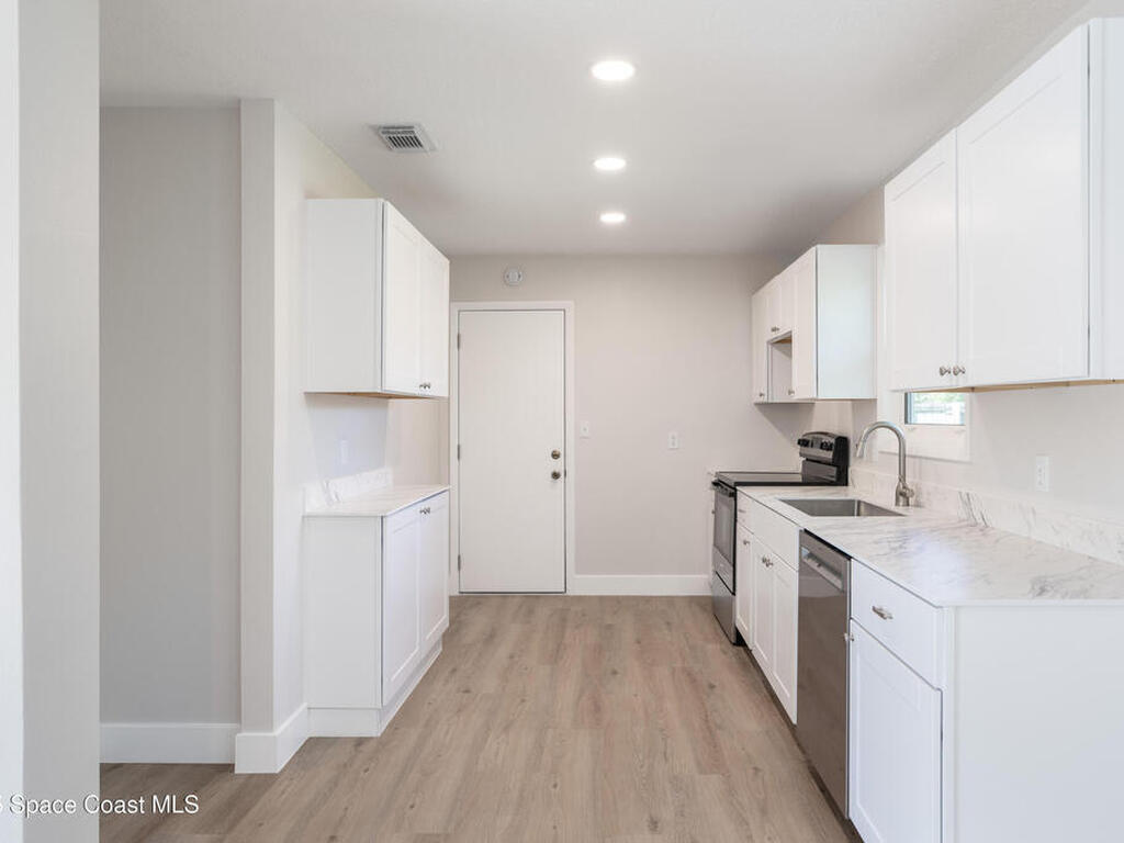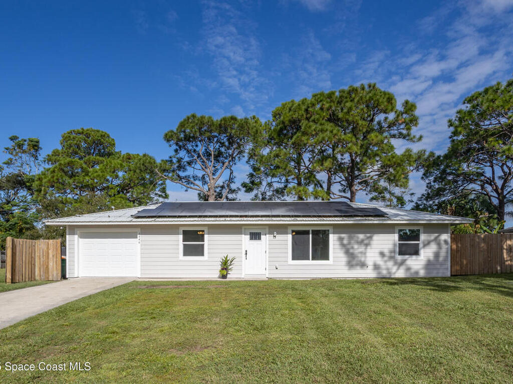 Remodeled Move-in Ready Home under $300K. Beautifully remodeled 3-bed, 2-bath home in Port St. John featuring a 6-year-old metal roof, paid-off solar, impact windows & slider, new AC, hot water heater, new vinyl flooring throughout the home. The stunning kitchen offers new cabinets, counters, sink, dishwasher, stove, and disposal. Both bathrooms feature tiled showers, new vanities, fixtures and commodes. All ceilings freshly painted as well as the entire interior of the home. All new fixtures throughout. Exterior also freshly painted with a new front door. Ready for a new owner!