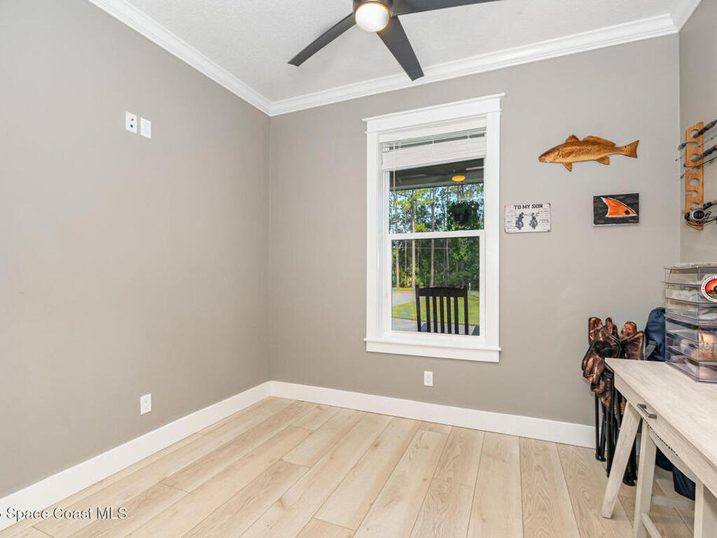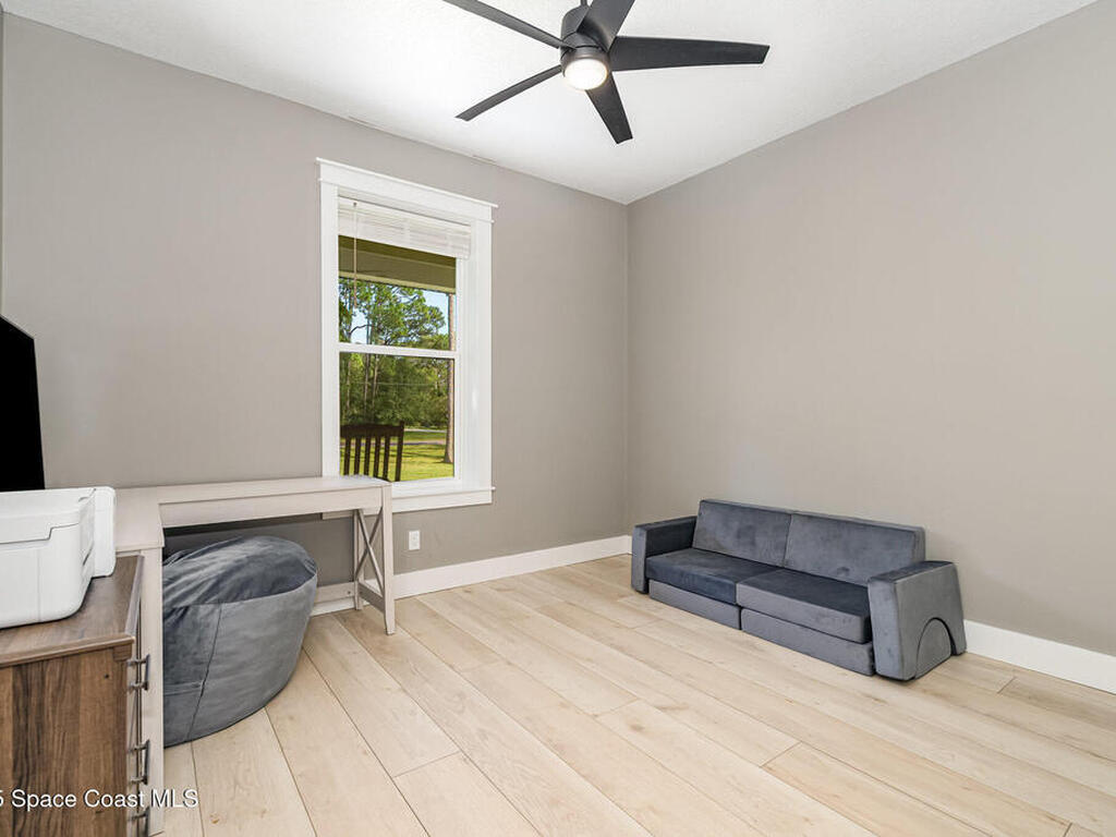 Beautiful 2023 Custom Home on 1.35-Acre Corner Lot - No HOA! Welcome to Quail Haven, where modern luxury meets quiet country living. This stunning 3-bedroom, 2-bath home with a dedicated office sits on a spacious 1.35-acre corner lot and was built in 2023 with exceptional attention to detail.Energy-efficient features include hurricane-impact windows, spray-foam insulation, and upgraded 5/8'' roof decking for long-lasting durability. Inside, you'll find 8-foot door openings, custom trim work, and quartz countertops throughout the home. The kitchen offers a Bluetooth-enabled stovetop and sleek, high-end finishes. Technology lovers will appreciate the smart switches programmable for lighting schedules, a full security system with glass-break detectors, and whole-home surround sound--living room, master bedroom, and back porch--all controllable from your mobile device. An AV equipment rack is neatly installed in the master closet for added convenience.