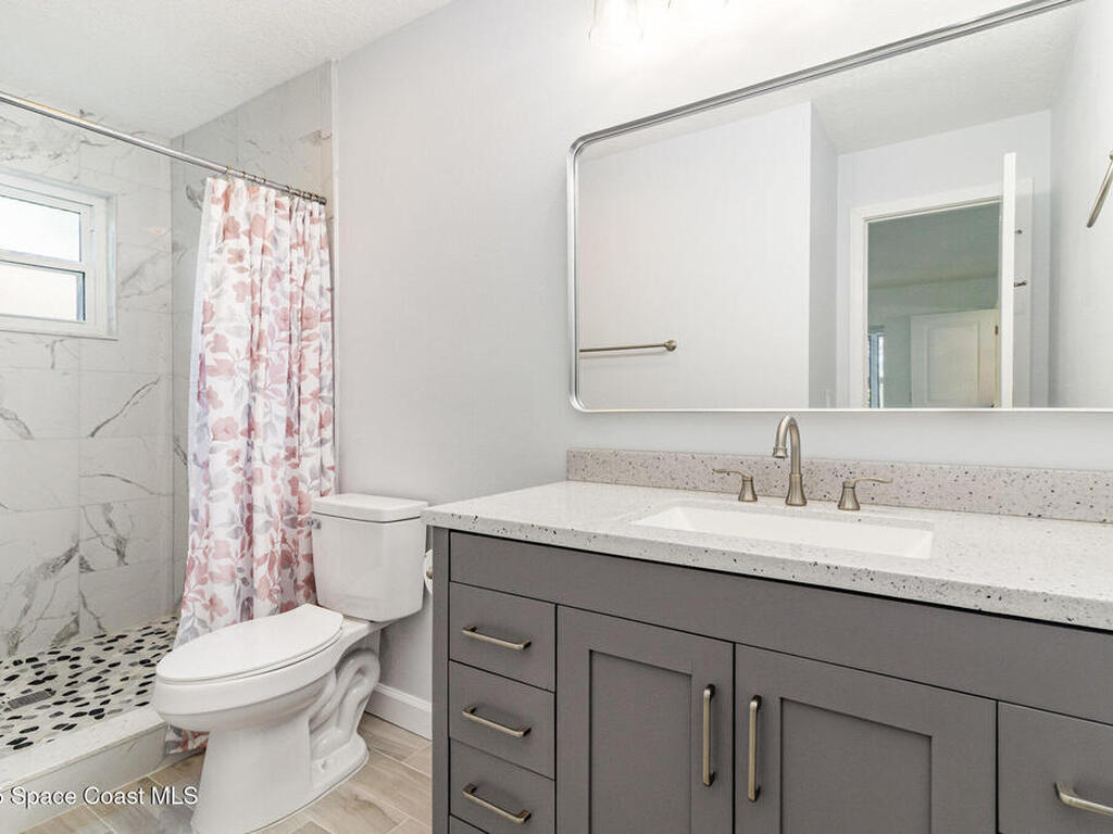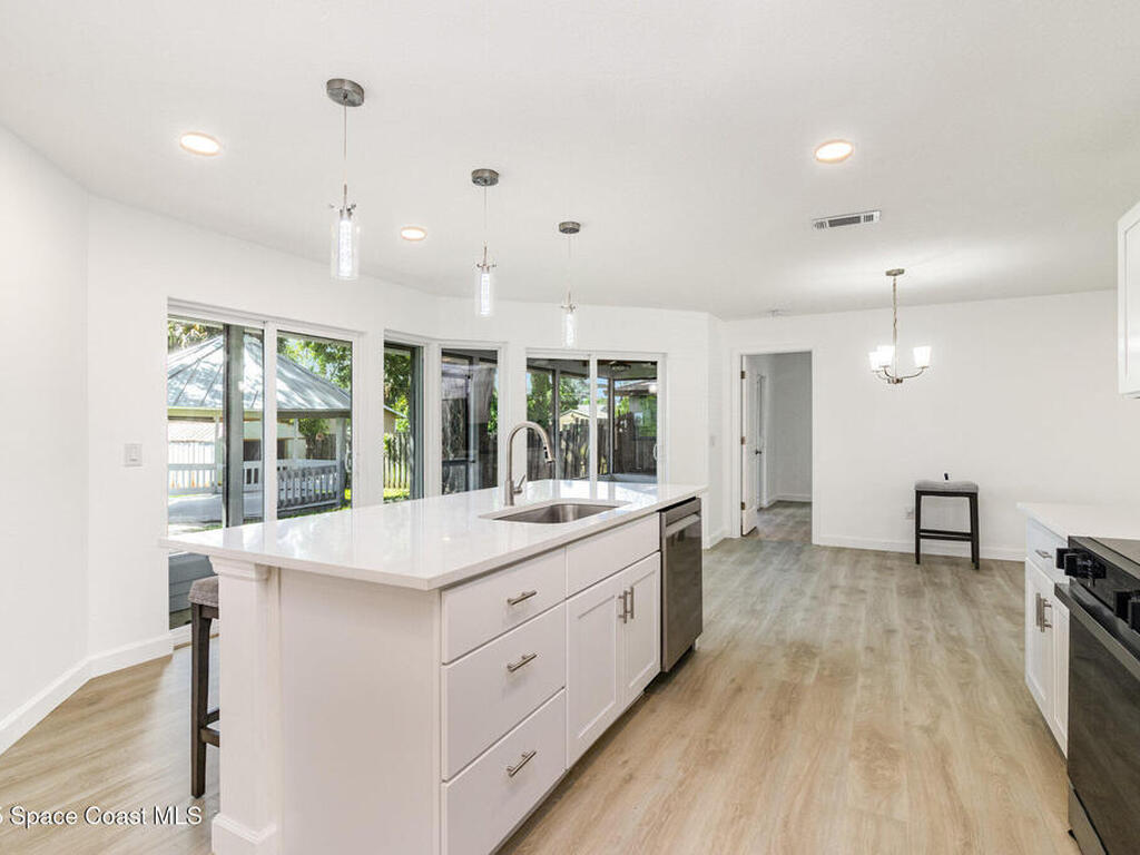 Completely renovated from top to bottom with modern upgrades. This stunning 4 bedroom 2 bath home offers comfort, thoughtful design, & exceptional outdoor living space in a highly desirable location close to schools, Hammock Landing, & quick access to I-95. Step inside to find a brand new kitchen featuring all new stainless appliances, stylish quartz countertops, tiled backsplash, custom cabinetry & a spacious island w/breakfast bar. The eat-in kitchen offers the perfect spot to gather with family while overlooking the beautiful fenced back yard. Enjoy peace of mind w/a new metal roof (2024) and new AC system. The entire home has been tastefully updated with vinyl plank flooring, new doors, windows, & molding throughout. No expenses spared! Both bathrooms have also been fully renovated to include custom tile & updated fixtures. Outside, unwind on the screened-in porch, host gatherings under the large gazebo, or make use of the detached shed for extra storage.