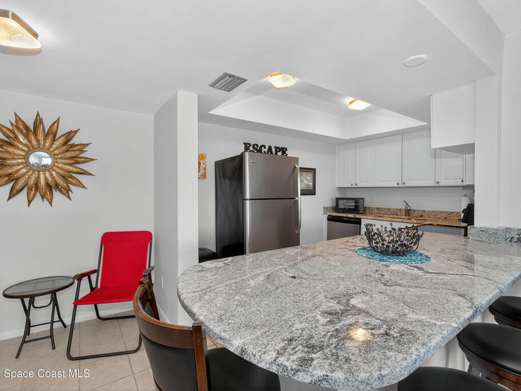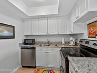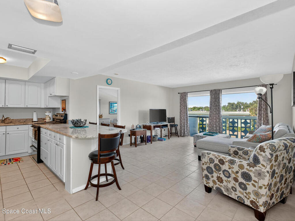 Welcome to your new coastal retreat at The Plaza! This fully furnished, custom remodeled, open kitchen, 3/2, condo offers 1, 200 sq ft of comfortable living space, perfect for beach lovers and those seeking a laid-back lifestyle. Nestled in Cape Canaveral, this unit is just a short walk from the pristine beaches, allowing you to enjoy the sun and surf at your leisure. The vibrant neighborhood is filled with local shopping, delicious restaurants, and a host of activities that make living here a delight. Perfect proximity to the river AND ocean.Features of this incredible condo include fully remodeled/open kitchen, spacious bedrooms, a very inviting living area ideal for relaxation or entertaining, amazing natural light from the sliding glass doors that lead to the beautiful balcony overlooking the sparkling massive pool. The well-maintained building reflects the classic charm of the 1960s while providing modern conveniences of today.