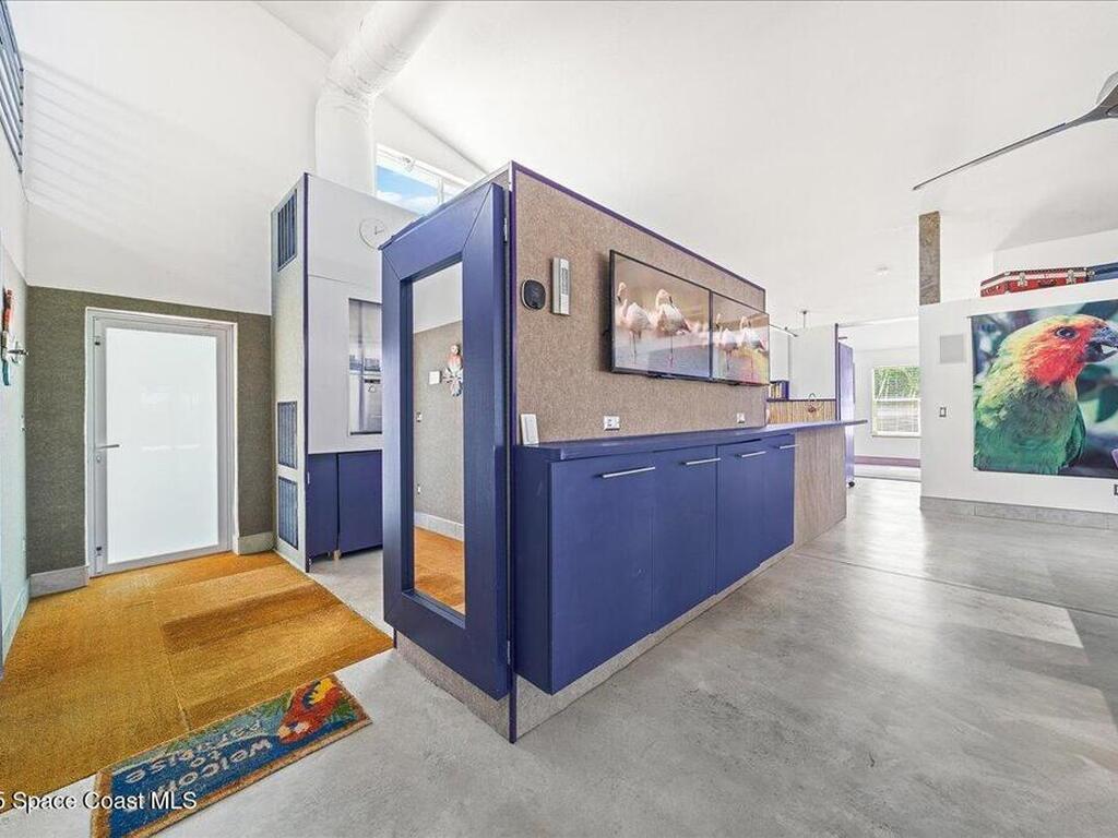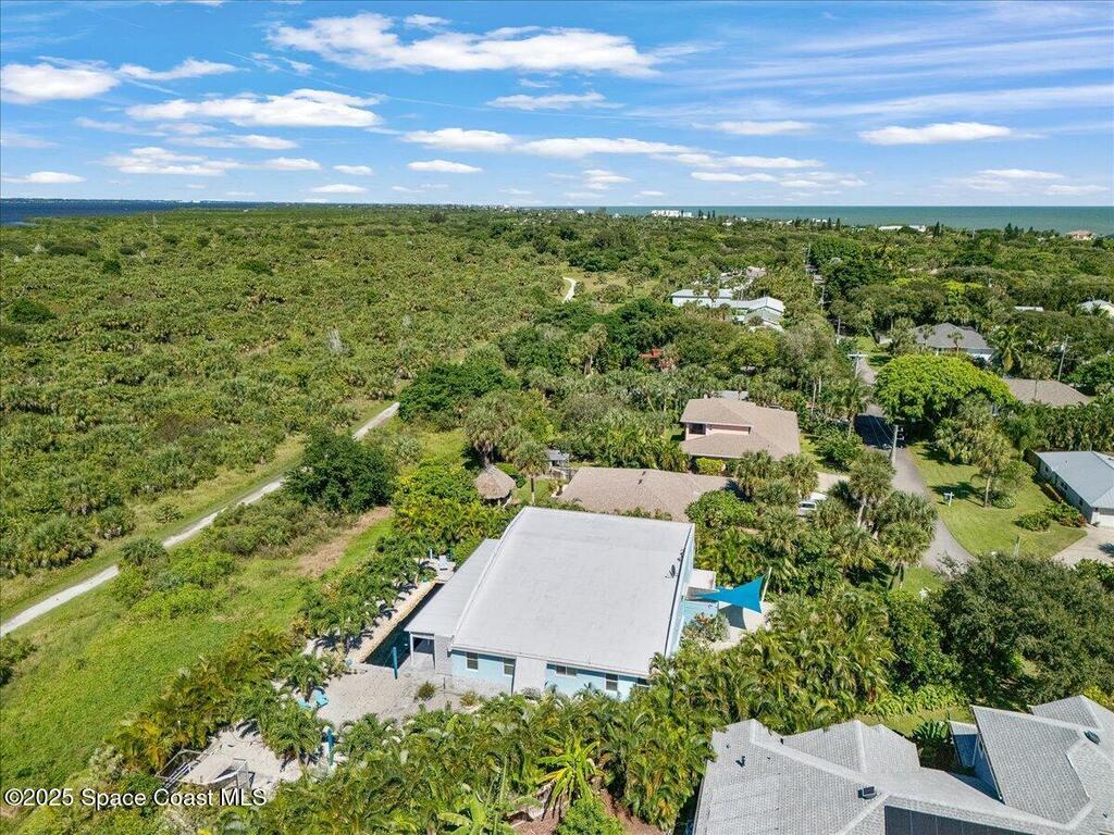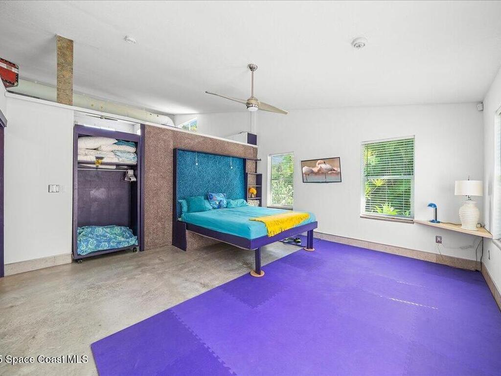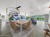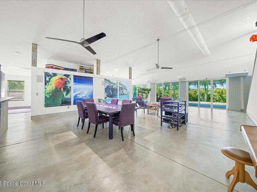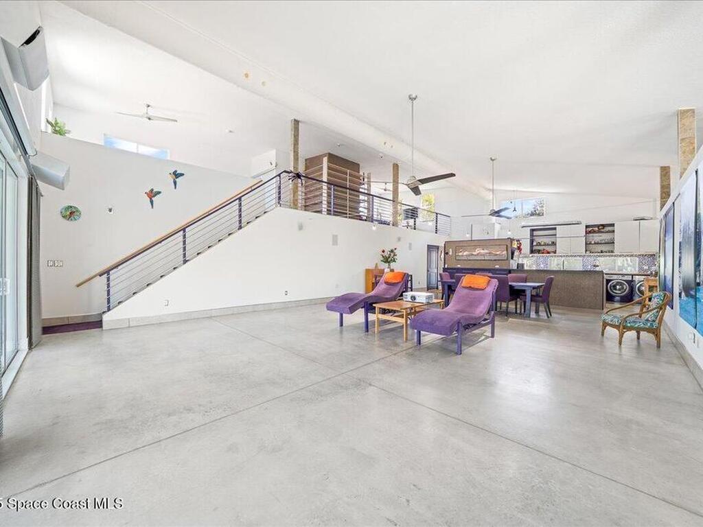 This stunning home is so unique, you absolutely must see it! It's inspired by Miami's loft style living, with a contemporary, open floor concept with a second-floor level with high ceilings. Choose your layout with your furniture and shelves, instead of having a fixed setup of walls and openings. The 4 bedrooms are currently set up as a gym/bed room with a Murphy king-size bed, 2 primary suites, one on 1st level and other on 2nd floor and the fourth bedroom is set up as an office. This is perfect for working from home, full-time or part-time.Watch rocket launches from the upper windows or just walk down the road to the beach. Take your bike or kayak out and explore the mangroves, birds, and everything the natural preserve park has to offer. The dedicated beach access is great for an evening walk, and the clubhouse w/restrooms and play ground is available for a very low annual fee. Floridana Beach is just a short distance from the Sebastian inlet and 10 minute drive to Publix.