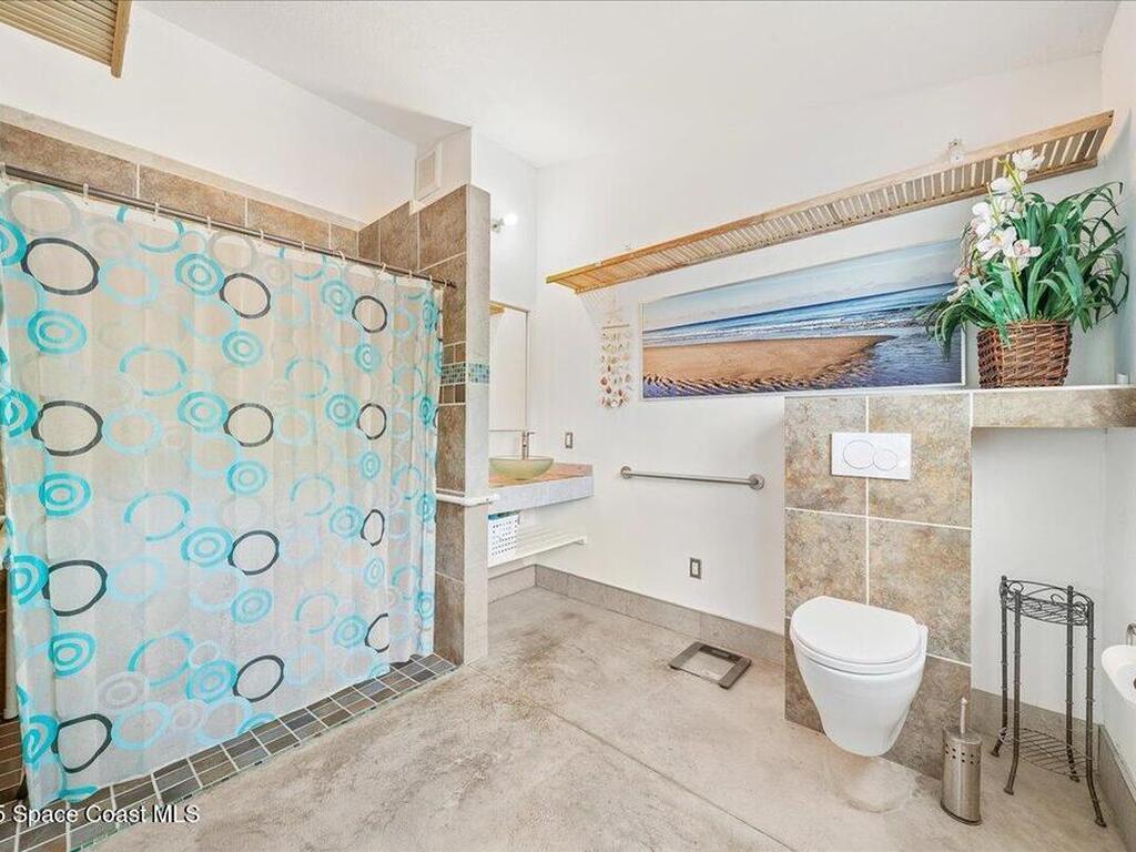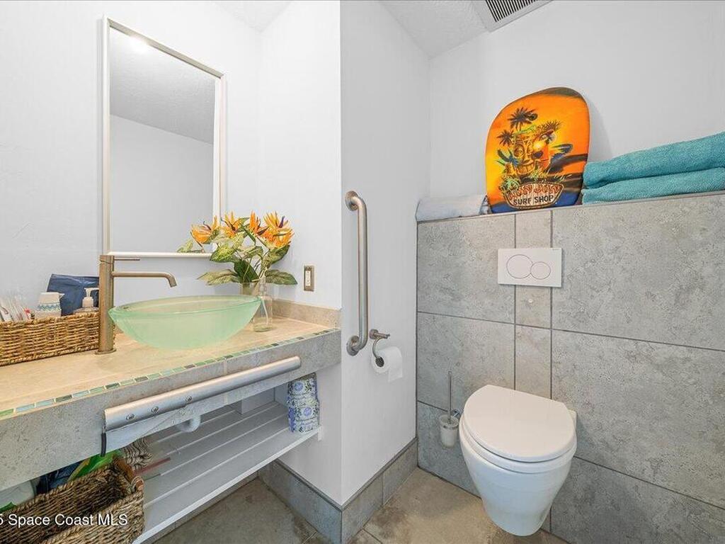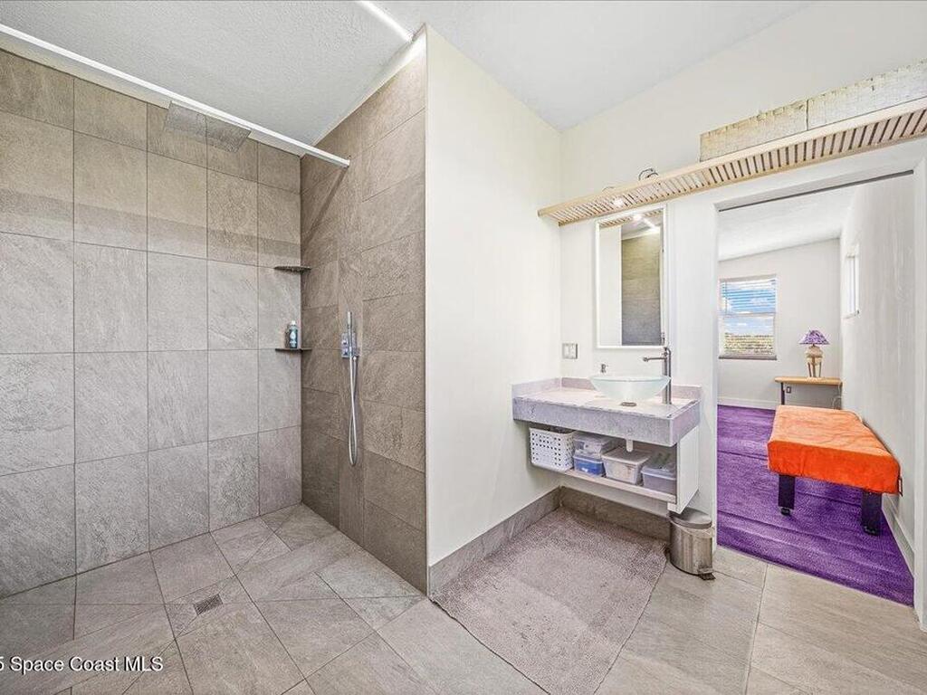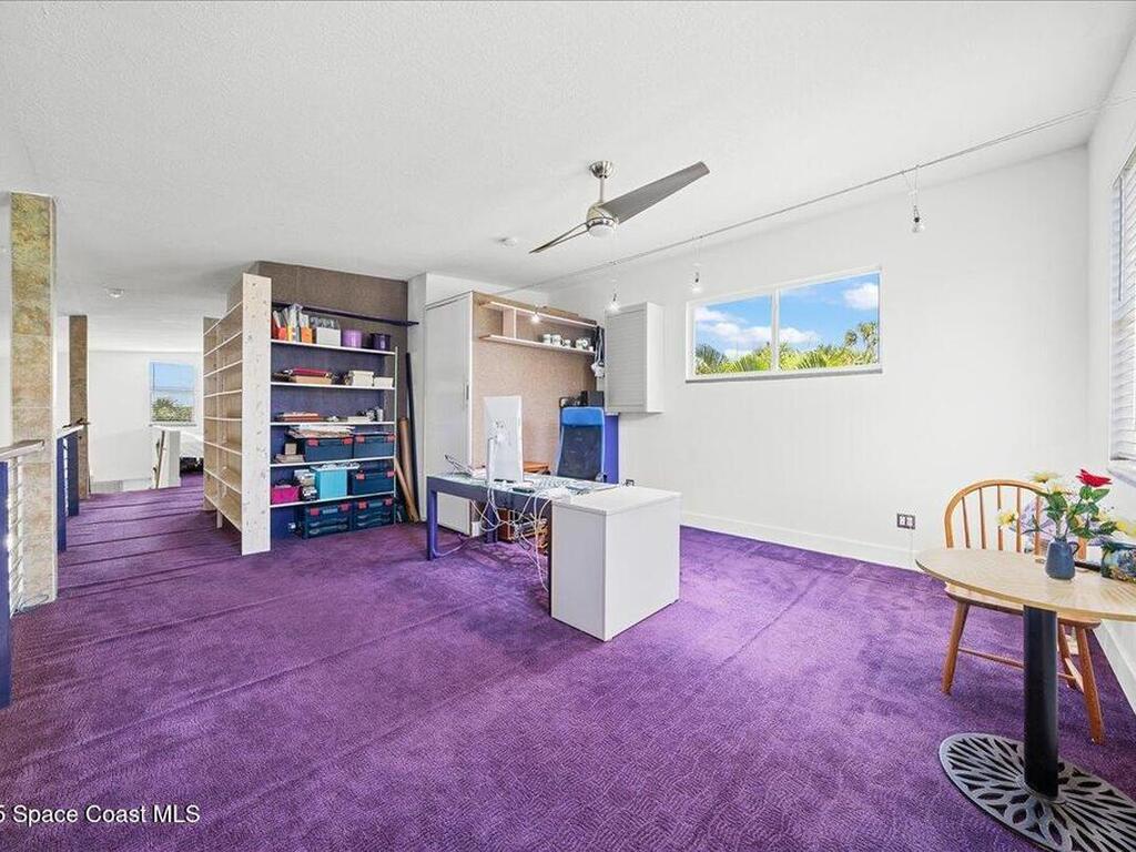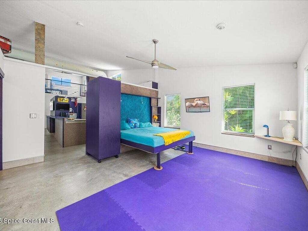 This stunning home is so unique, you absolutely must see it! It's inspired by Miami's loft style living, with a contemporary, open floor concept with a second-floor level with high ceilings. Choose your layout with your furniture and shelves, instead of having a fixed setup of walls and openings. The 4 bedrooms are currently set up as a gym/bed room with a Murphy king-size bed, 2 primary suites, one on 1st level and other on 2nd floor and the fourth bedroom is set up as an office. This is perfect for working from home, full-time or part-time.Watch rocket launches from the upper windows or just walk down the road to the beach. Take your bike or kayak out and explore the mangroves, birds, and everything the natural preserve park has to offer. The dedicated beach access is great for an evening walk, and the clubhouse w/restrooms and play ground is available for a very low annual fee. Floridana Beach is just a short distance from the Sebastian inlet and 10 minute drive to Publix.