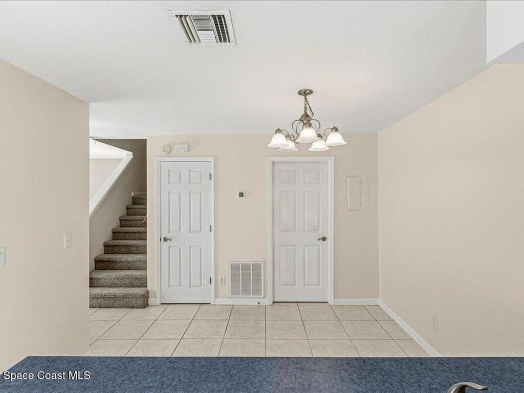 Welcome to your beautiful turn-key townhome condo in a fantastic Rockledge location -- complete with an amazing view from your private upstairs deck!Nestled in the charming Country Woods Village, just north of Viera, this well-maintained townhome offers convenient access to Interstate 95, Orlando International Airport, The Avenue Viera, Cocoa Village, and the beautiful Space Coast beaches.Step inside to a spacious living area perfect for relaxing or entertaining guests. The functional kitchen offers everything you need, along with an ample dining area. Just off the kitchen, you'll find a convenient half bathroom and an indoor laundry room for added comfort.Upstairs features two carpeted bedrooms, each with direct access to the outdoor deck, where you can enjoy peaceful views and Florida breezes.Recent updates include fresh interior paint, ceramic tile flooring downstairs, and carpet upstairs in both bedrooms.Whether you're a first-time homebuyer ready to step into