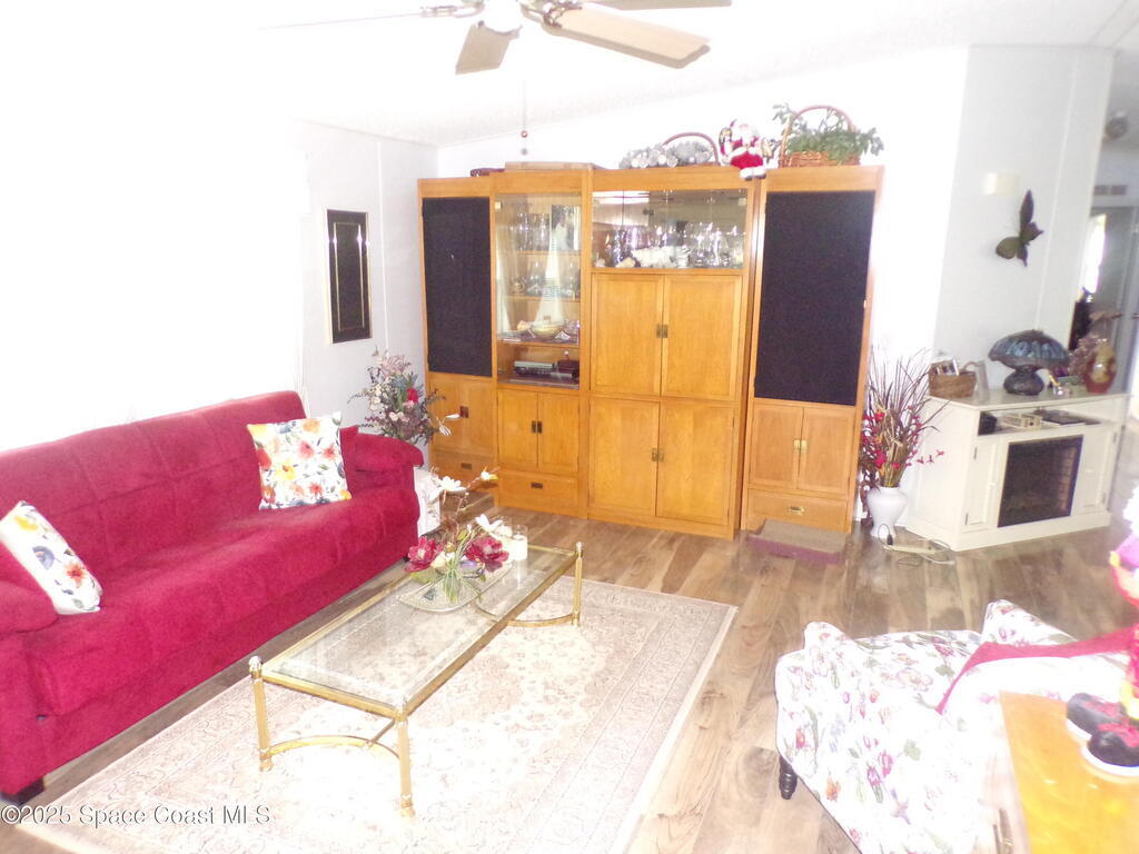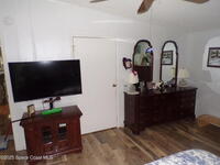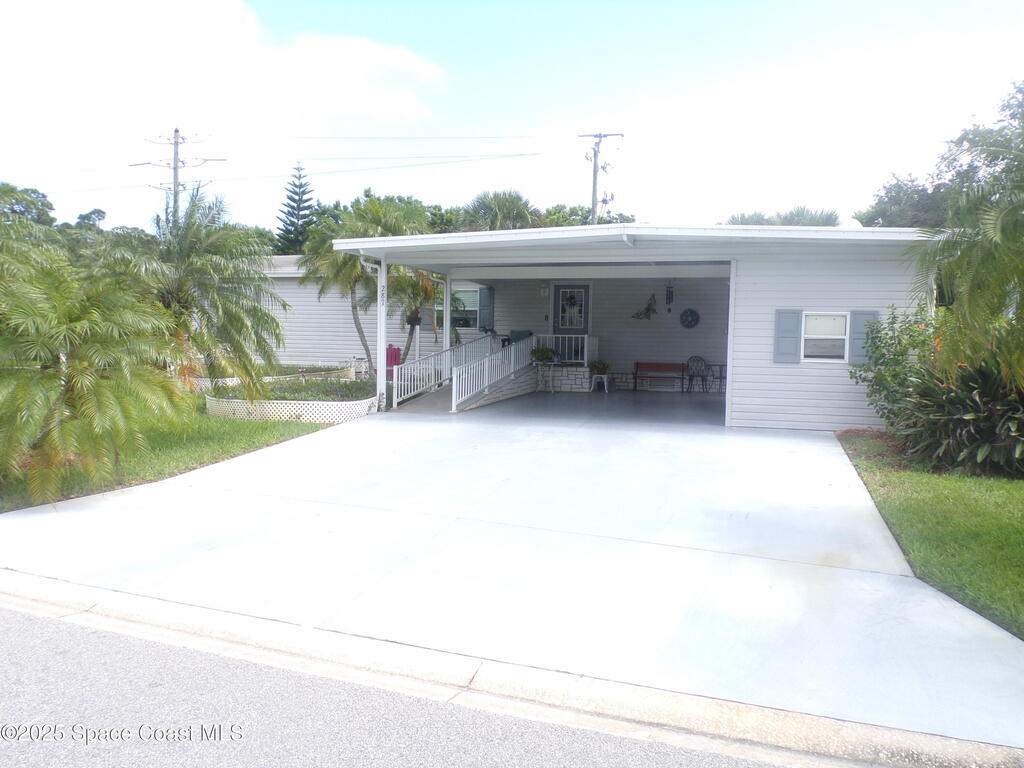 Check out this LARGE HANDICAPPED accessible home in Barefoot Bay community This home is light and bright with a beautifully landscaped corner lot. It has a sprinkler system with well. Across the street there is a park area to walk your dog. There was a new heat pump air conditioner which was installed in 2025. There are many other amenities this home has to offer. Come look and make it your own.