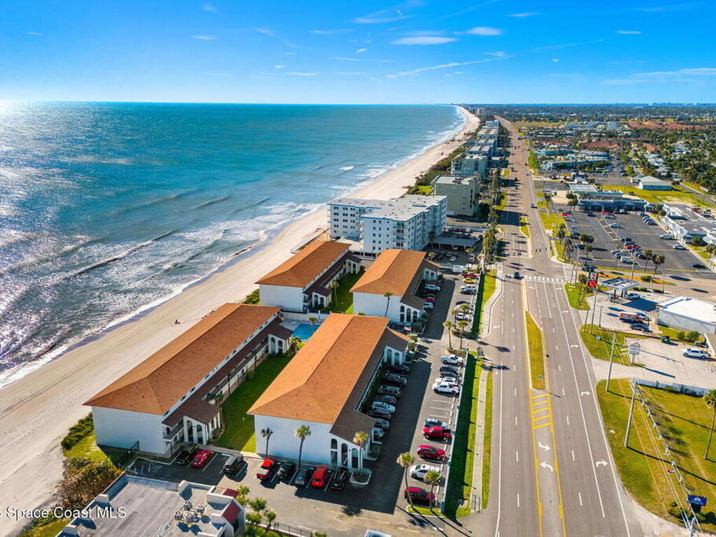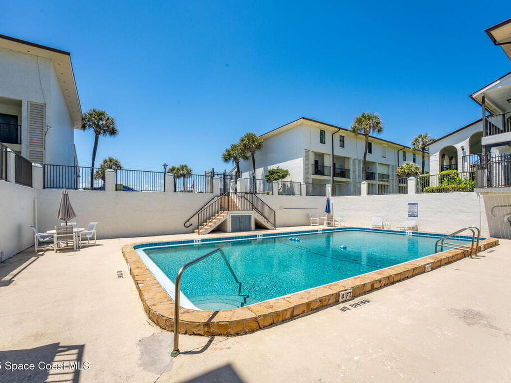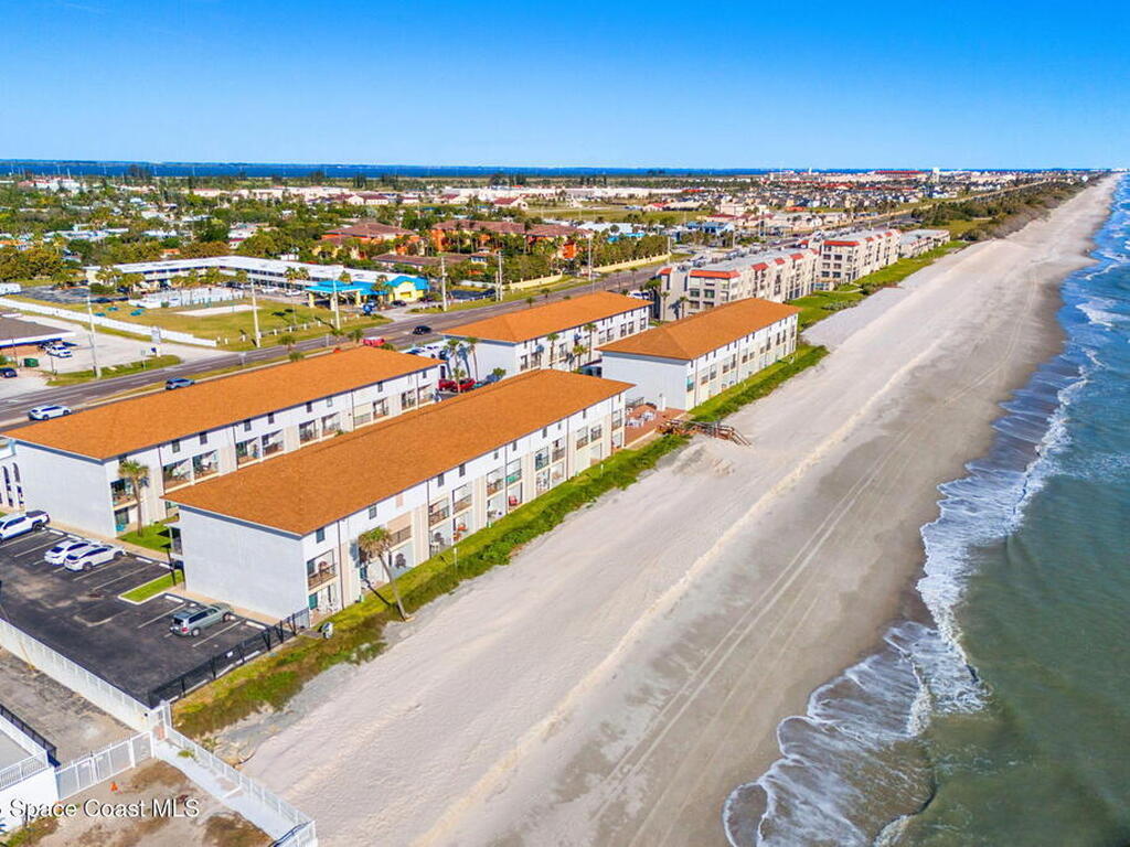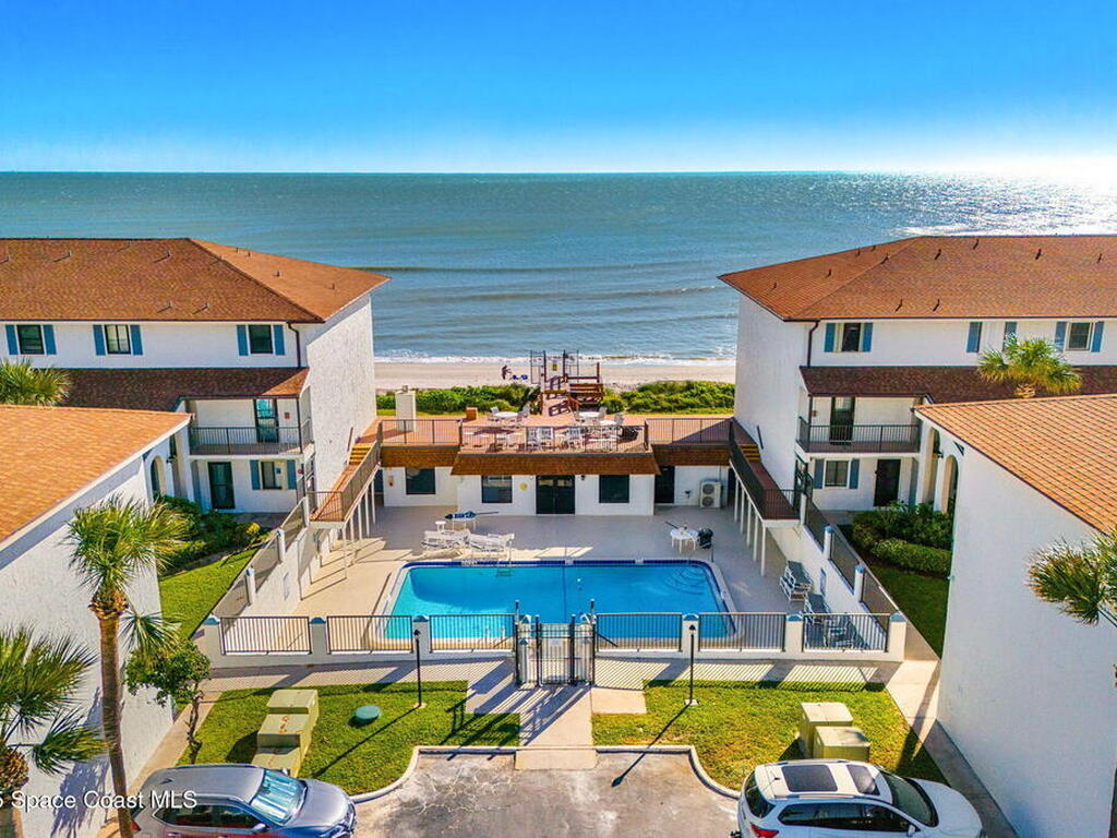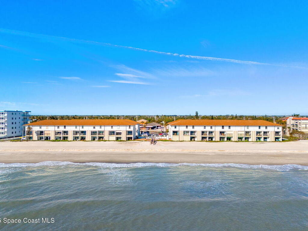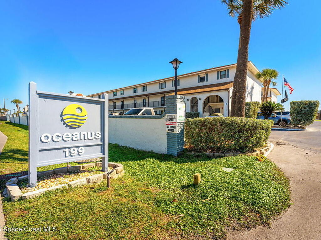 Wake up to the sound of waves and gentle ocean breezes in this rarely available end unit at the sought-after Oceanus Condo community! This beachside retreat welcomes two pets (no weight limit) and allows monthly rentals, ideal for full-time living, a vacation getaway, or investment. Enjoy the community direct beach access, a heated pool, ocean sundeck, and front-row seats to Space Coast rocket launches. Inside, the bright, open layout features a refreshed kitchen with white cabinetry, solid-surface countertops, a breakfast bar, and tile flooring throughout for easy coastal living. Unwind on your private patio with morning coffee or evening breezes. Updates include new A/C (2024), washer/dryer (2023), and impact windows & sliders (2021). The community has completed major improvements including balcony and concrete restoration, a new roof, and the 2024 SIRS/reserve study. Close to shopping, dining, and everything the Space Coast offers!