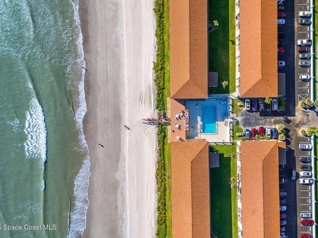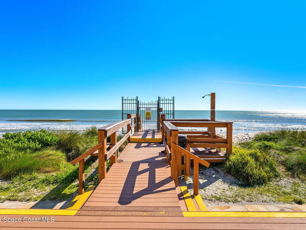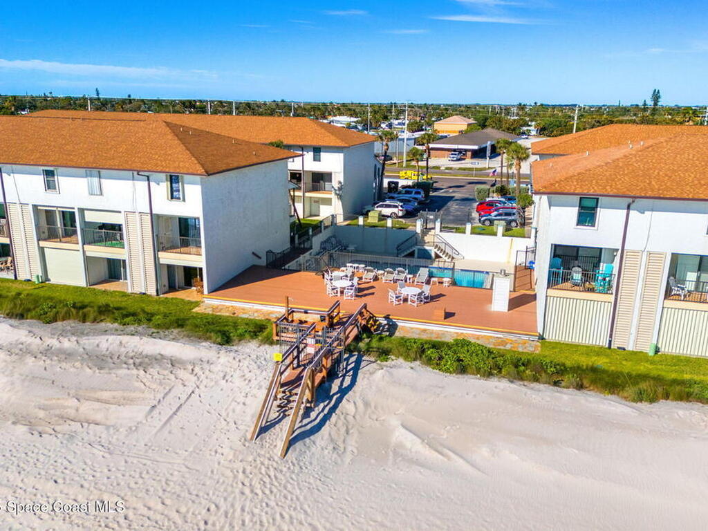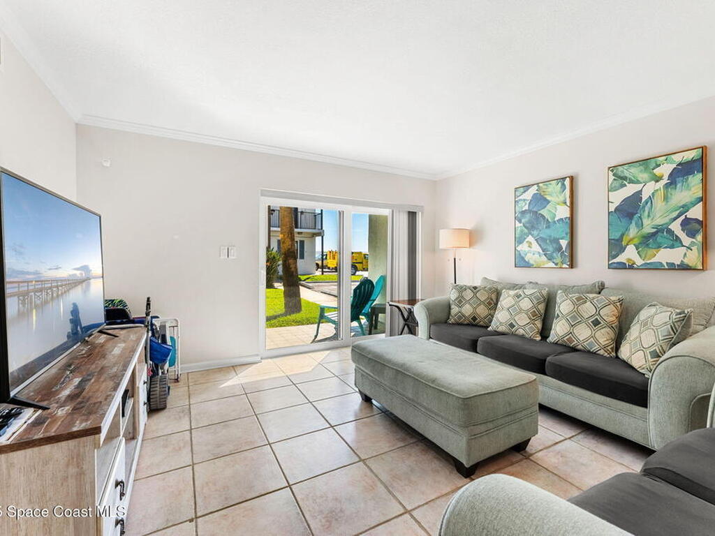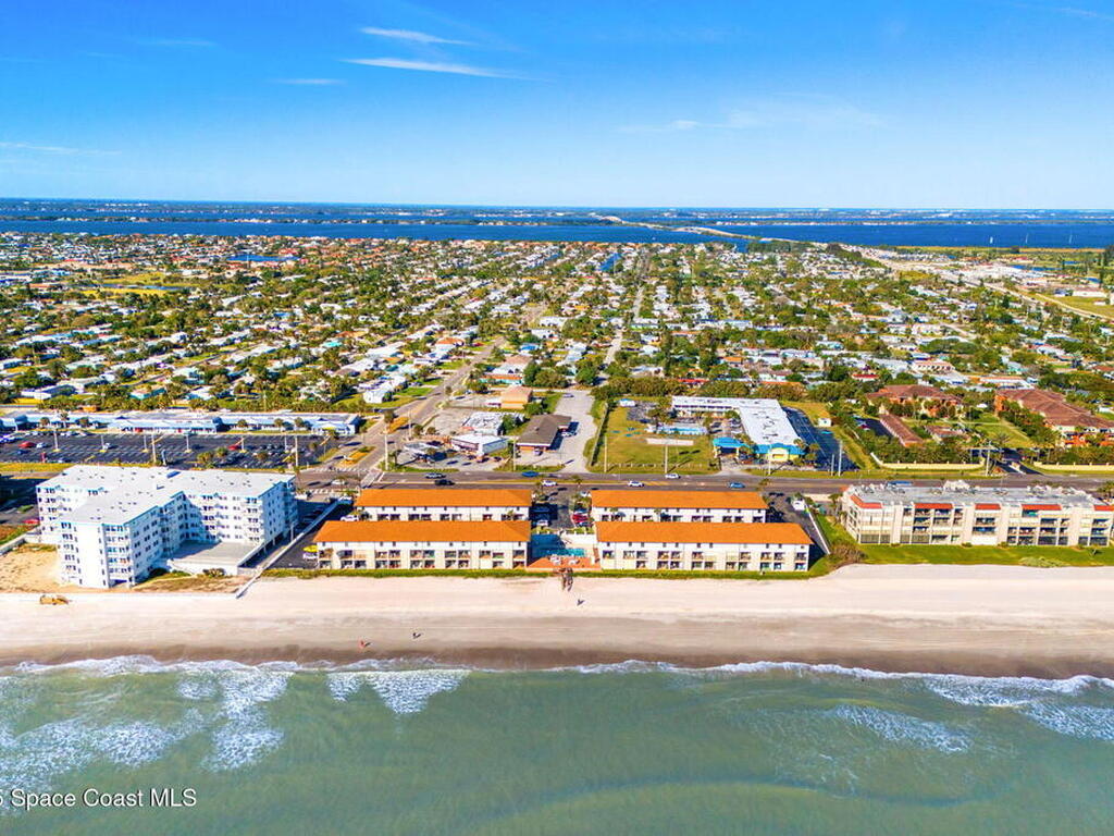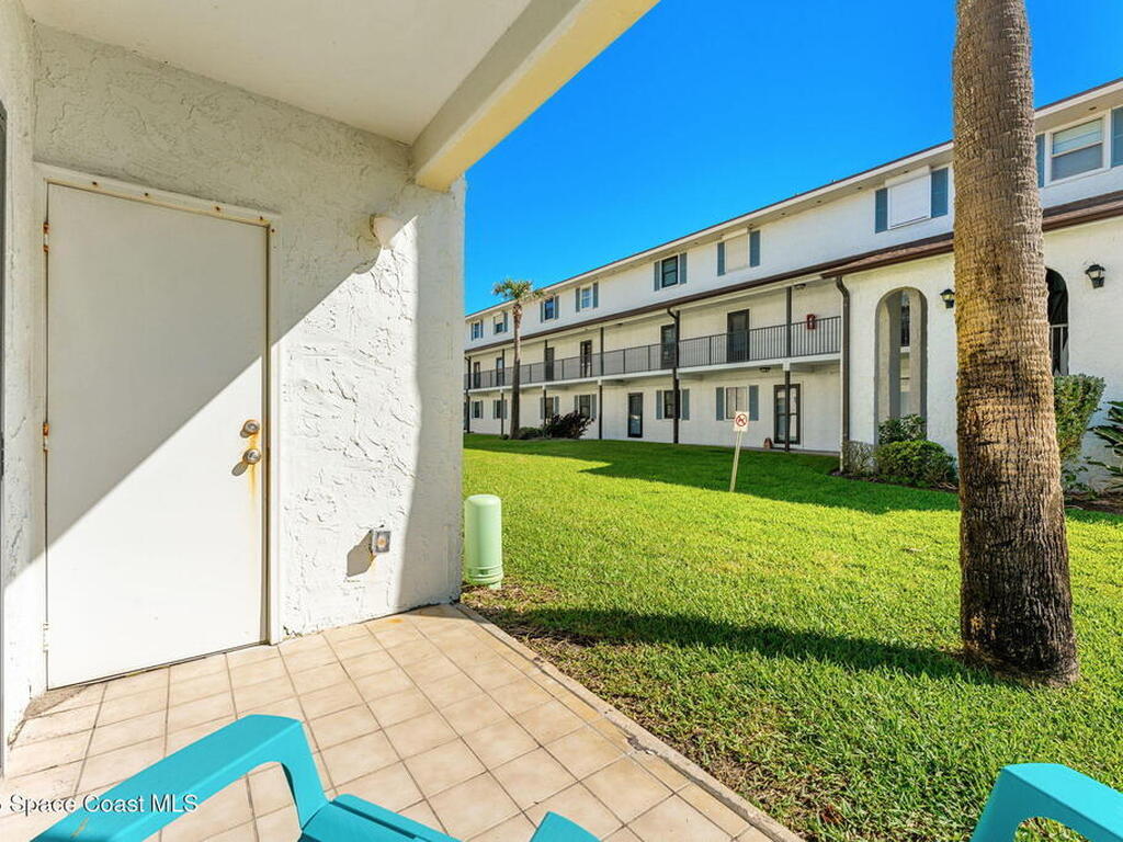Wake up to the sound of waves and gentle ocean breezes in this rarely available end unit at the sought-after Oceanus Condo community! This beachside retreat welcomes two pets (no weight limit) and allows monthly rentals, ideal for full-time living, a vacation getaway, or investment. Enjoy the community direct beach access, a heated pool, ocean sundeck, and front-row seats to Space Coast rocket launches. Inside, the bright, open layout features a refreshed kitchen with white cabinetry, solid-surface countertops, a breakfast bar, and tile flooring throughout for easy coastal living. Unwind on your private patio with morning coffee or evening breezes. Updates include new A/C (2024), washer/dryer (2023), and impact windows & sliders (2021). The community has completed major improvements including balcony and concrete restoration, a new roof, and the 2024 SIRS/reserve study. Close to shopping, dining, and everything the Space Coast offers!