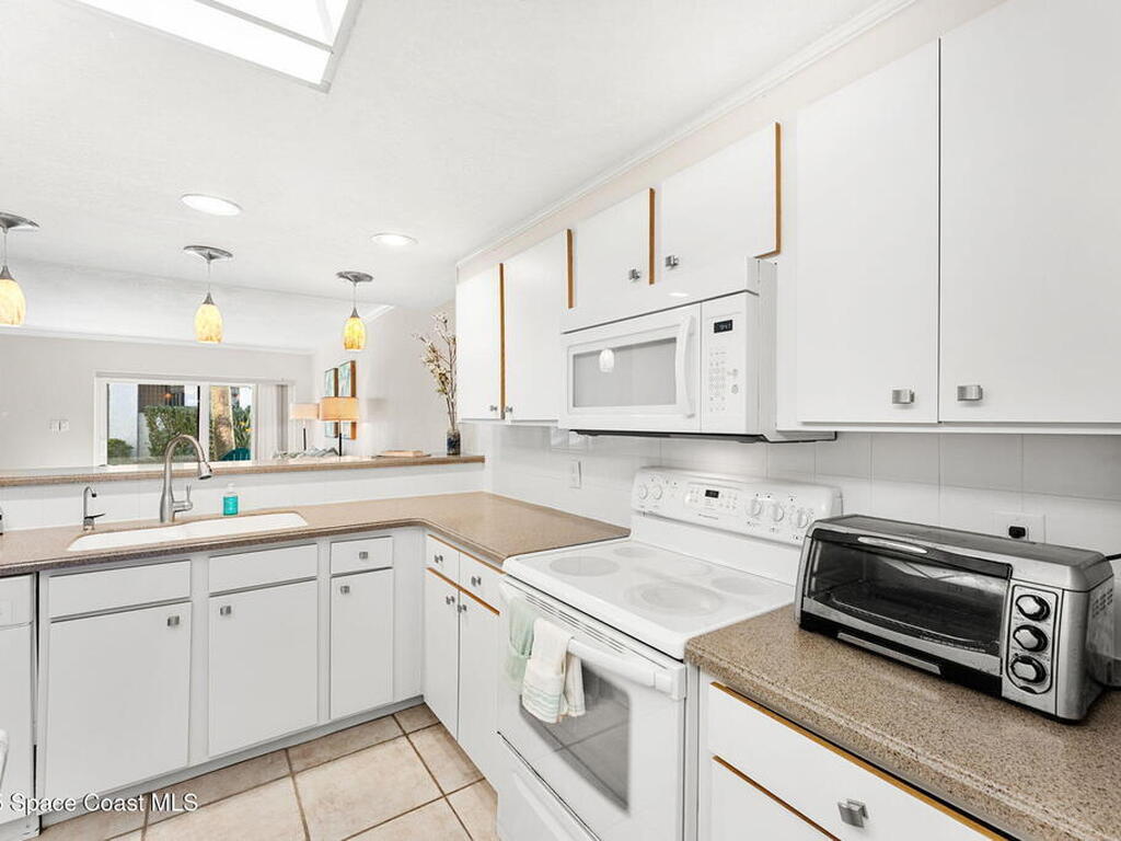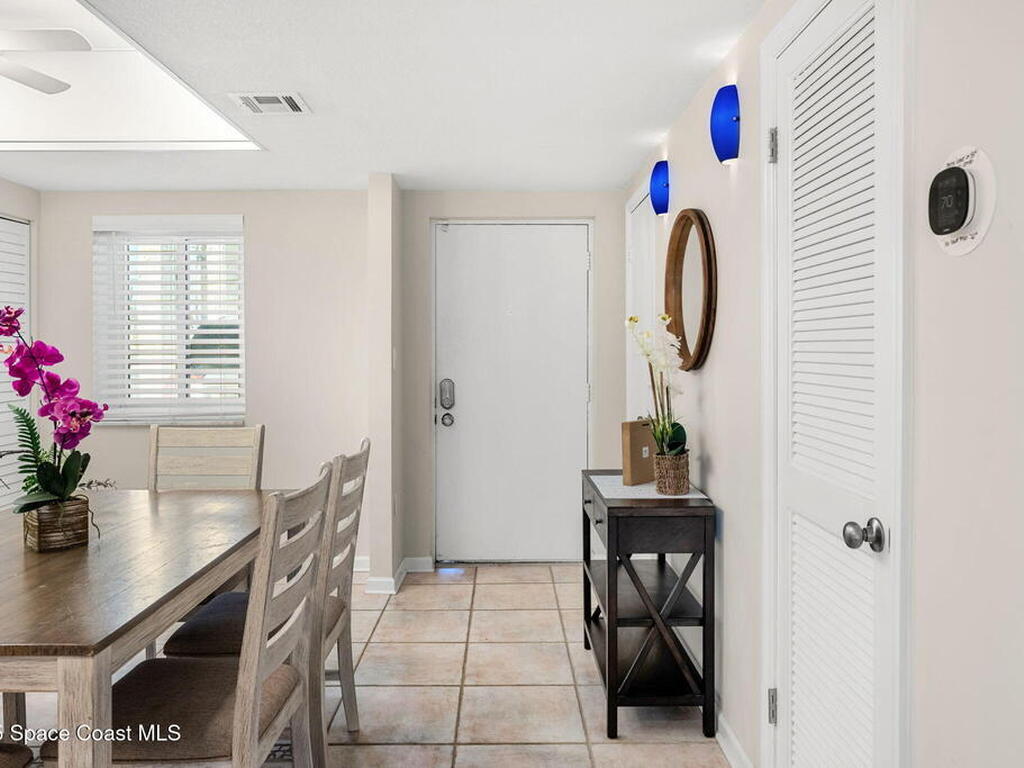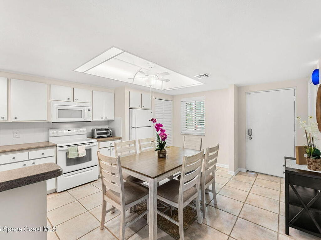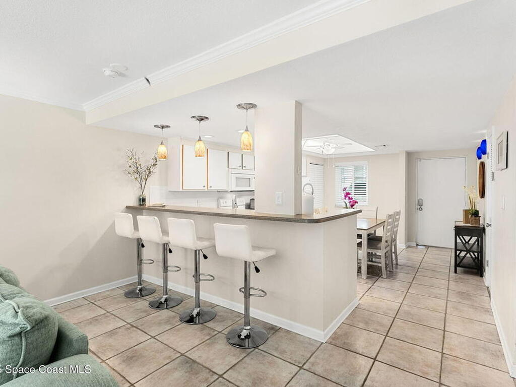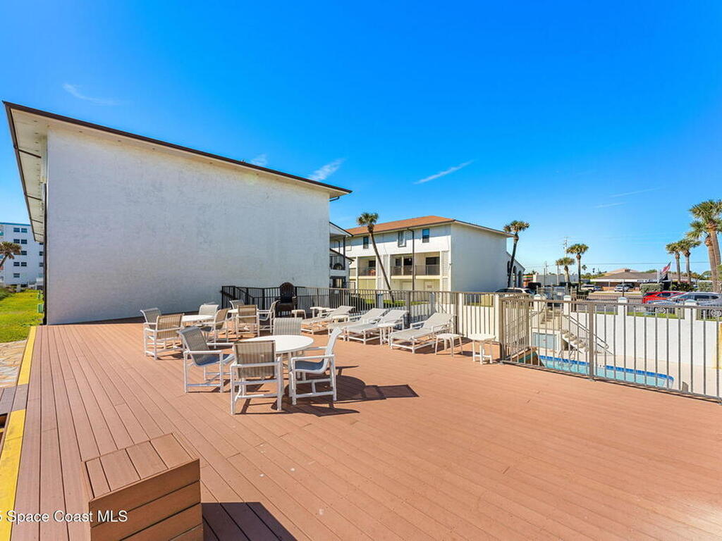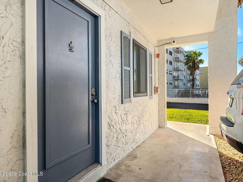 Wake up to the sound of waves and gentle ocean breezes in this rarely available end unit at the sought-after Oceanus Condo community! This beachside retreat welcomes two pets (no weight limit) and allows monthly rentals, ideal for full-time living, a vacation getaway, or investment. Enjoy the community direct beach access, a heated pool, ocean sundeck, and front-row seats to Space Coast rocket launches. Inside, the bright, open layout features a refreshed kitchen with white cabinetry, solid-surface countertops, a breakfast bar, and tile flooring throughout for easy coastal living. Unwind on your private patio with morning coffee or evening breezes. Updates include new A/C (2024), washer/dryer (2023), and impact windows & sliders (2021). The community has completed major improvements including balcony and concrete restoration, a new roof, and the 2024 SIRS/reserve study. Close to shopping, dining, and everything the Space Coast offers!