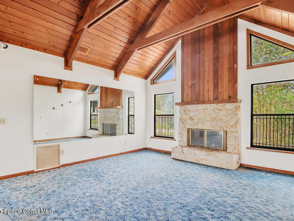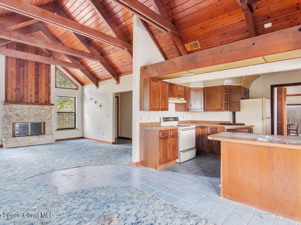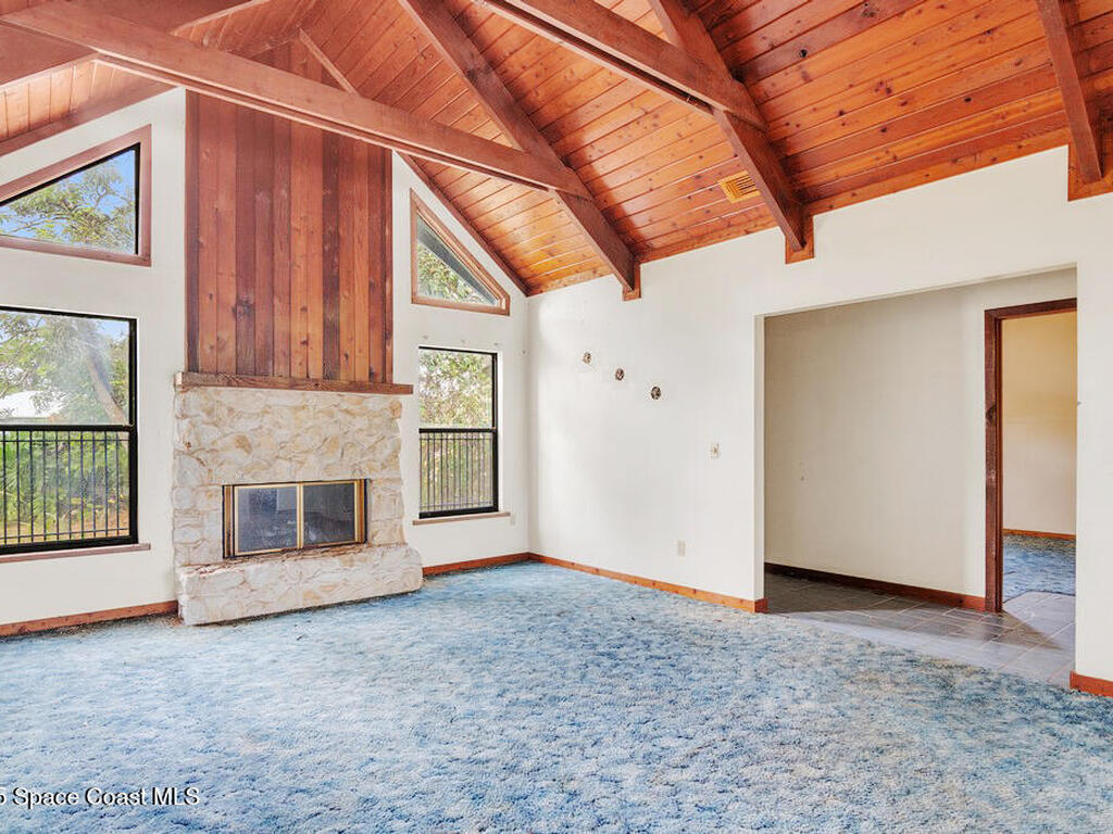 Located on a corner lot in the heart of Port St. Lucie, this frame construction pool home offers unique architectural details and incredible potential. The interior features cathedral-style cedar tongue-and-groove ceilings, two fireplaces (one in the living room and one in the converted bar/entertainment area), and a spacious kitchen perfect for future renovations and entertaining. The garage has been converted into a game room with a bar , adding flexible living space. Buyer to verify exposure all measurements are approximate NO SITE UNSEEN OFFERS