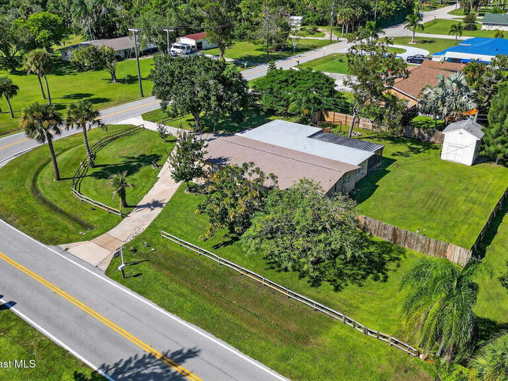 **THE ONE YOU'VE BEEN WAITING FOR!!** Lovely and Spacious, 4 Bedroom/3 Bathroom Home with BOTH Living and Family Rooms, Located in Desirable Neighborhood on CORNER Lot with CIRCULAR DRIVEWAY! Newer ROOF 2022, 100 AMP POWER LINE and 220 RV Hookup avail! Almost 1/2 Acre FENCED Backyard is Perfect for All Your Fun Activities, BBQ's, Kids/Pets, Toys/Boat Storage & More PLUS a SHED for Storage or Workshop, etc. The Inside Welcomes You with Lots of Space for Whatever You Need PLUS is already Mostly FURNISHED so IT'S MOVE-IN READY! Great for INVESTMENT or VACATION HOME! HUGE 30x14 Screened Back Porch for Lots of Relaxing or Entertaining. Great Location has Quick Access to Palm Bay Road but minus the noise, Really Unique Property-- Hurry to See it Today!!