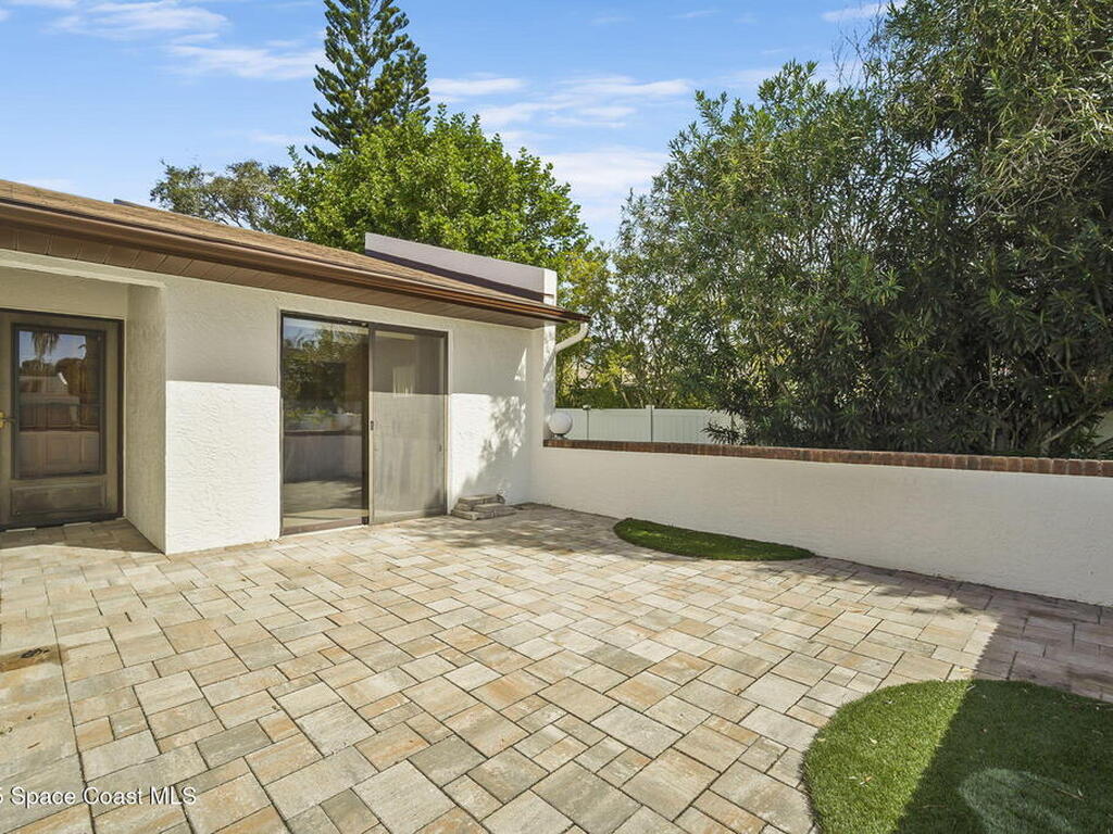 Peaceful 2BR/2BA end-unit townhome in desirable Indian Harbour Beach, ideally located off South Patrick Drive with quick access to A1A and Eau Gallie Blvd. Walk or bike to the beach, local parks, shopping, and dining. The community pool offers a relaxing retreat for year-round enjoyment. The interior has been freshly painted with a newer A/C system and water heater, flat roof recoated in 2024. Enjoy a private paver courtyard, double-wide driveway, and quiet end-unit setting for extra privacy. Top-rated schools and just minutes from Patrick Space Force Base, this townhome offers comfort, convenience, and true coastal living in one of Brevard's most sought-after neighborhoods.