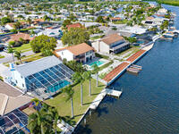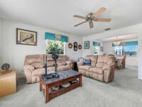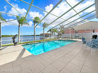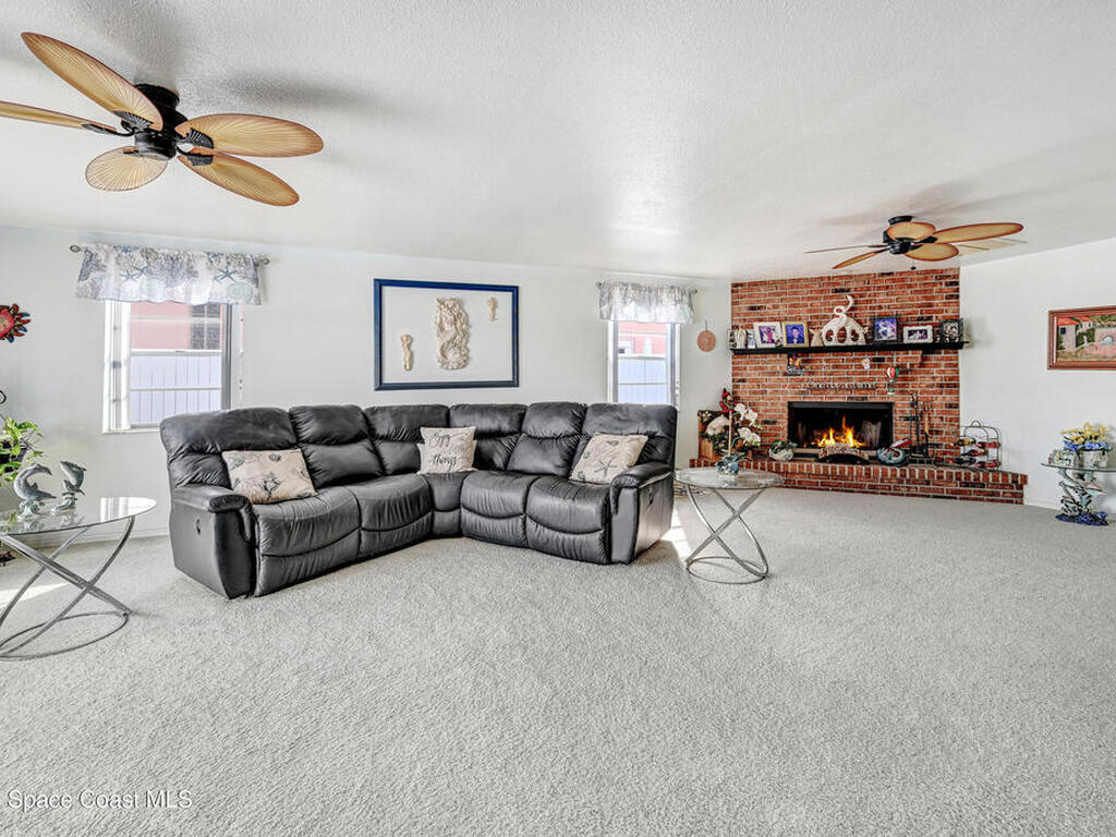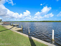 Endless water & nature vistas! Spacious home is perfectly positioned on premium navigable Sykes Creek frontage w/access to the Banana River, Indian River, Intracoastal Waterway, & ocean via nearby Port Canaveral Locks -- a true boater's paradise. Oversized screened-in pool w/elegant paver deck is perfect for entertaining or relaxing. Huge family room offers warmth & charm w/wood-burning fireplace, wet bar, & sliders to patio. Updated eat-in kitchen w/beautiful countertops, convenient pass-through window to patio, & newer appliances. Meticulously maintained w/many recent updates: roof (2020), water heater (2022), RainSoft water filtration (2018), screen enclosure (2018), dock (2019), new pool pump, RhinoShield exterior coating, Massey termite bond, & two HVAC systems serviced annually. Classy vinyl fencing w/double gate for boat/trailer storage. Large bedrooms provide comfort & space, w/luxurious primary suite featuring his-&-hers closets, soaking tub, roomy shower, & dual sink vanity