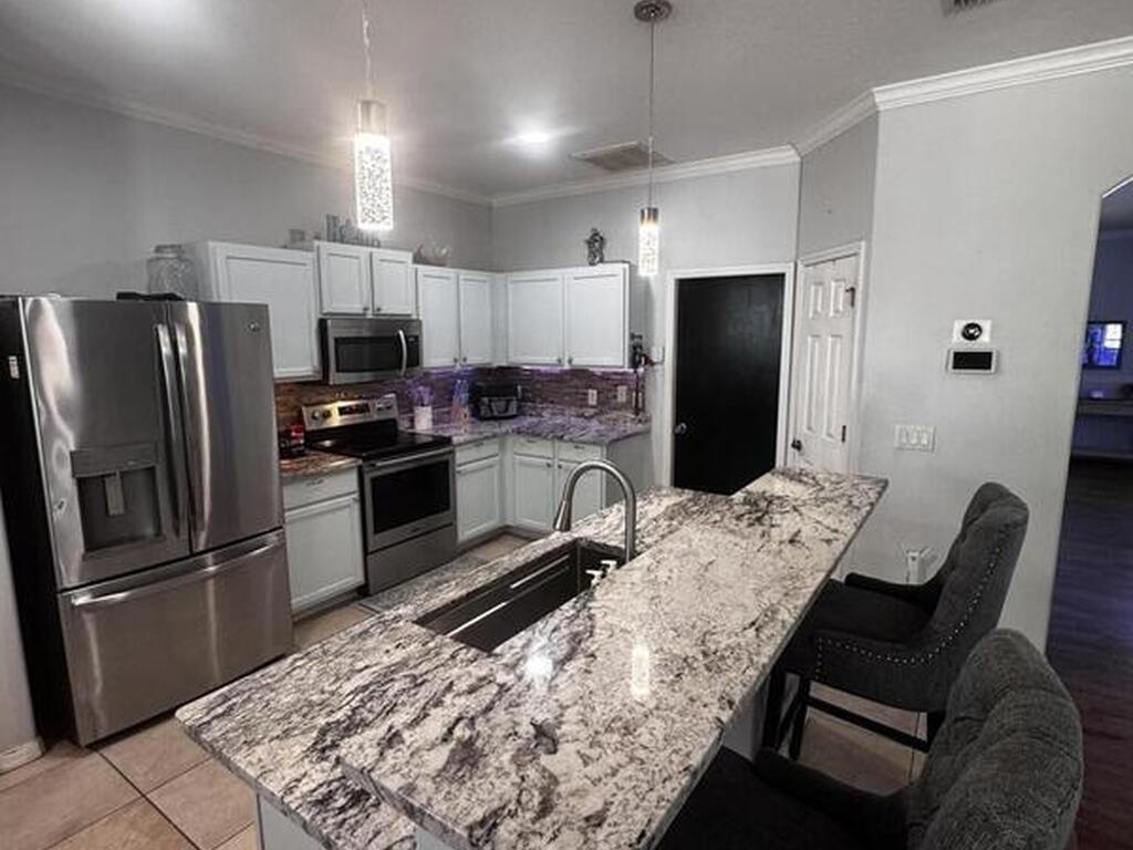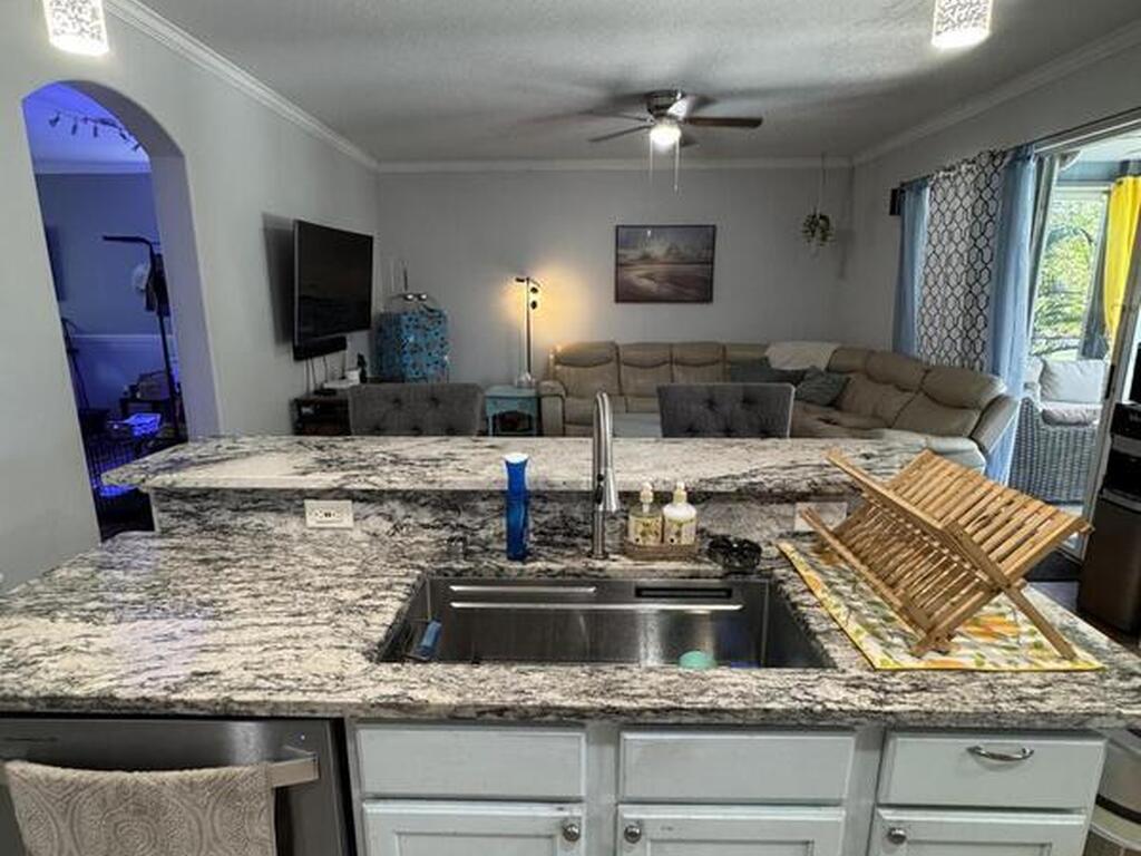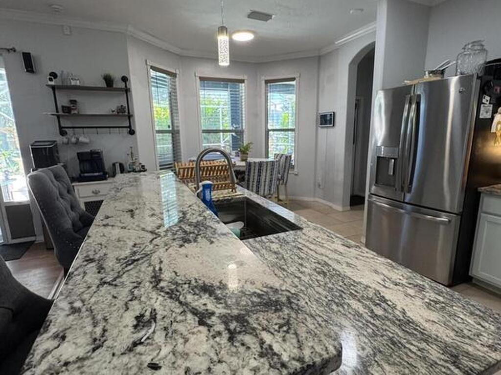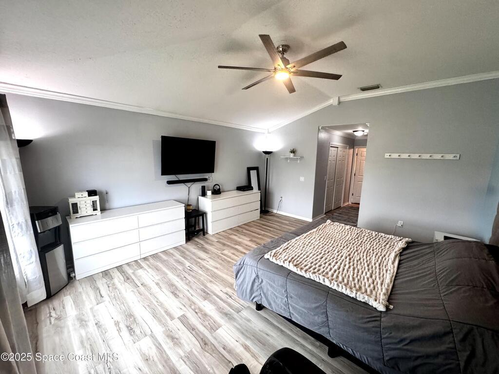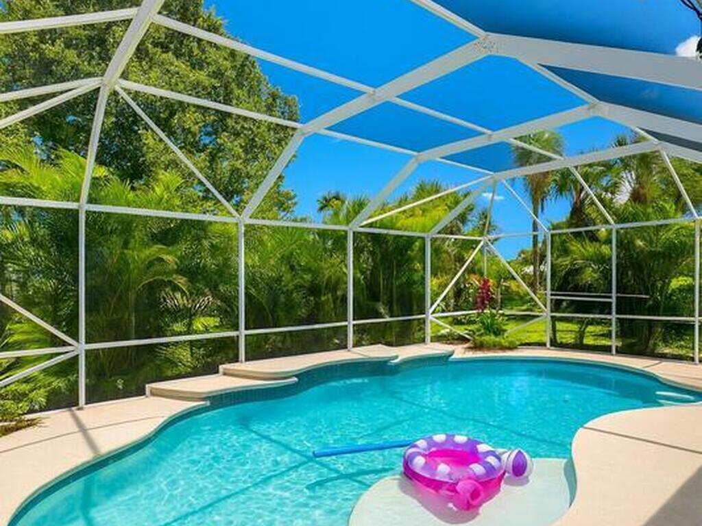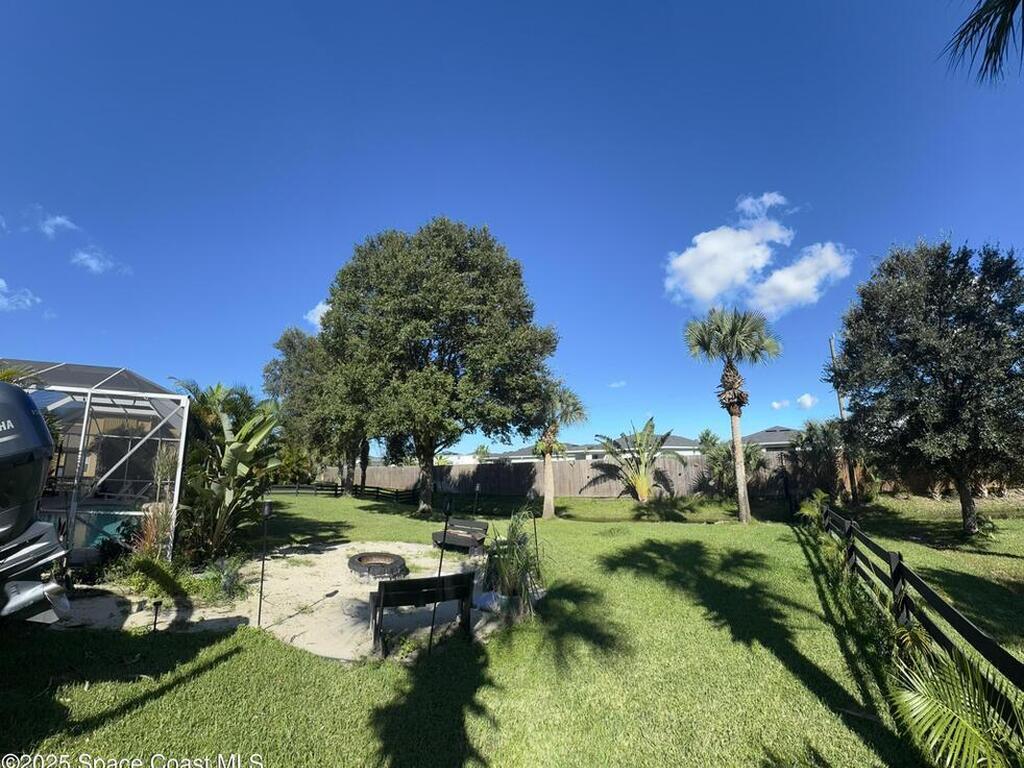 With its vaulted ceilings & crown molding throughout, this home combines space, modern upgrades, neighborhood charm, and prime location -- a rare find in Palm Bay! Nestled in a highly sought neighborhood known for its welcoming community, maintained homes, and low HOA fees. Tucked away from main roads, with a peaceful and small community feel, and spacious lots that provide comfort and privacy. Just a few of the recent updates include a new roof , gutters, hot water tank, paint, luxury vinyl floors, A/C, fence, pool pump, granite countertops, tinted energy efficient windows, appliances, and master bath updated to walk-in shower with waterfall and custom bench. Screened in patios and an extra parking pad, creating a perfect space to enjoy Florida living year-round. Step into your private backyard oasis with mature tropical landscaping, unwind by the saltwater pool or gather around the fire pit. Minutes away, is a brand-new shopping center, easy access to parks, I-95, the river & beaches
